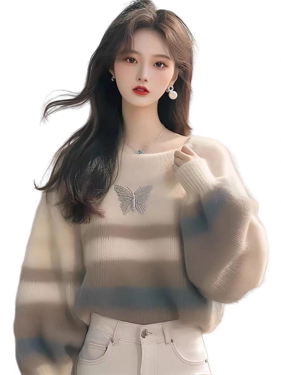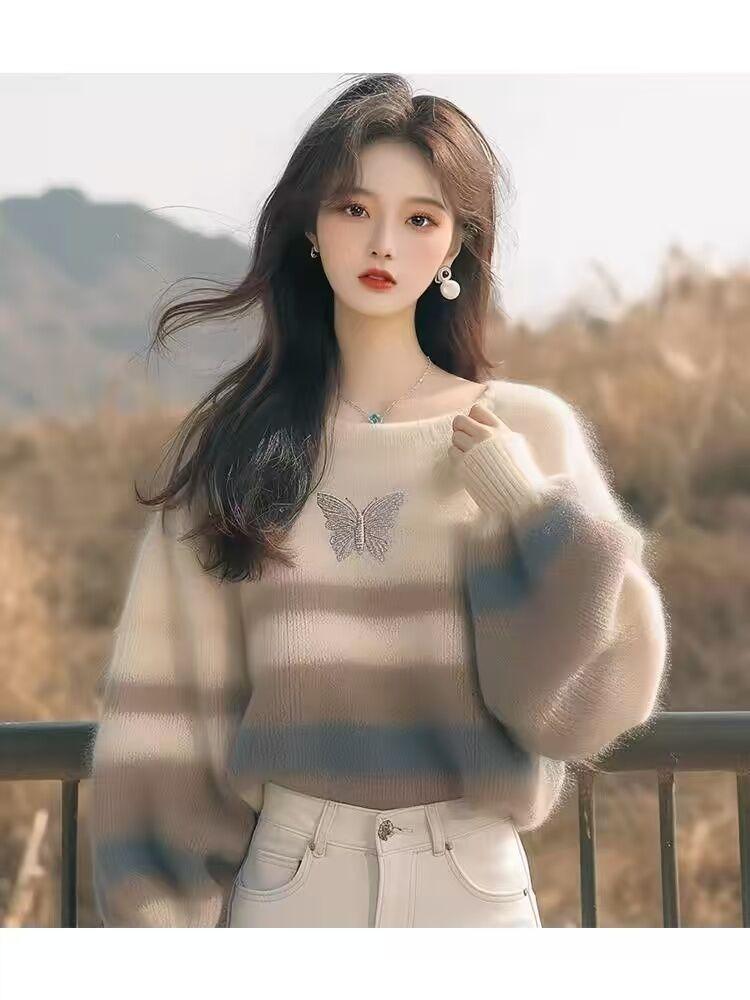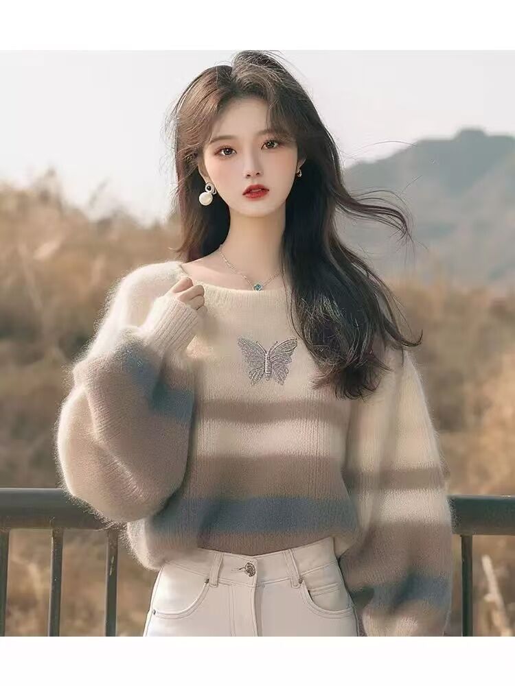 Suéter a rayas de bloques de color para mujer otoño invierno 2025 nuevo estilo outfit top de punto