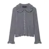Z Venta al por Mayor Transfronteriza Ropa de Mujer Estilo Europeo y Americano 2025 Nueva Moda Top de Punto Texturizado con Estampado Floral 0234006