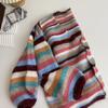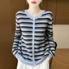 Cárdigan de Punto de Lana Pura Estilo Coreano 2025 para Mujer Cuello Redondo Bloque de Color Rayado Suelto Casual Manga Larga con Botones Ropa Exterior