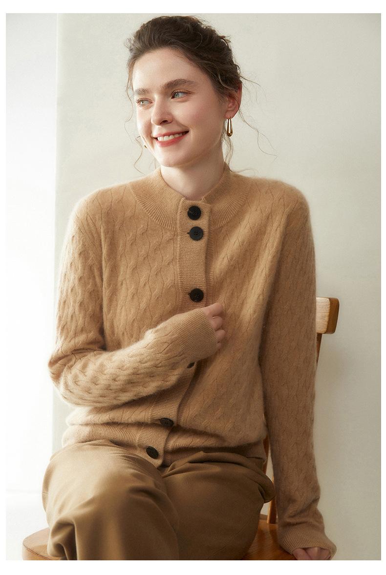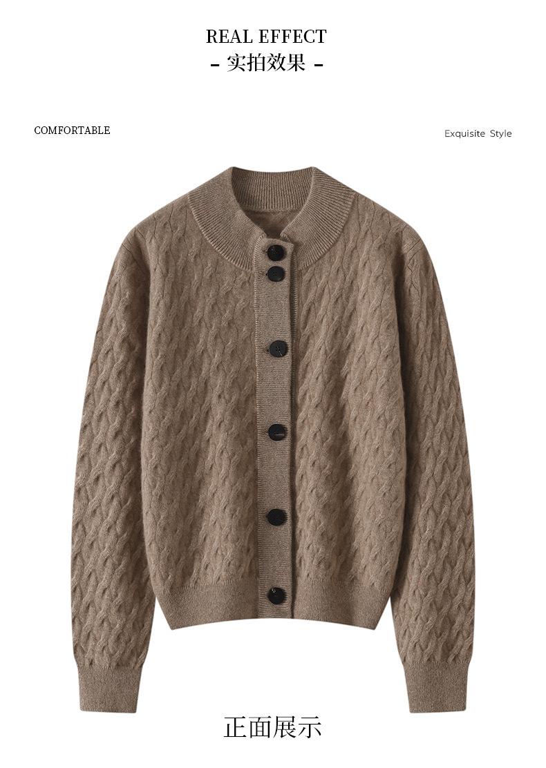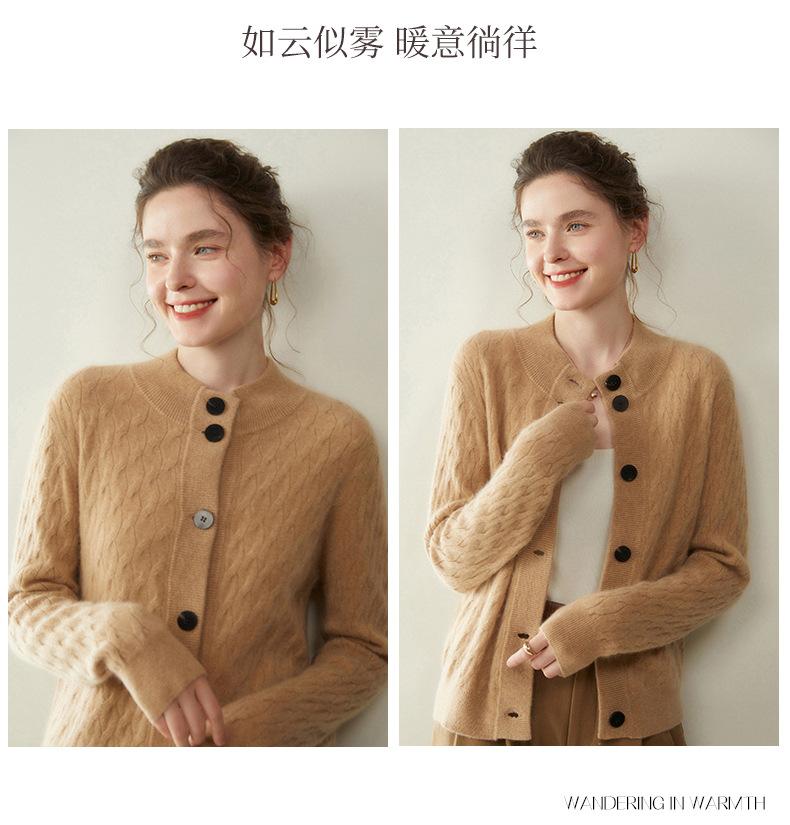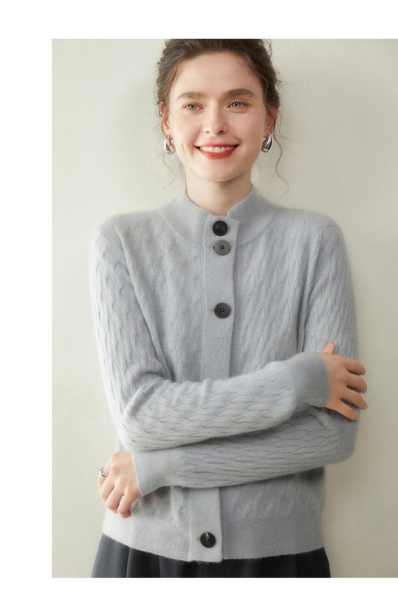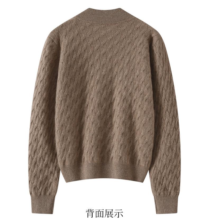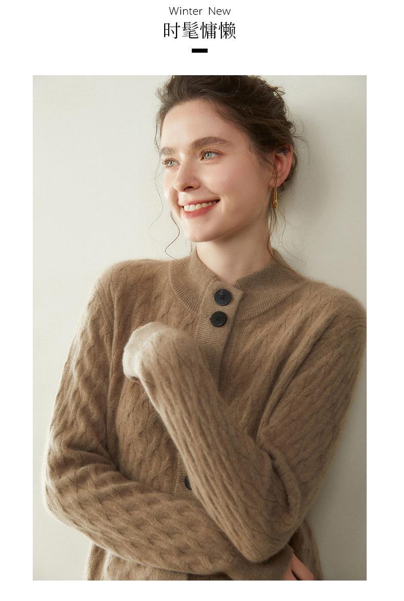 Cárdigan de Cachemira de Cuello Medio Alto para Mujer Otoño e Invierno Nuevo Estilo Holgado Perezoso Suéter Tejido Abrigo Tejido de Cables Top Básico