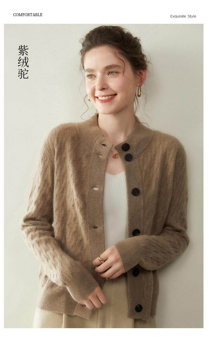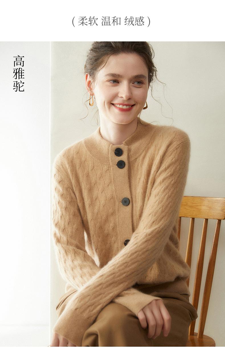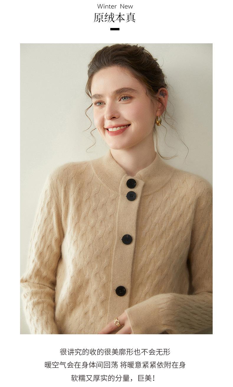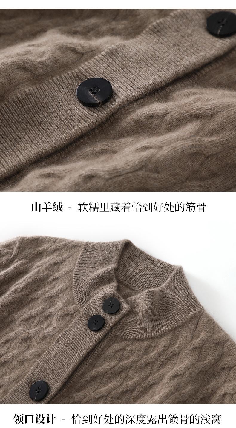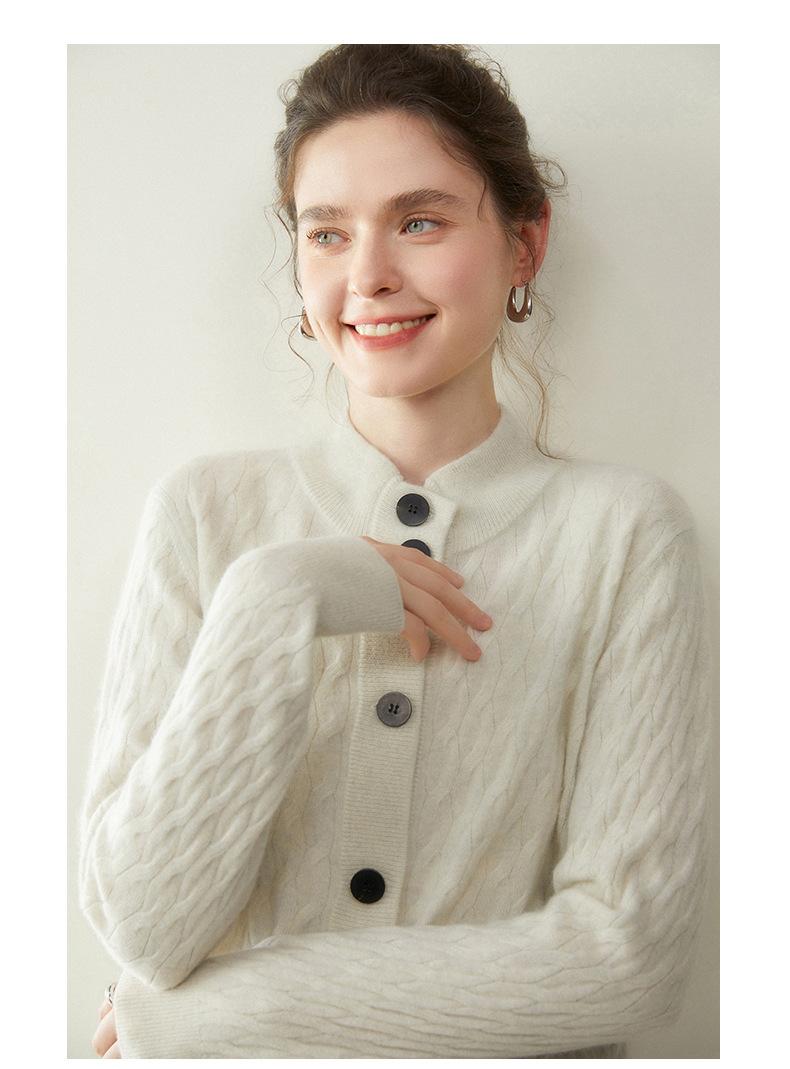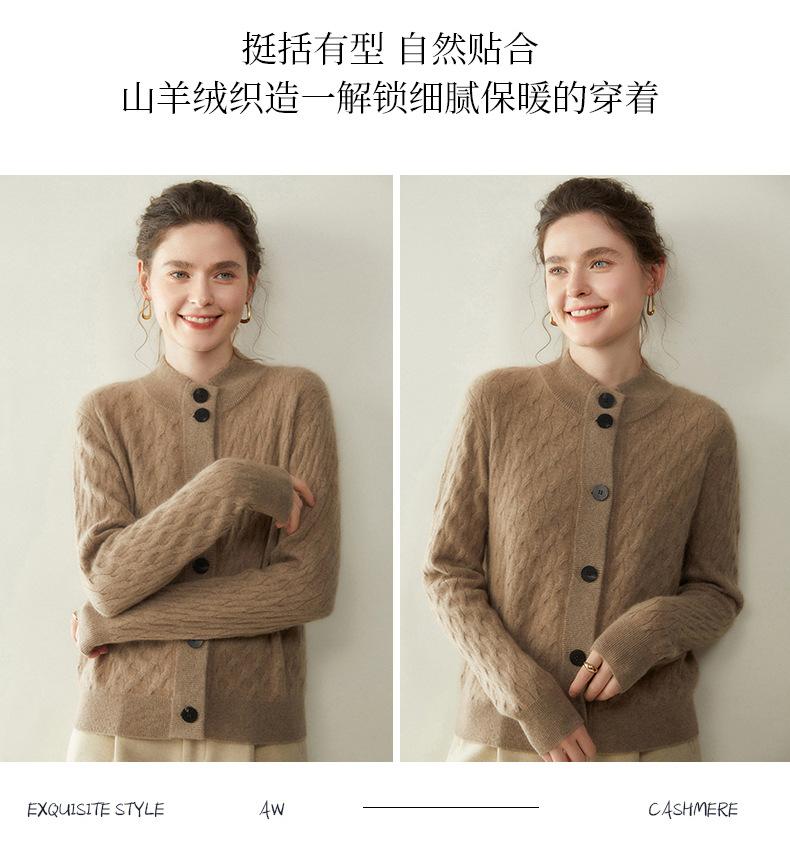Cárdigan de Cachemira de Cuello Medio Alto para Mujer Otoño e Invierno Nuevo Estilo Holgado Perezoso Suéter Tejido Abrigo Tejido de Cables Top Básico