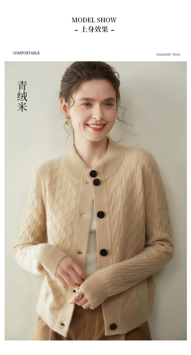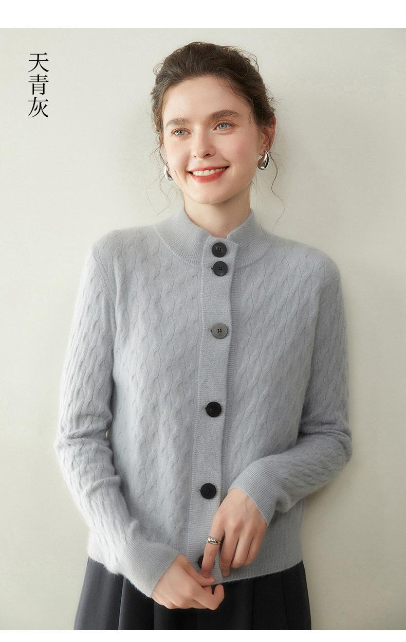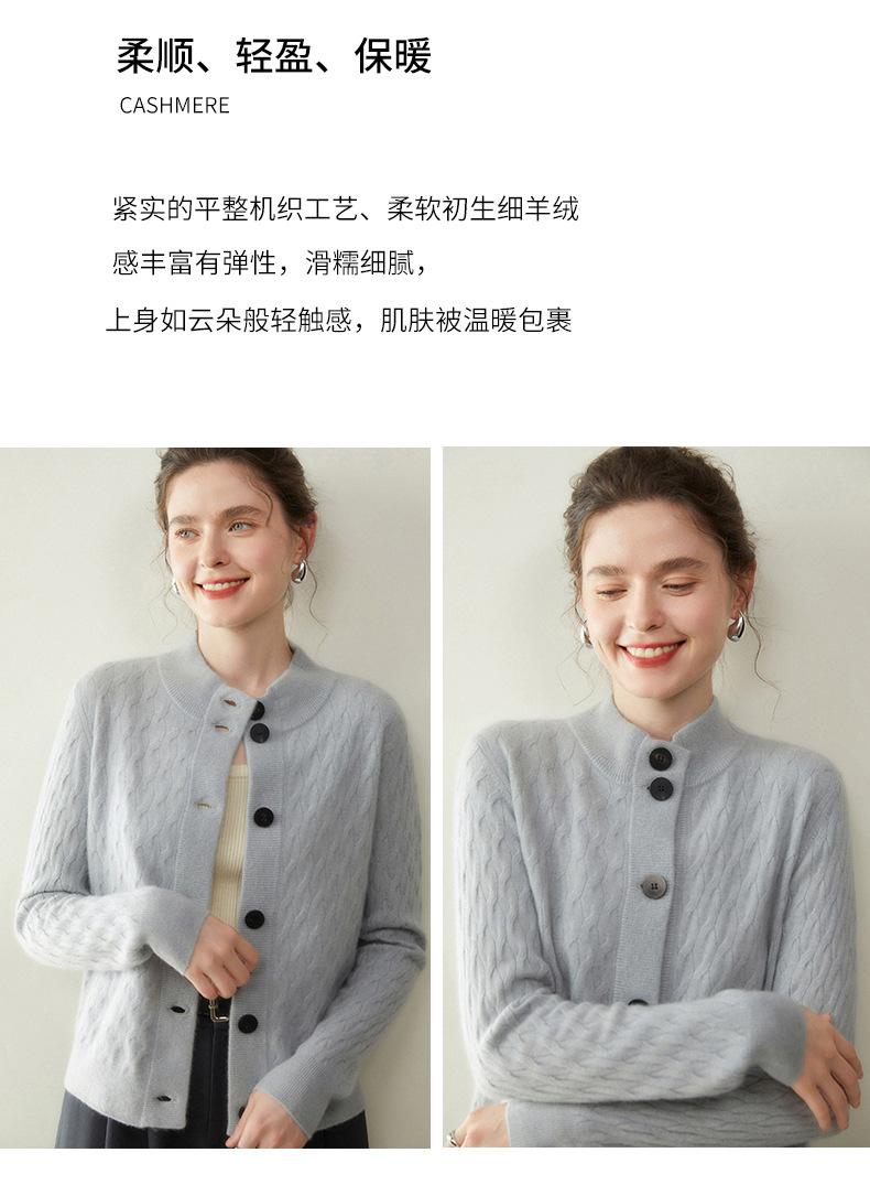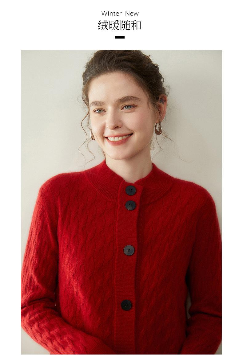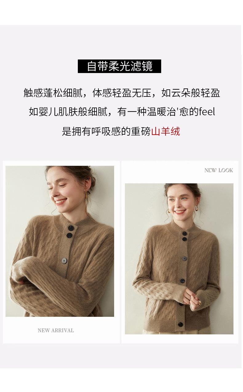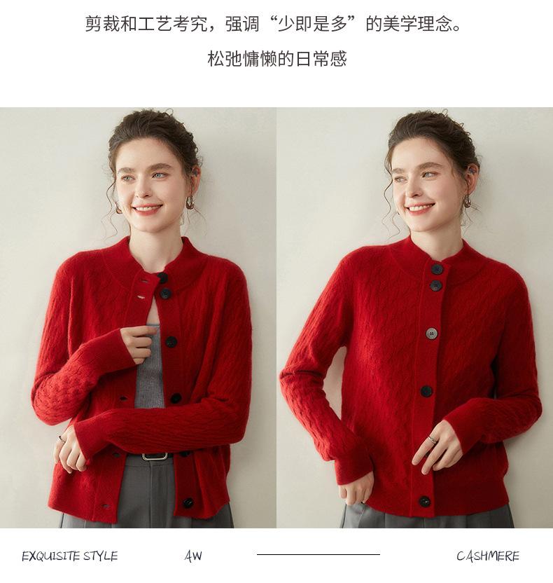 Cárdigan de Cachemira de Cuello Medio Alto para Mujer Otoño e Invierno Nuevo Estilo Holgado Perezoso Suéter Tejido Abrigo Tejido de Cables Top Básico
