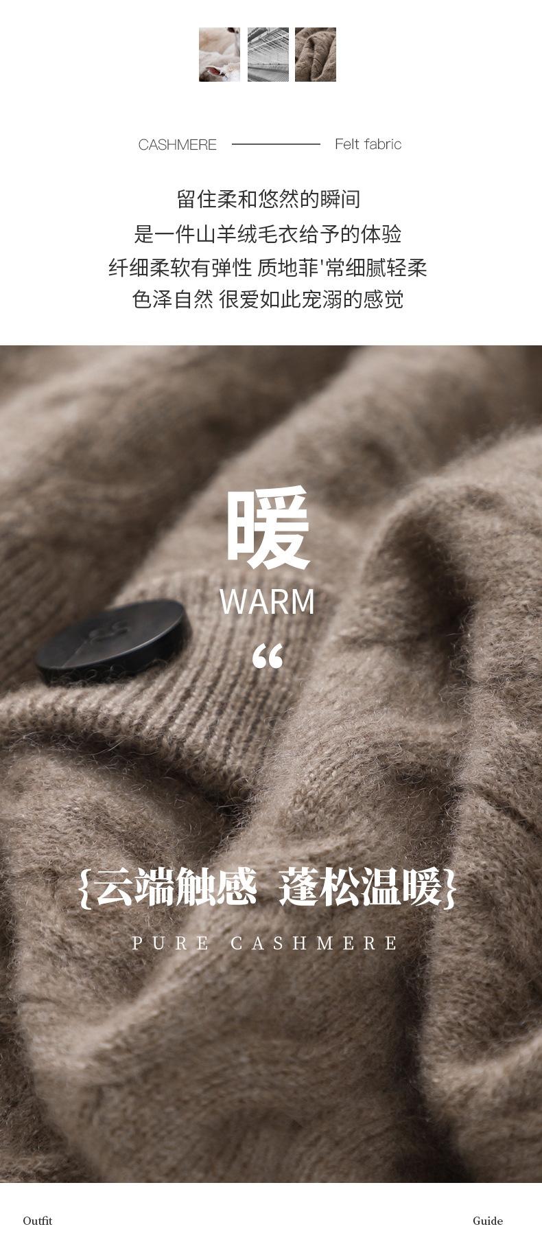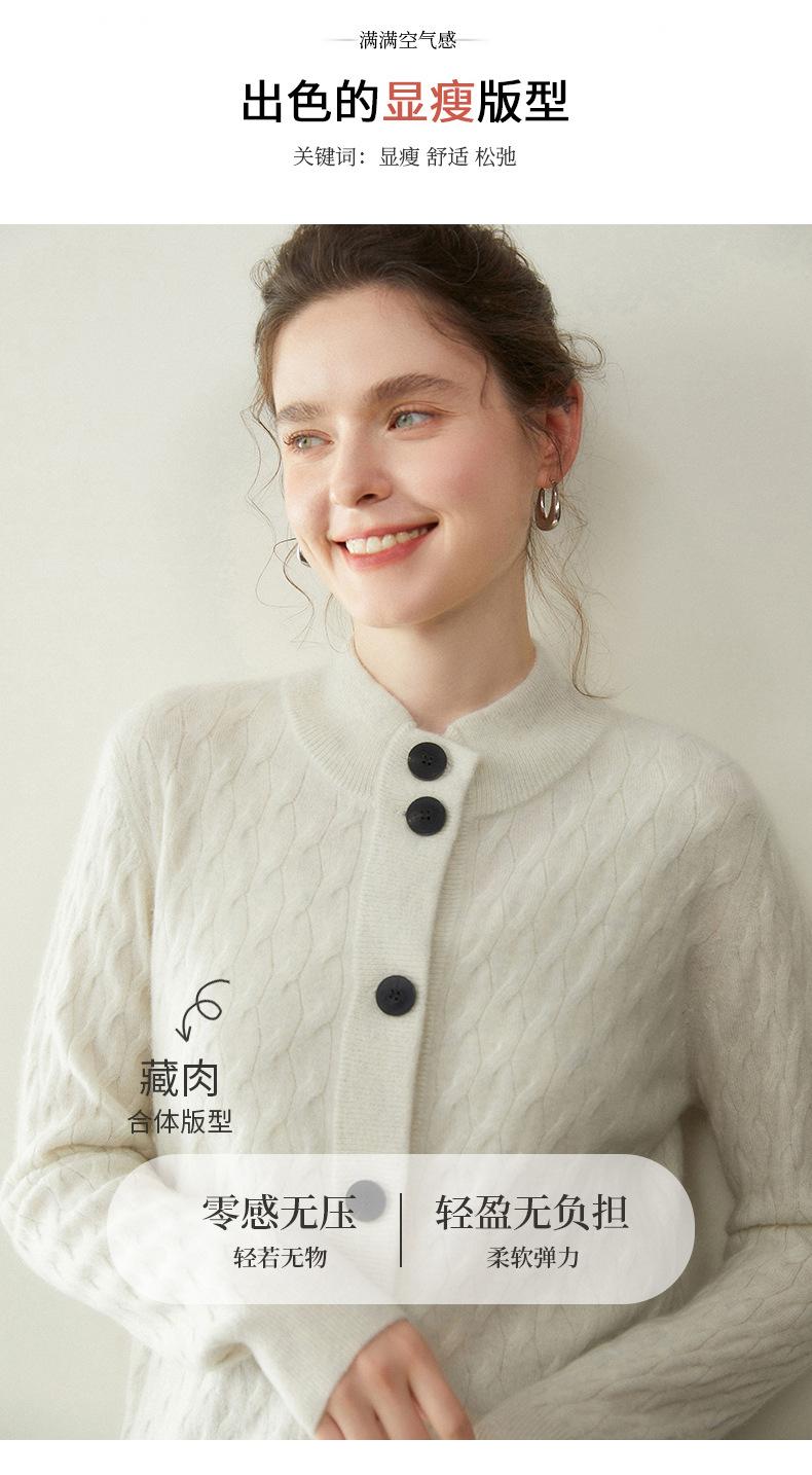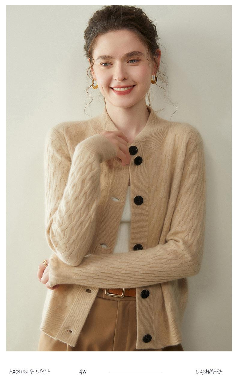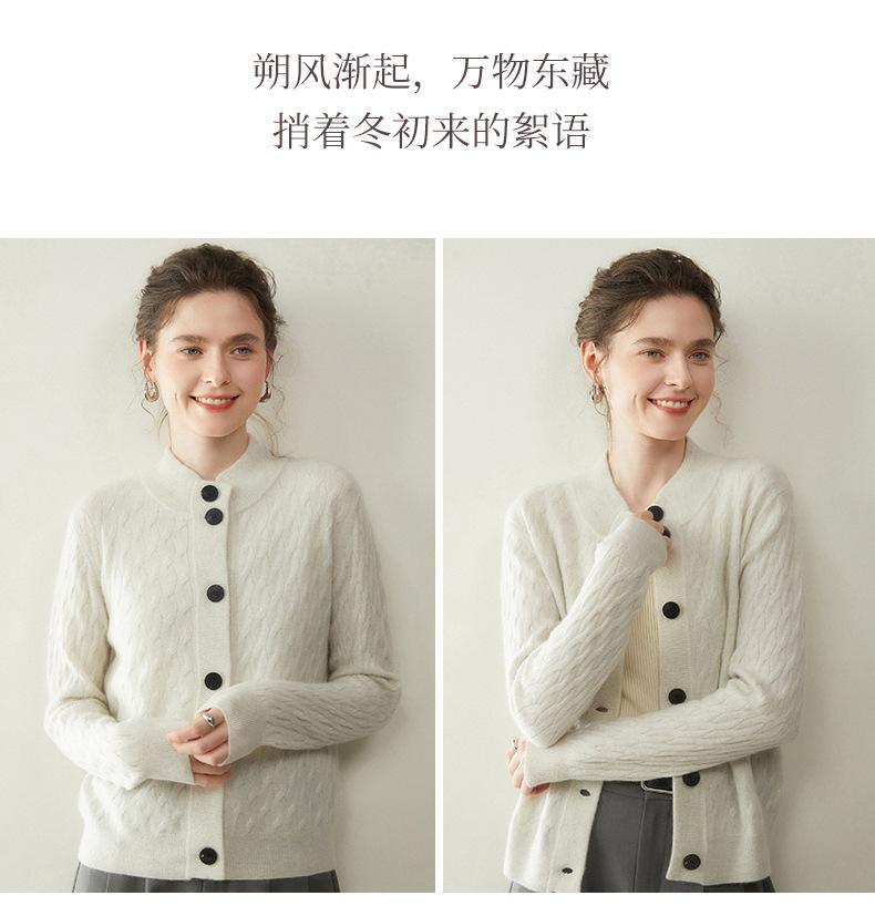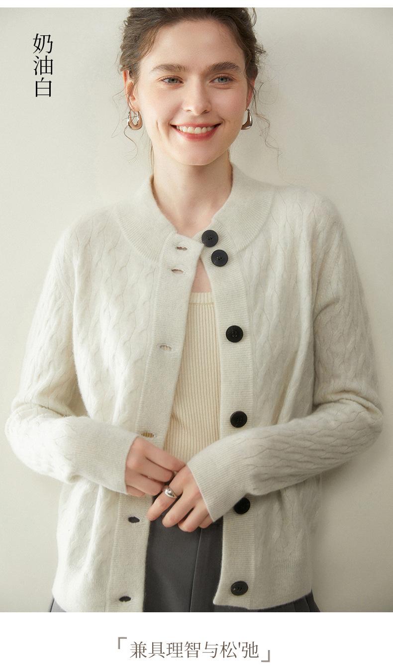 Cárdigan de Cachemira de Cuello Medio Alto para Mujer Otoño e Invierno Nuevo Estilo Holgado Perezoso Suéter Tejido Abrigo Tejido de Cables Top Básico