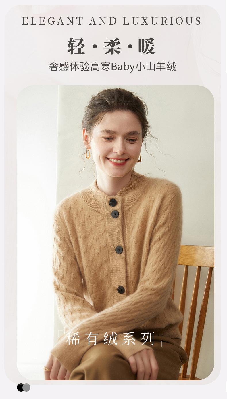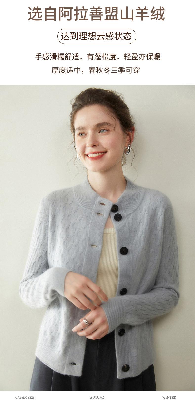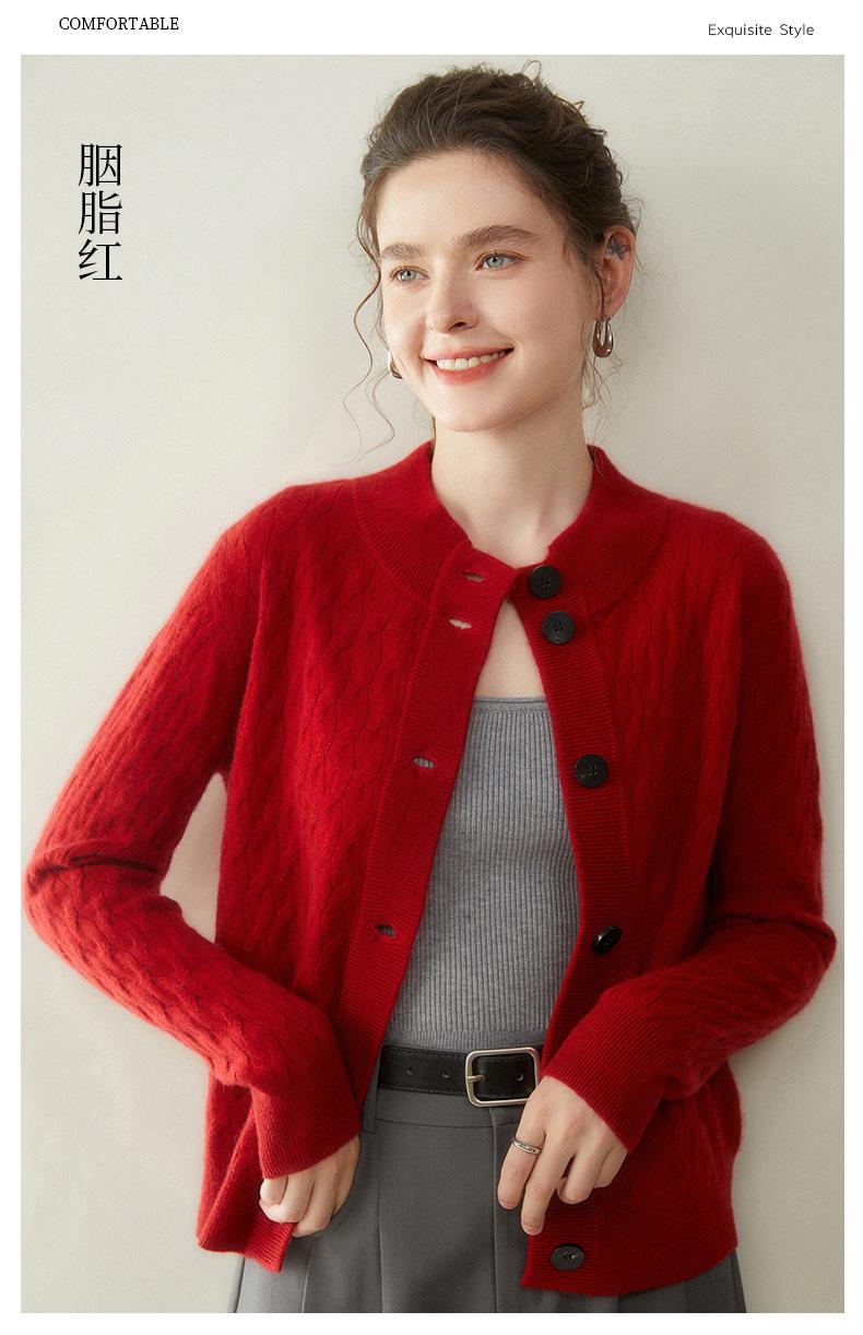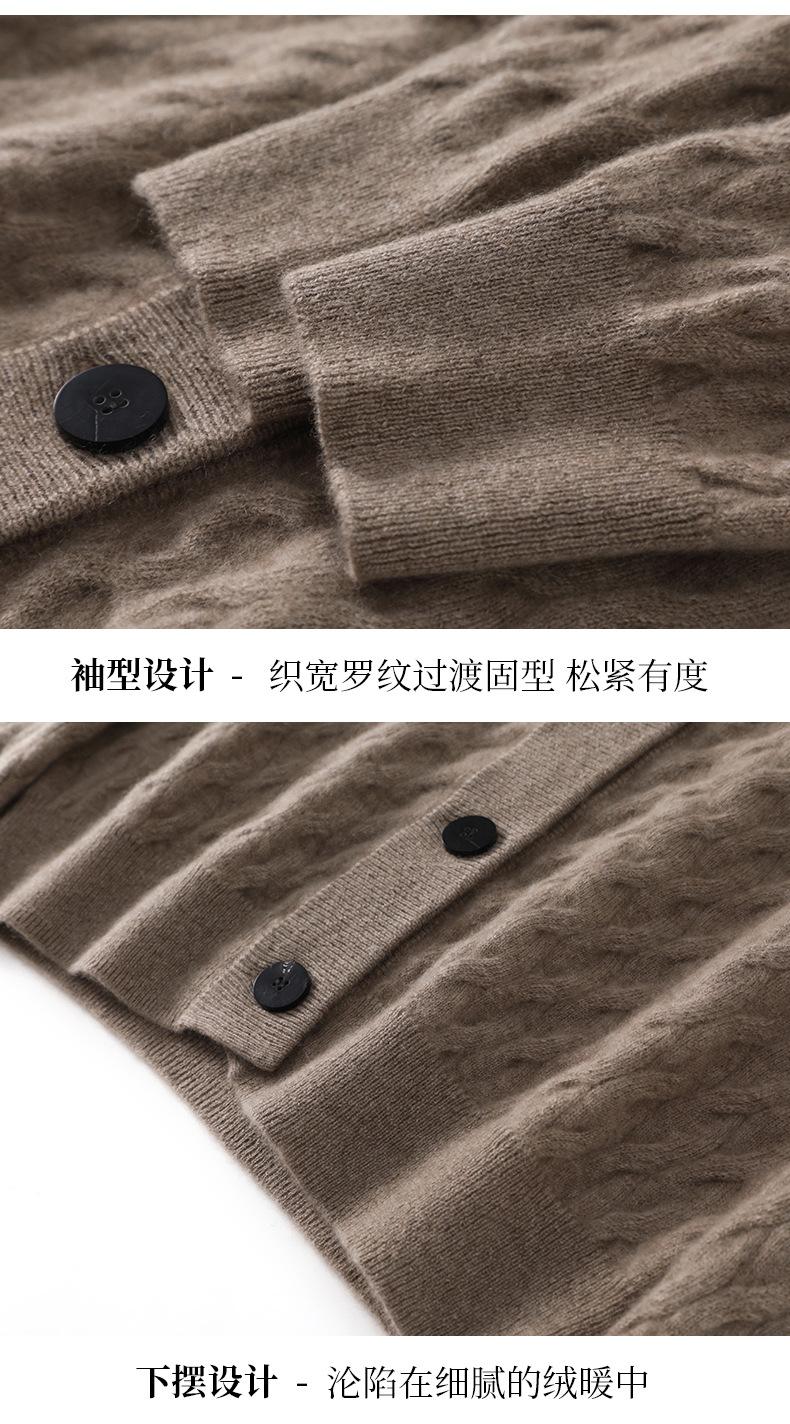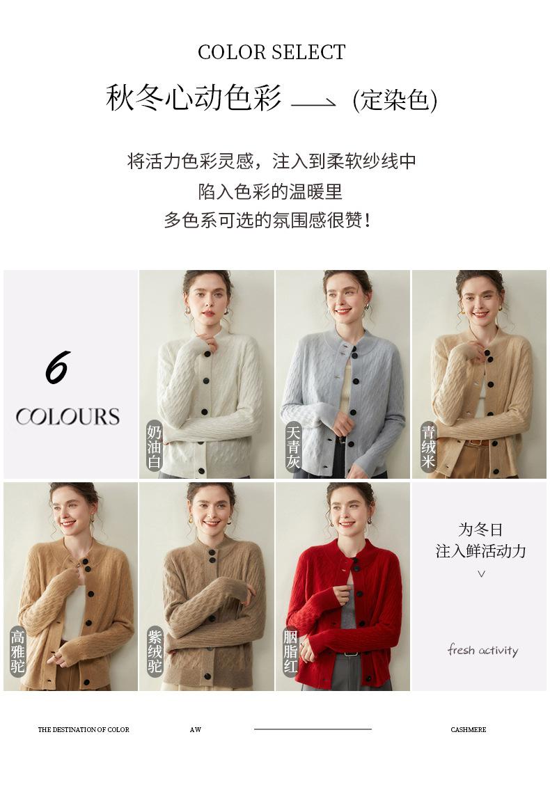 Cárdigan de Cachemira de Cuello Medio Alto para Mujer Otoño e Invierno Nuevo Estilo Holgado Perezoso Suéter Tejido Abrigo Tejido de Cables Top Básico