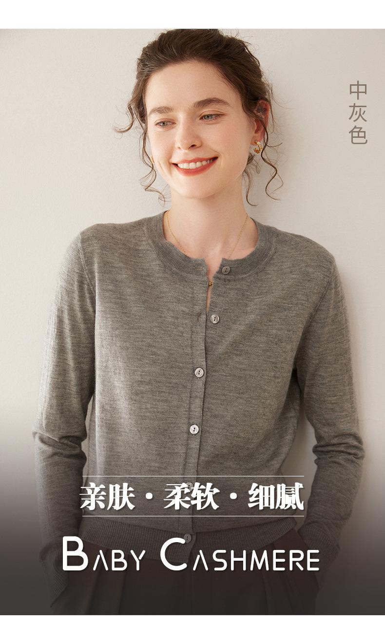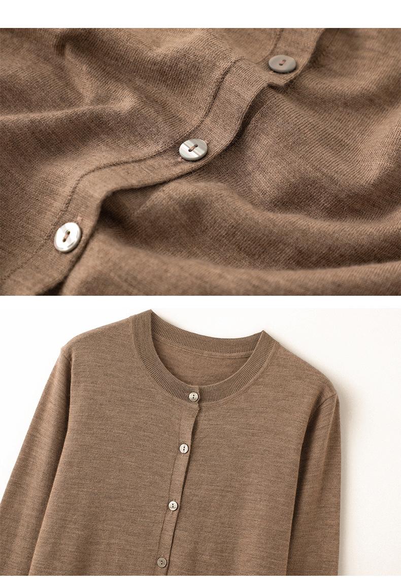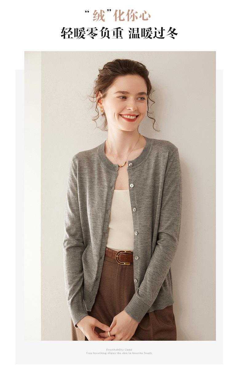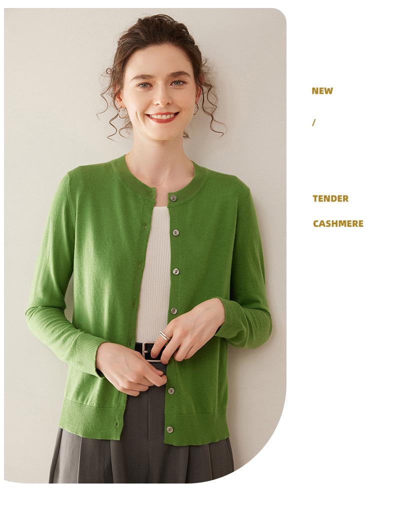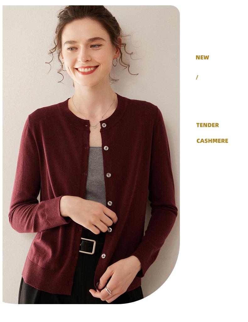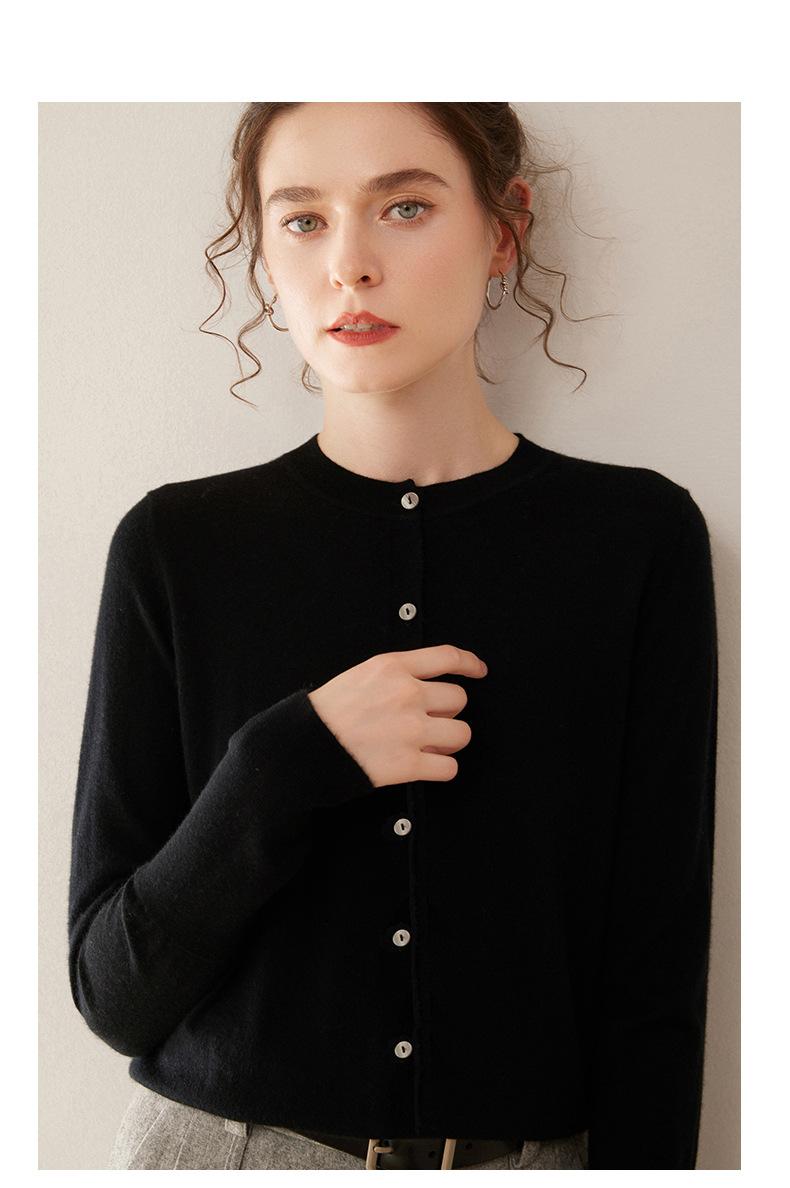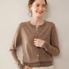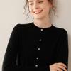 Cárdigan de punto fino de cachemira fina de 68 cabos para mujer, cuello redondo, manga larga, abrigo suéter abotonado, top cómodo, ropa exterior