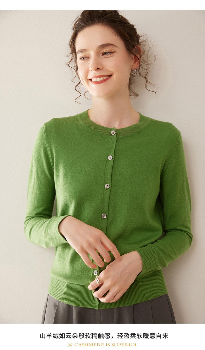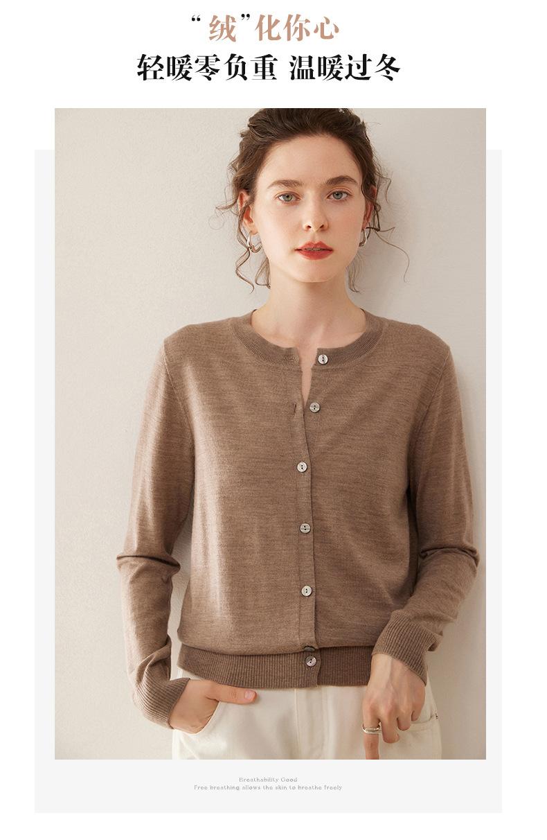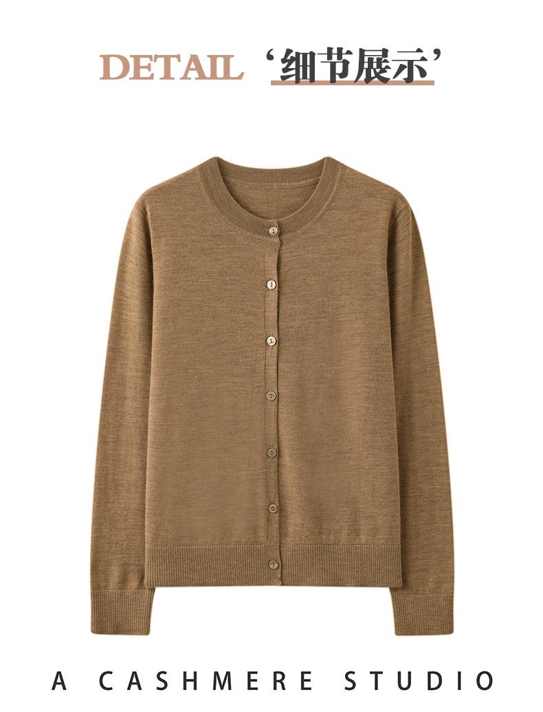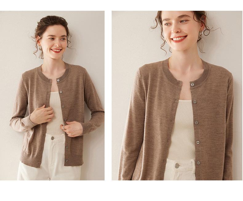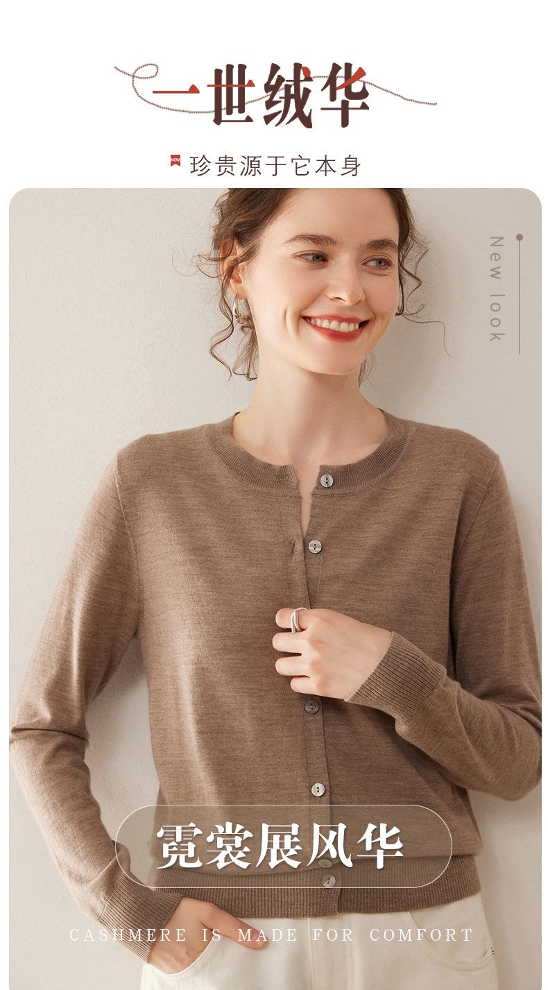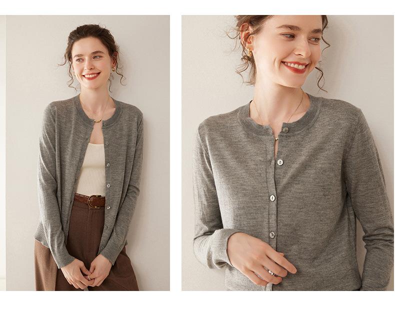 Cárdigan de punto fino de cachemira fina de 68 cabos para mujer, cuello redondo, manga larga, abrigo suéter abotonado, top cómodo, ropa exterior