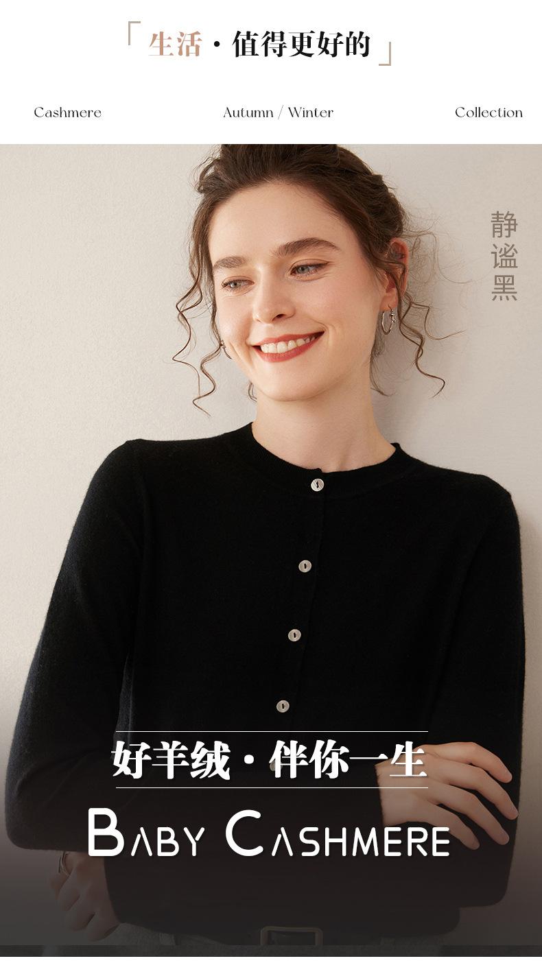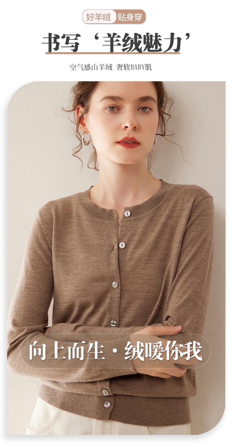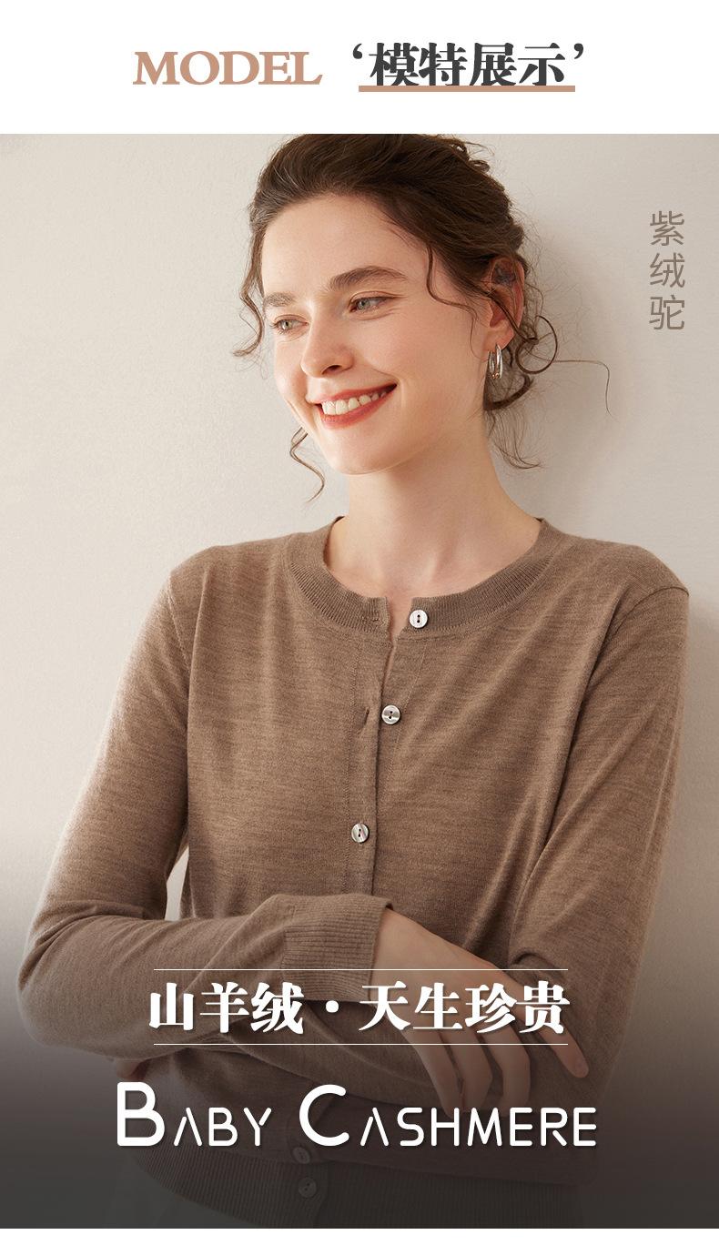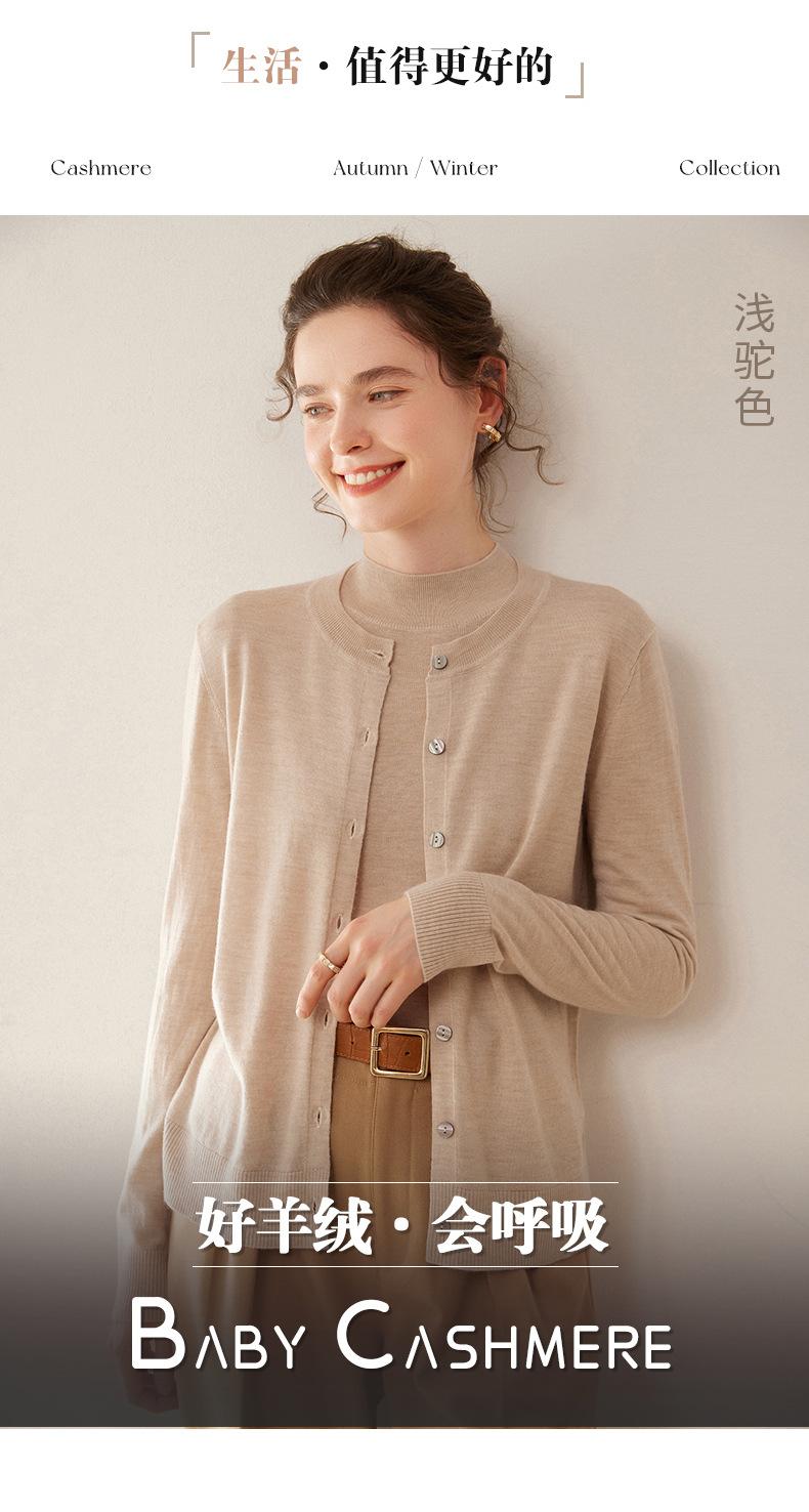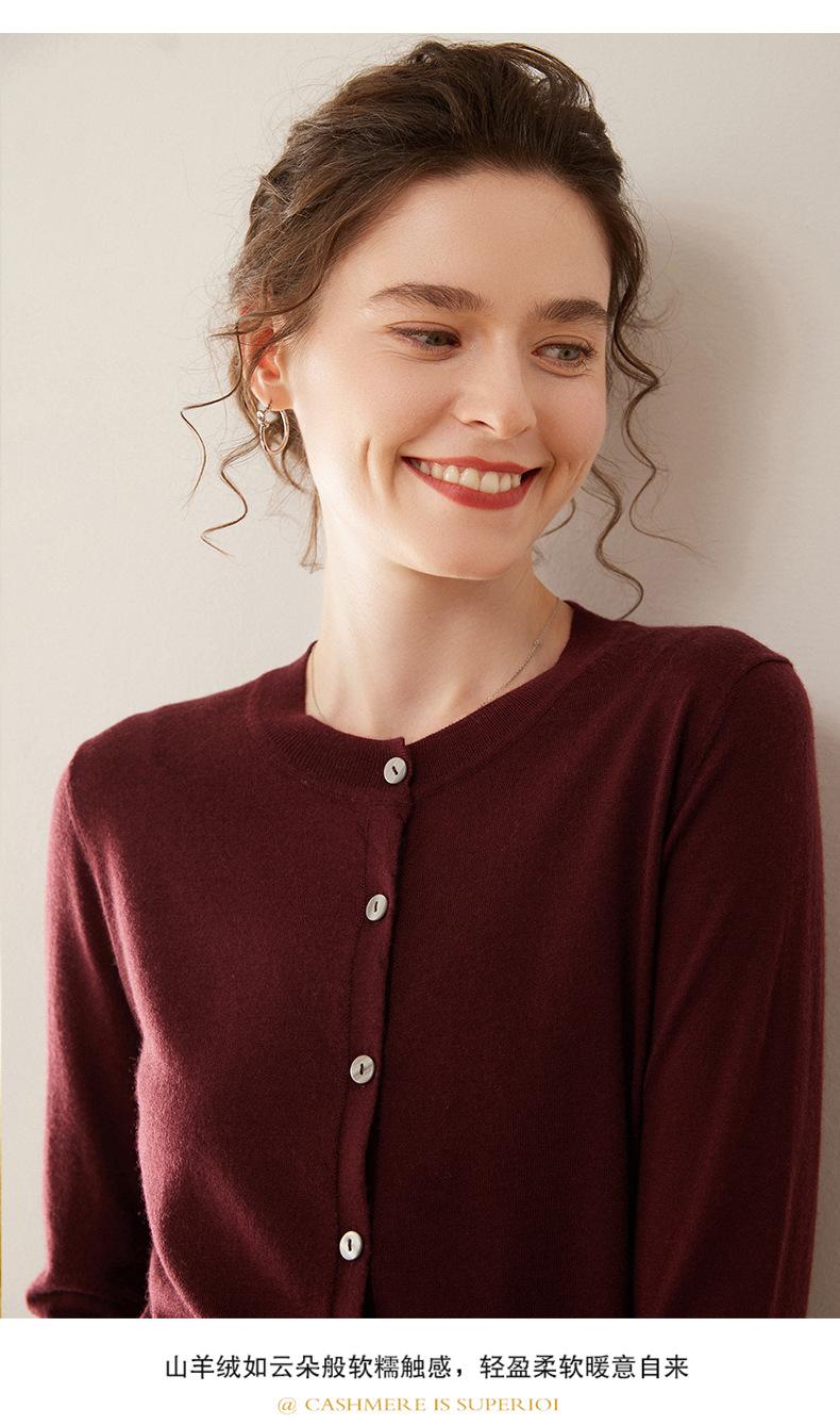 Cárdigan de punto fino de cachemira fina de 68 cabos para mujer, cuello redondo, manga larga, abrigo suéter abotonado, top cómodo, ropa exterior