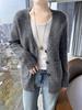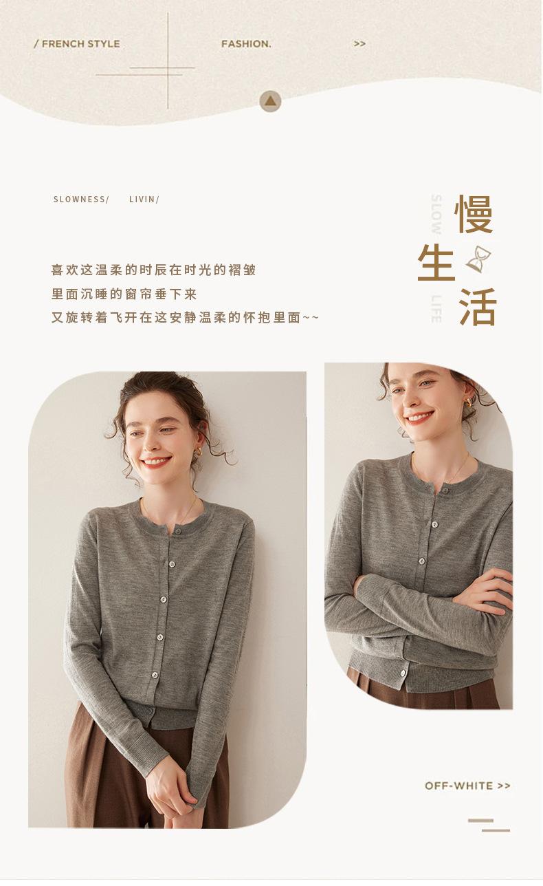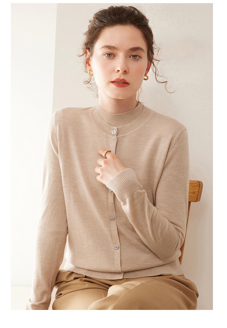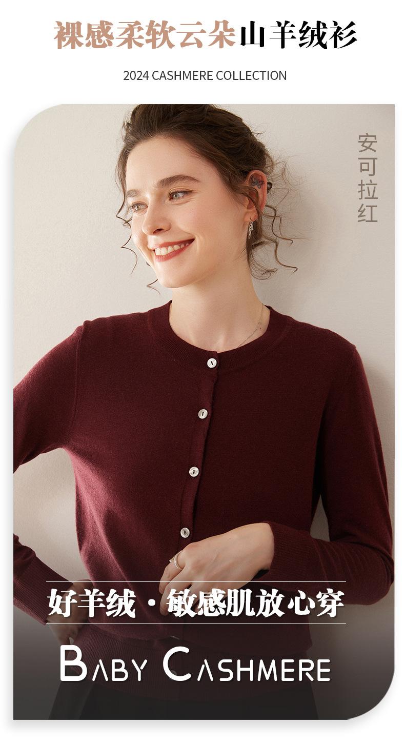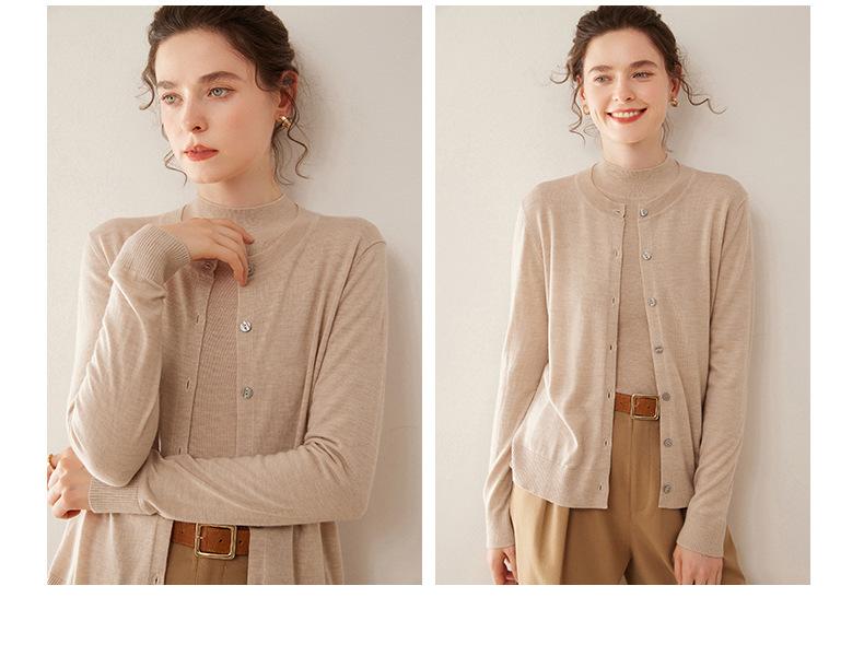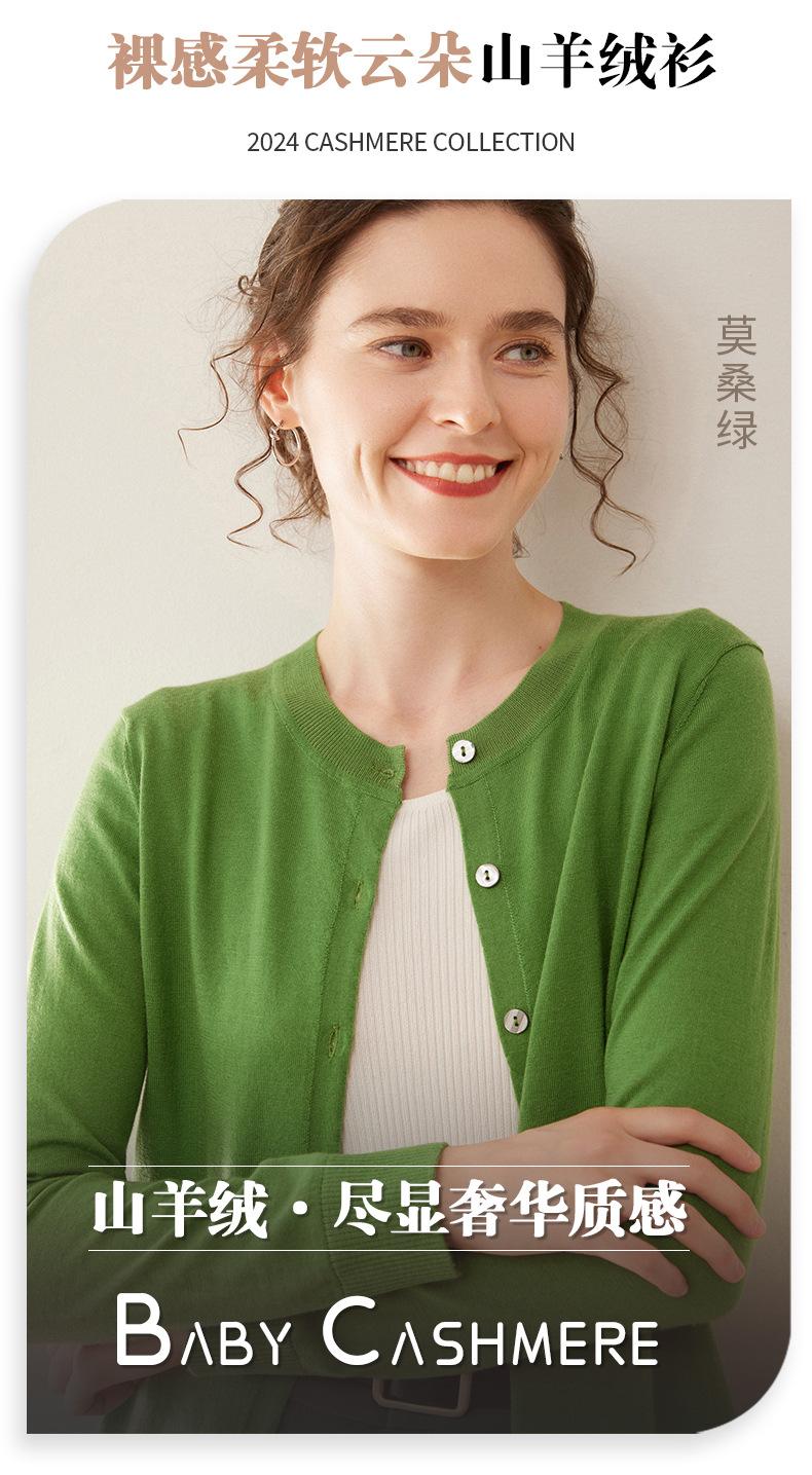 Cárdigan de punto fino de cachemira fina de 68 cabos para mujer, cuello redondo, manga larga, abrigo suéter abotonado, top cómodo, ropa exterior