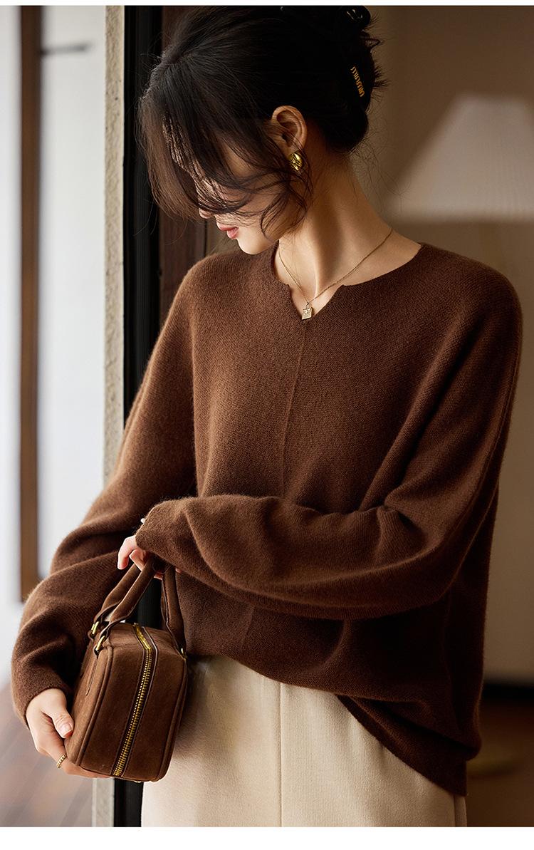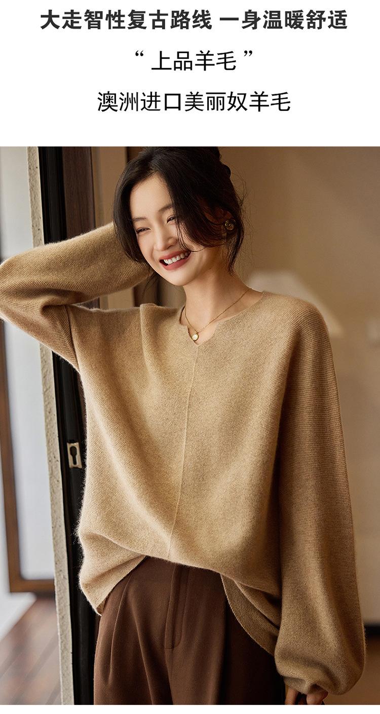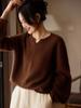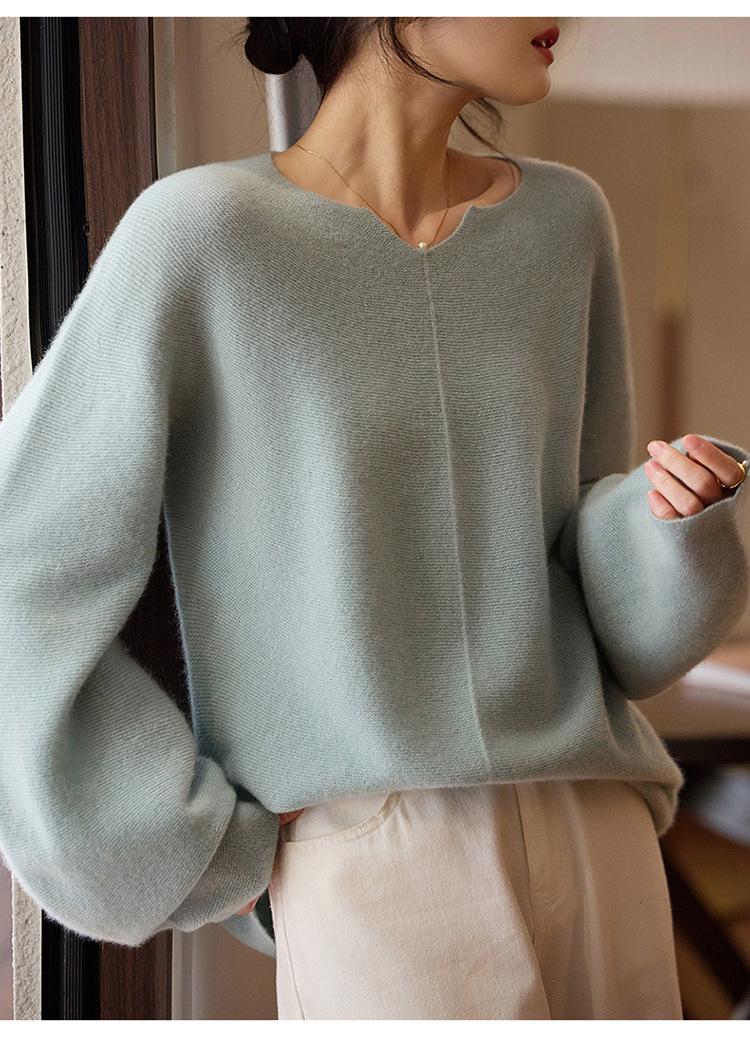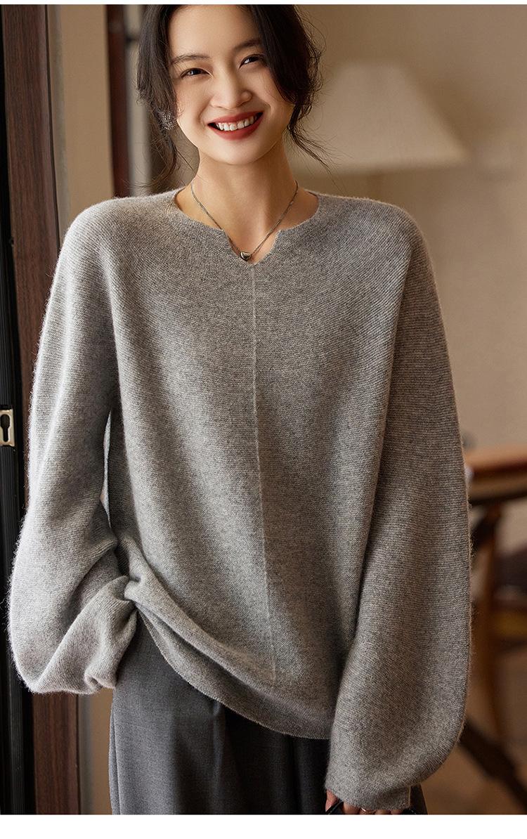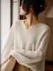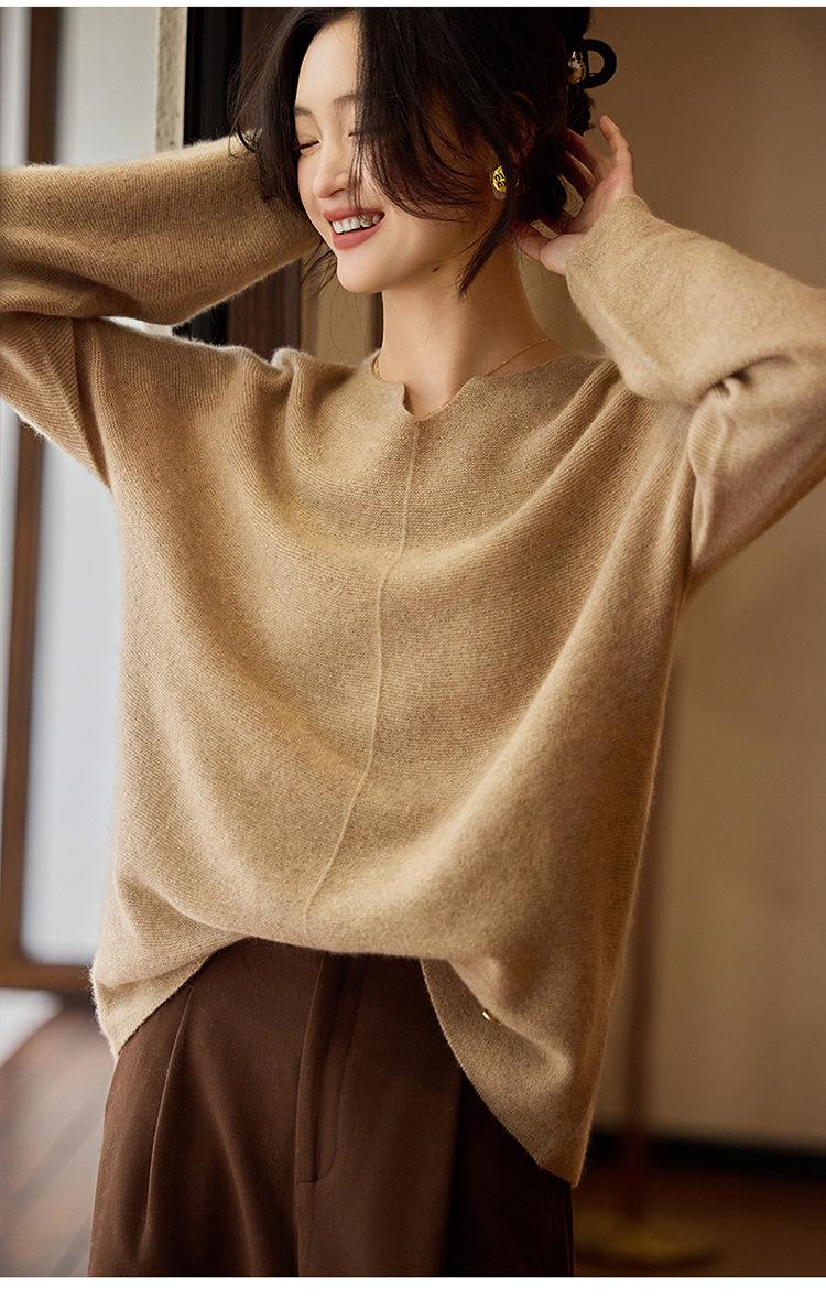 Suéter holgado de estilo perezoso de otoño e invierno de pura lana para mujer, suéter de punto de cuello redondo de manga larga, suéter básico de lana, top, venta al por mayor
