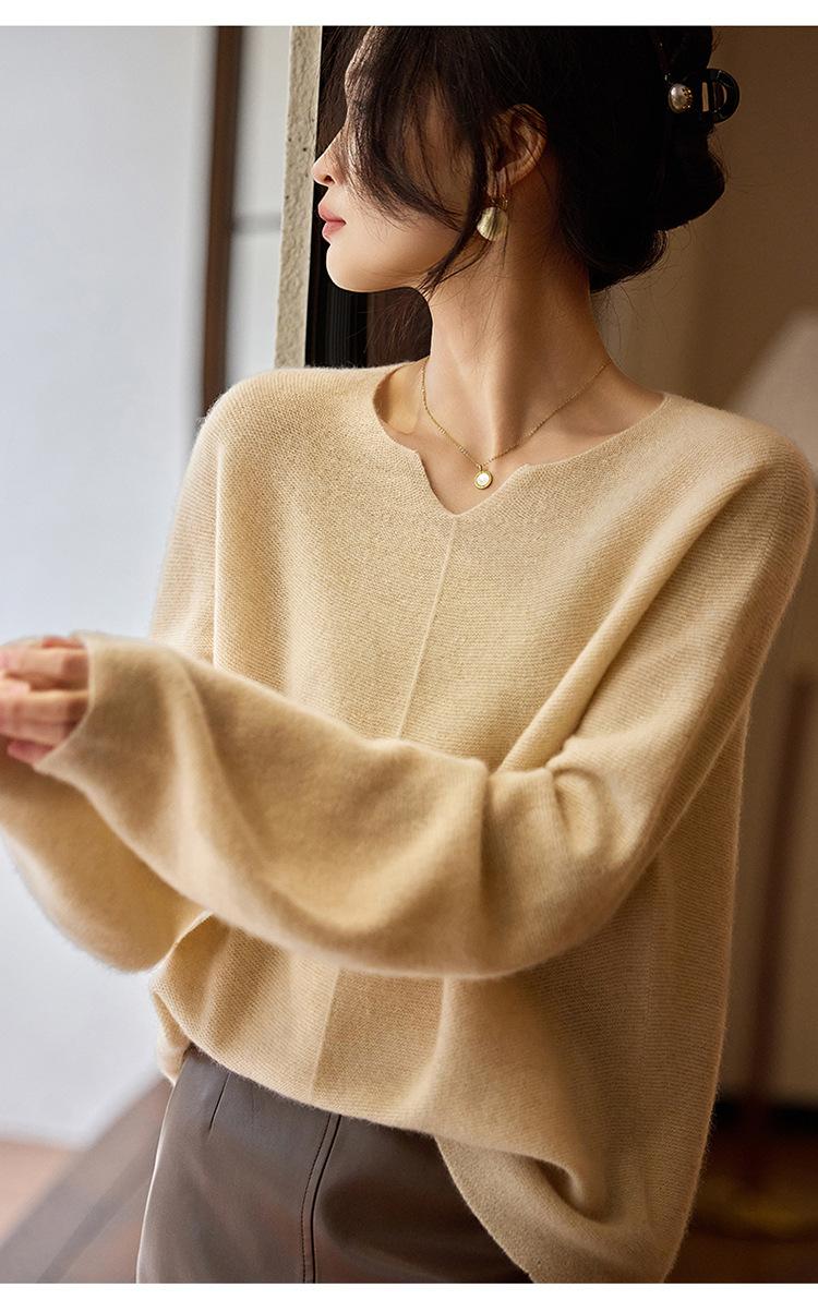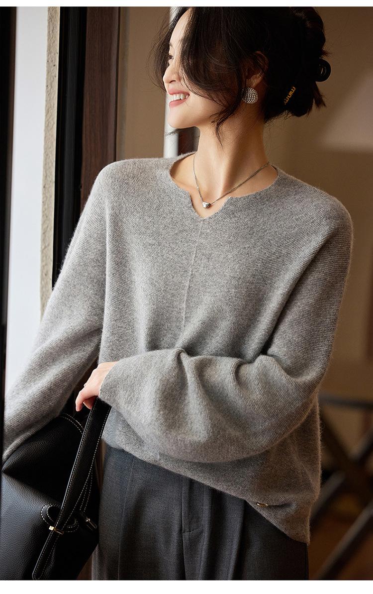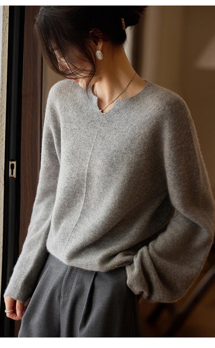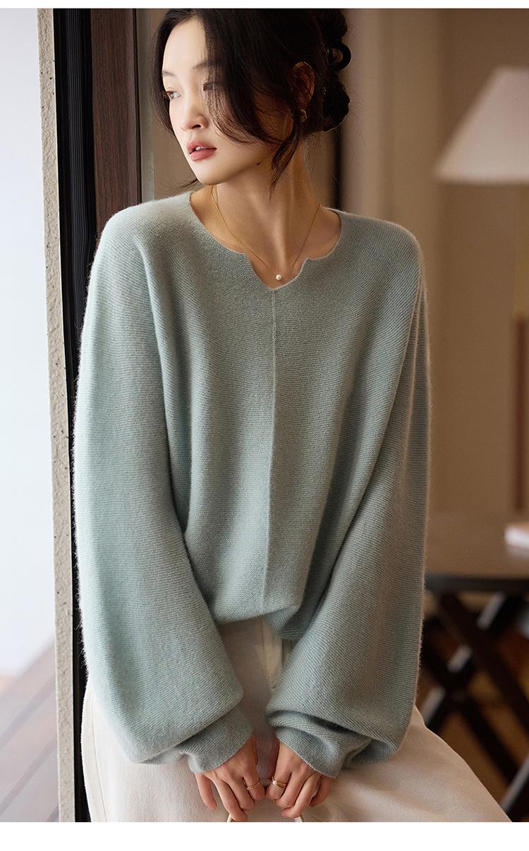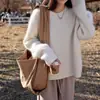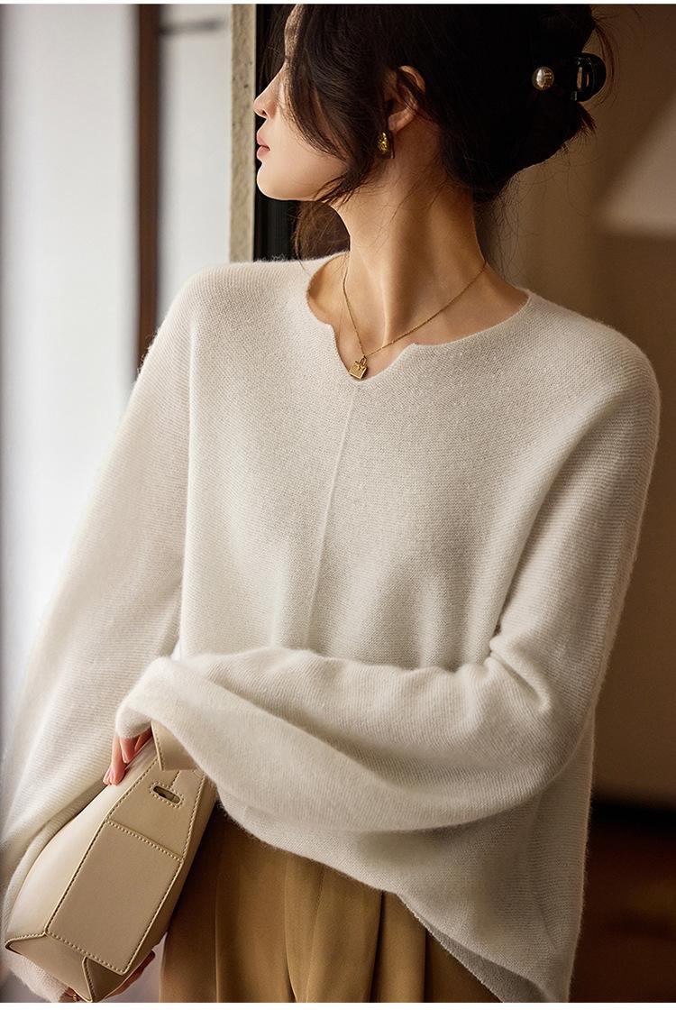 Suéter holgado de estilo perezoso de otoño e invierno de pura lana para mujer, suéter de punto de cuello redondo de manga larga, suéter básico de lana, top, venta al por mayor