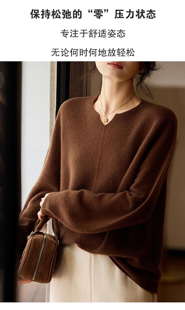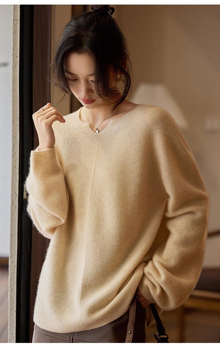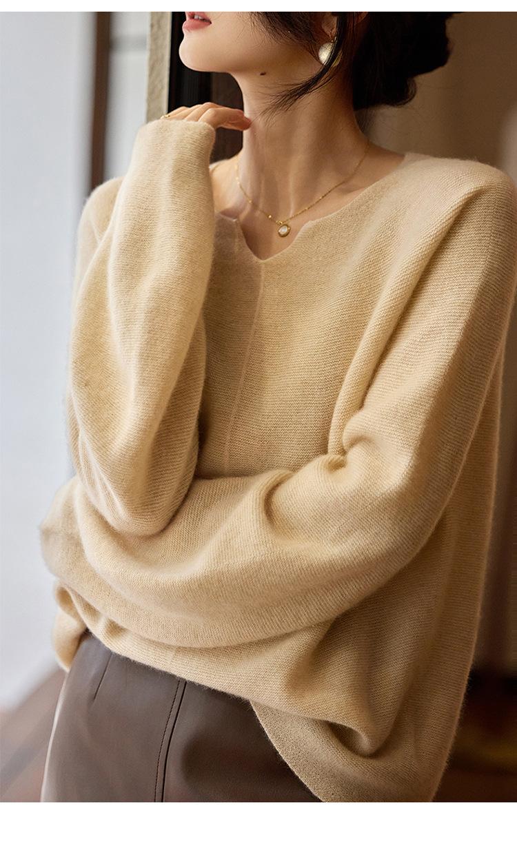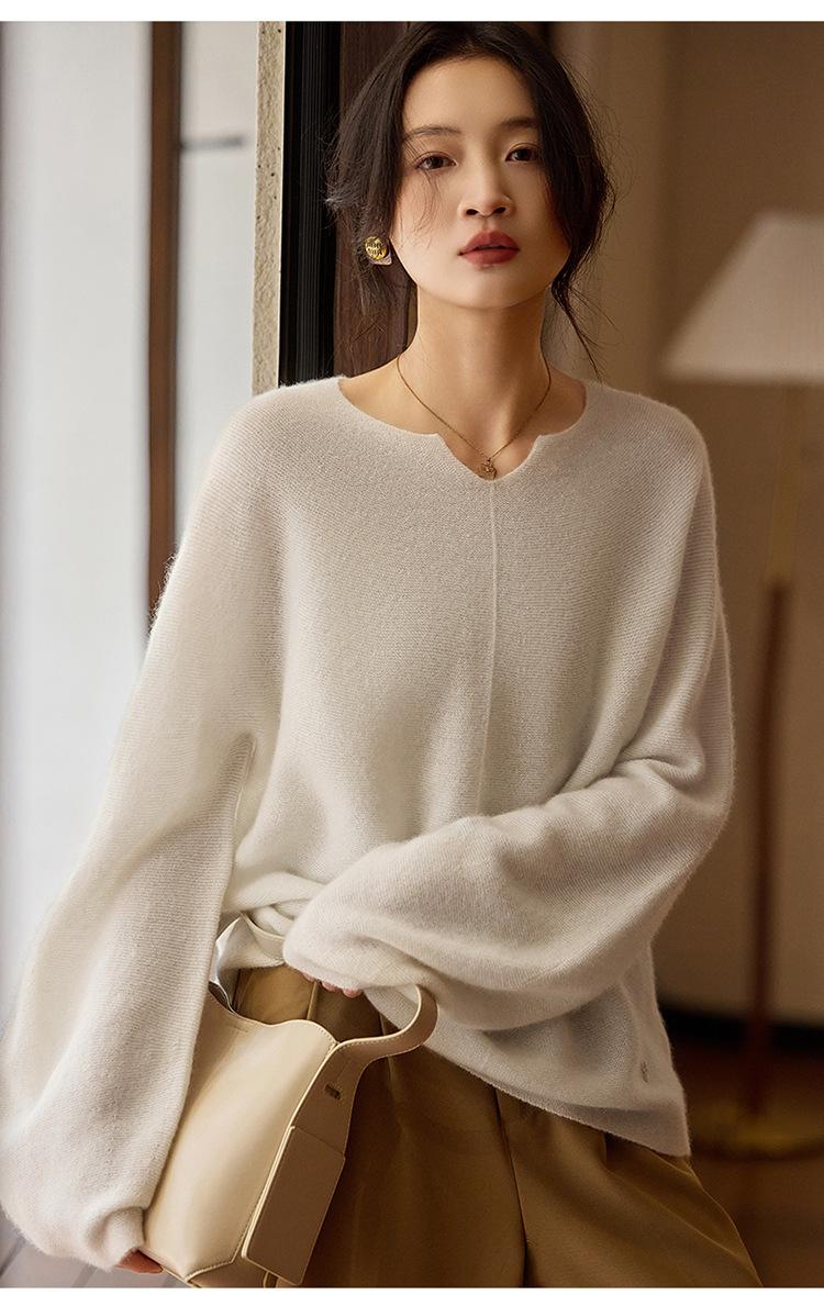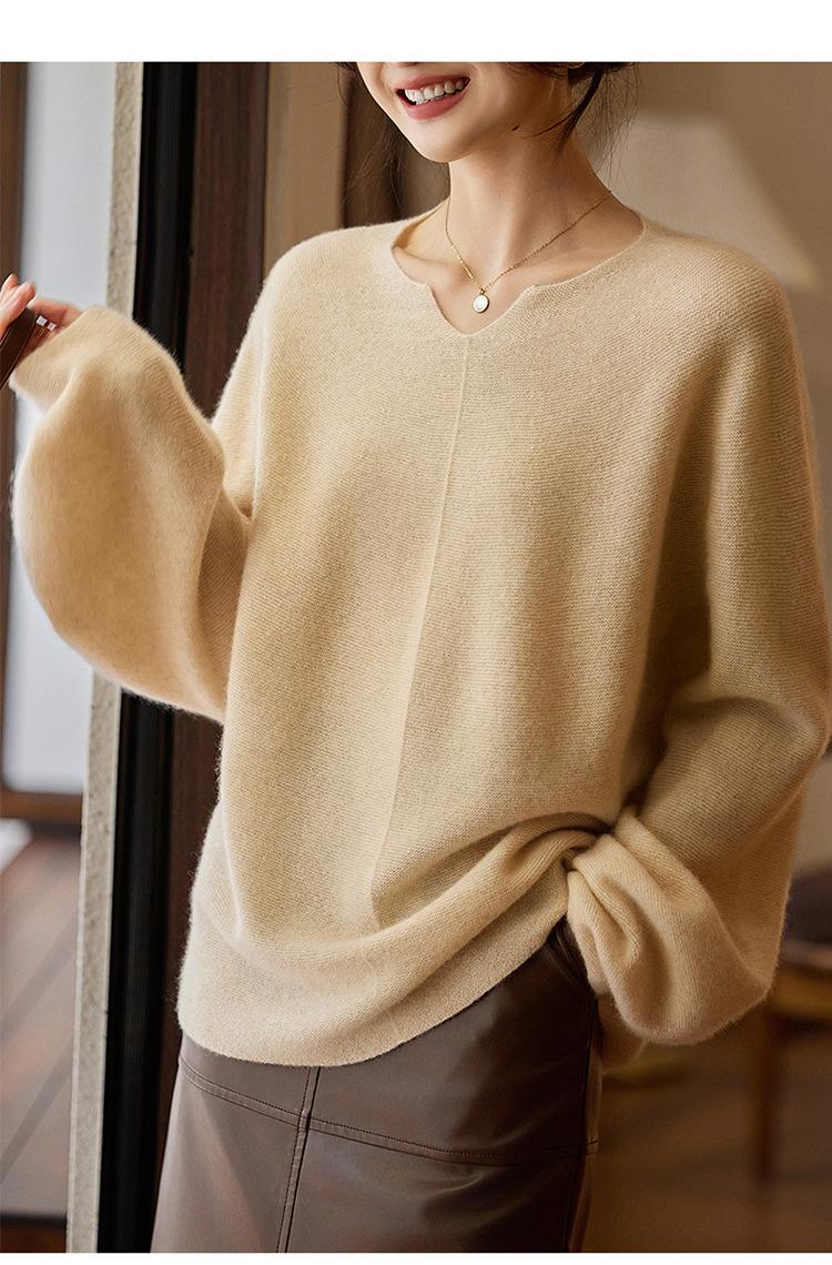 Suéter holgado de estilo perezoso de otoño e invierno de pura lana para mujer, suéter de punto de cuello redondo de manga larga, suéter básico de lana, top, venta al por mayor