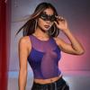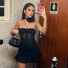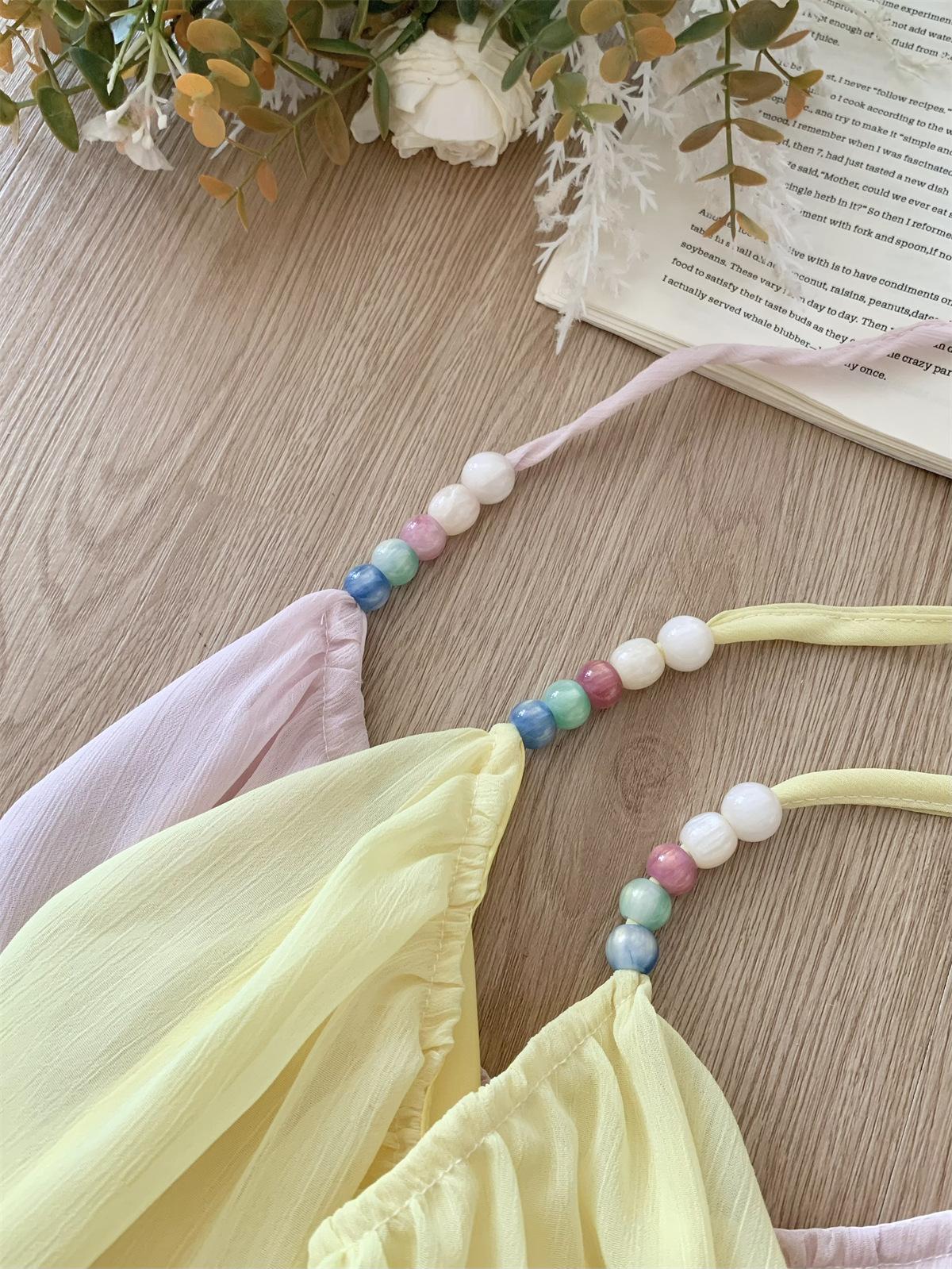 Sueño de un Día de Verano Hermoso Escote en V Profundo Asimétrico Malla Espalda Descubierta Halter con Cuentas Vacaciones Liguero