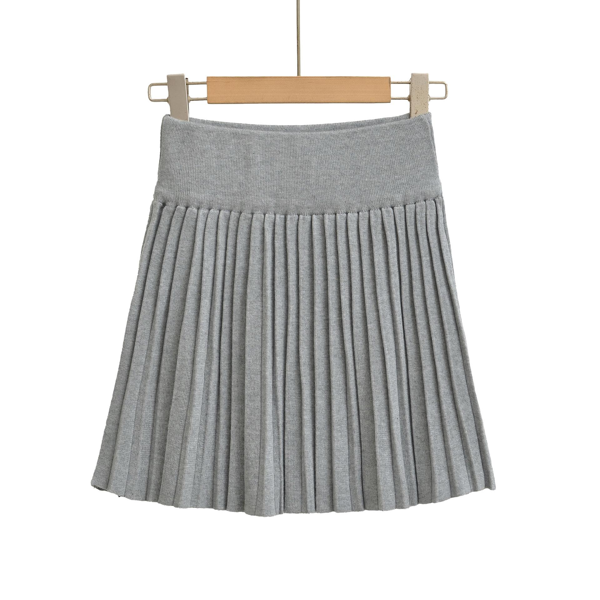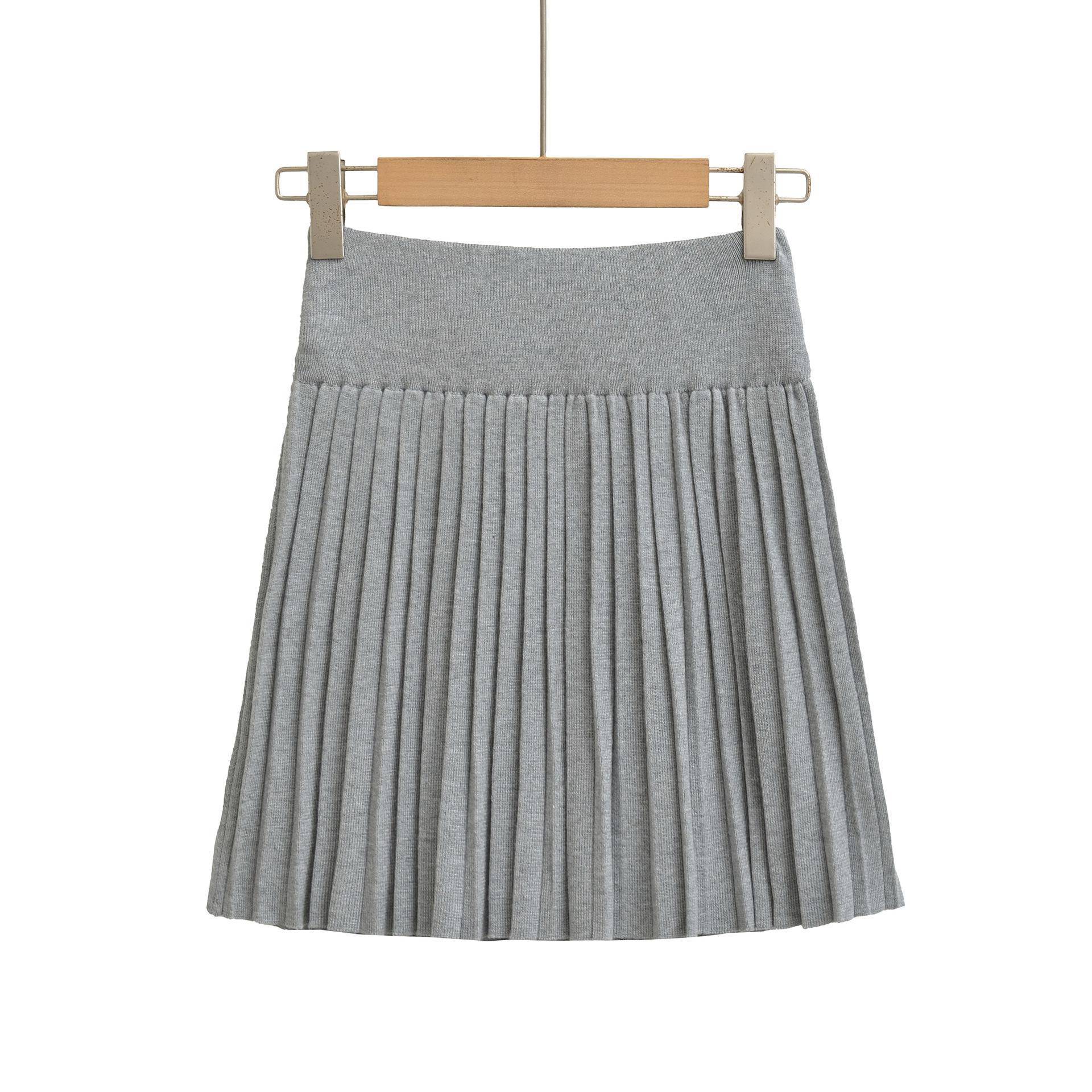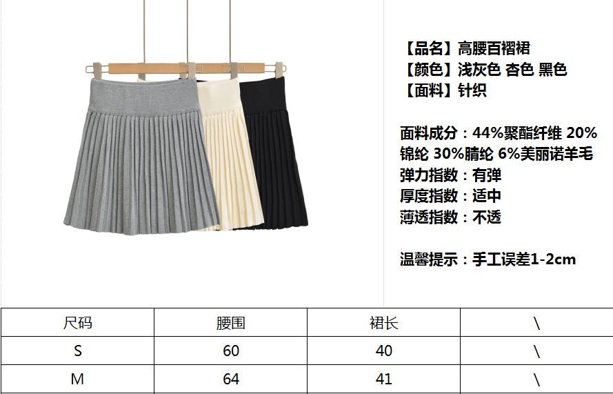 Q164-25 Verano Nuevo Estilo Universitario Chica Francesa Sexy Cintura Alta Elástica Adelgazante Tejido Punto Plisado Falda Midi