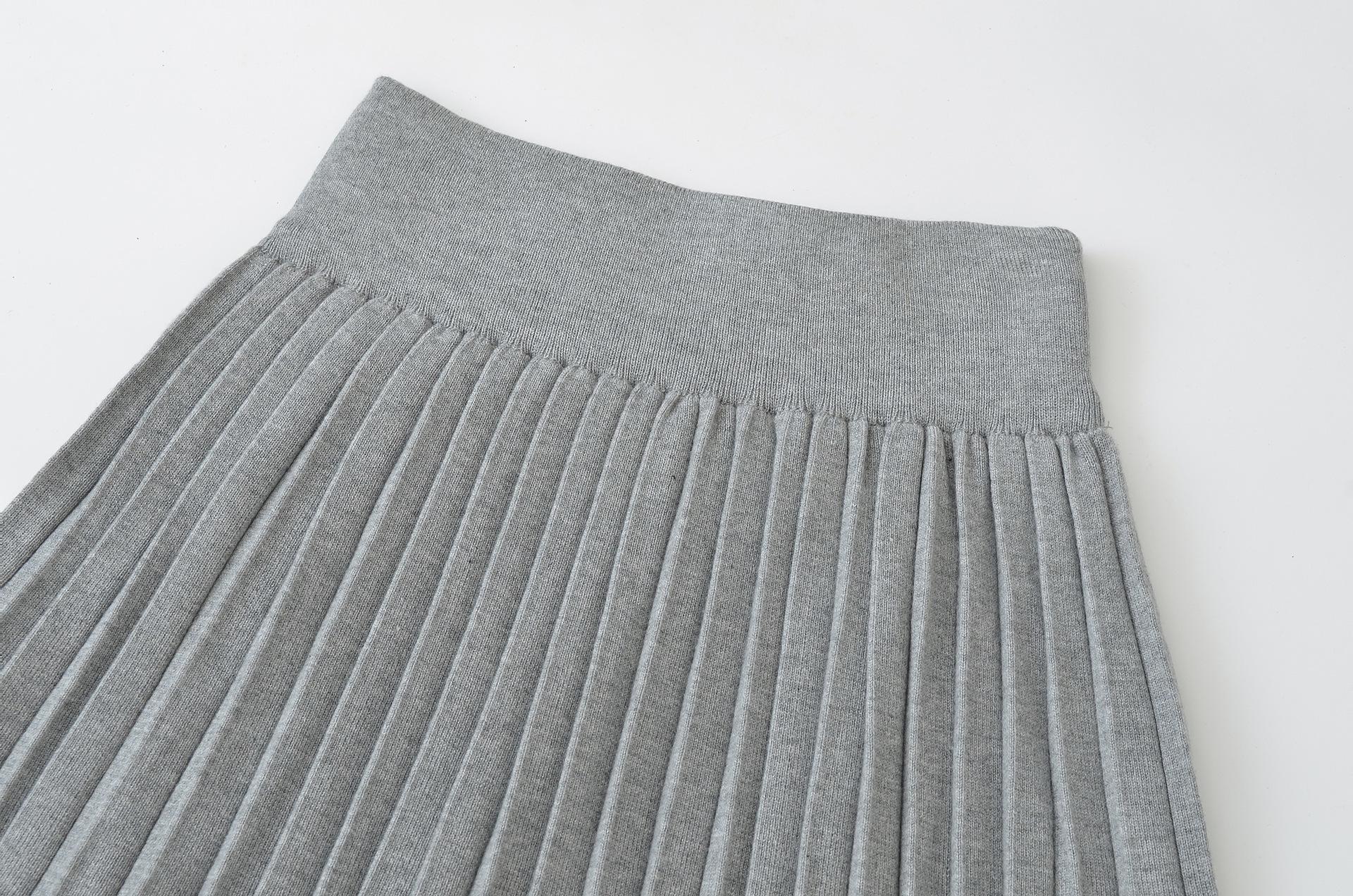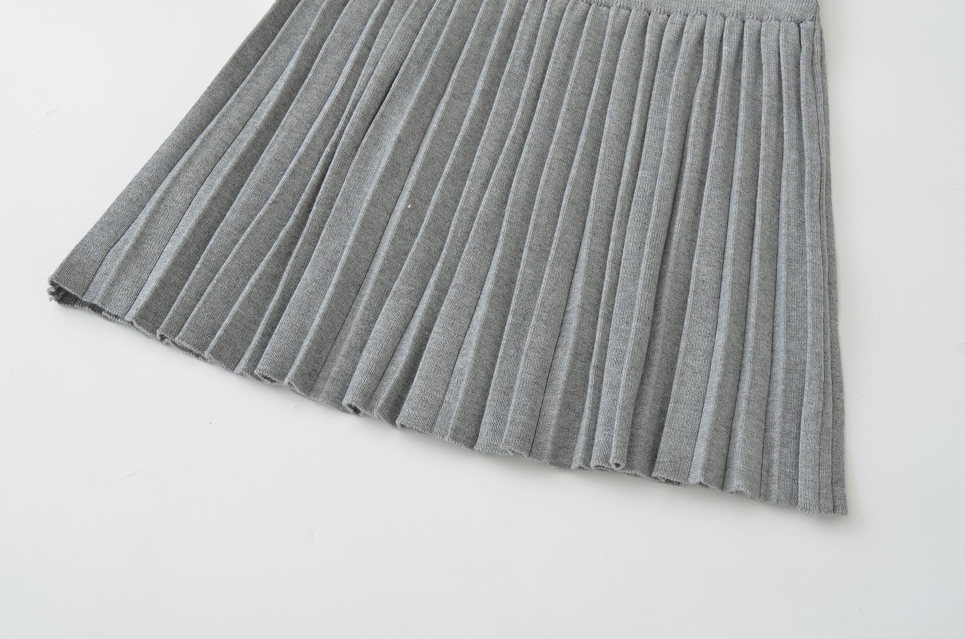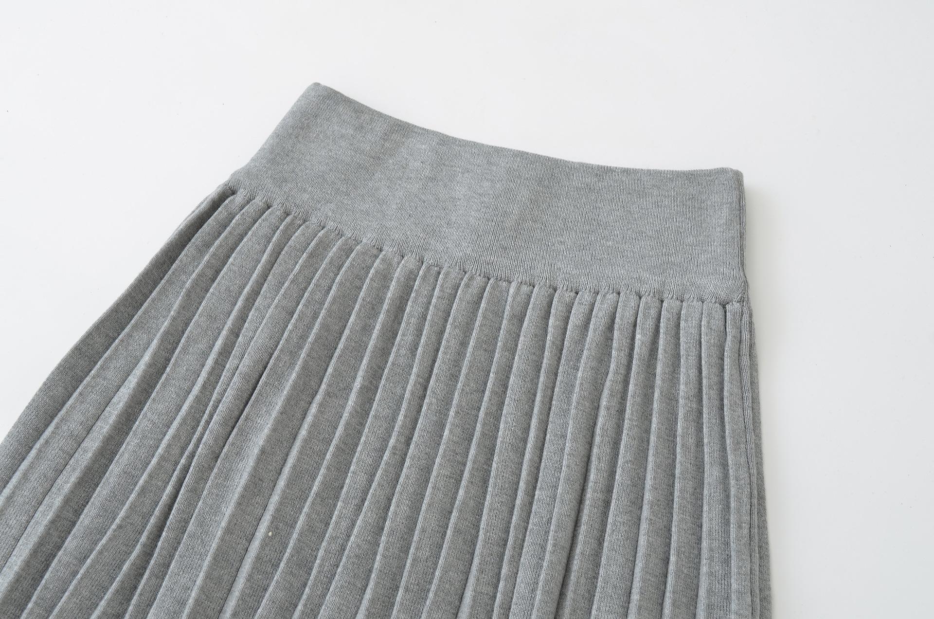 Q164-25 Verano Nuevo Estilo Universitario Chica Francesa Sexy Cintura Alta Elástica Adelgazante Tejido Punto Plisado Falda Midi