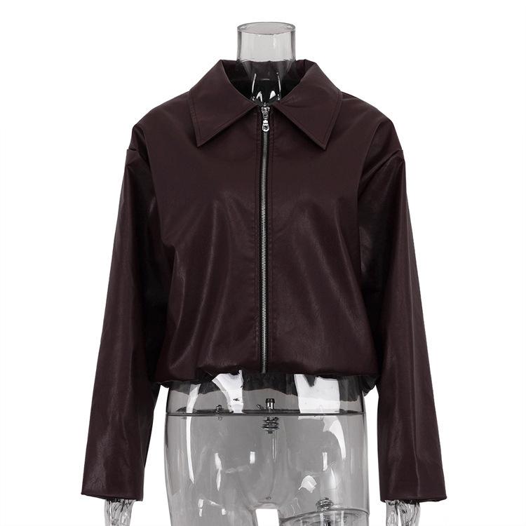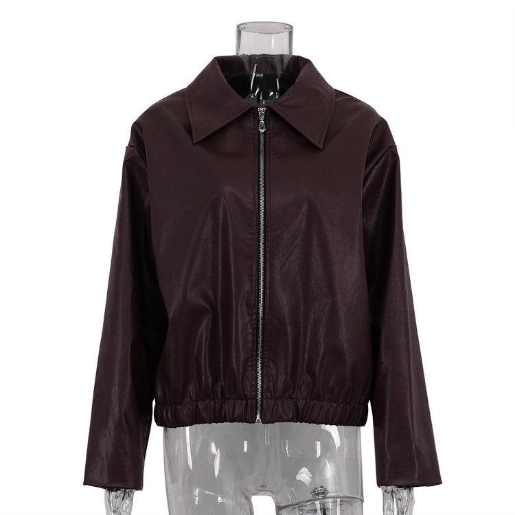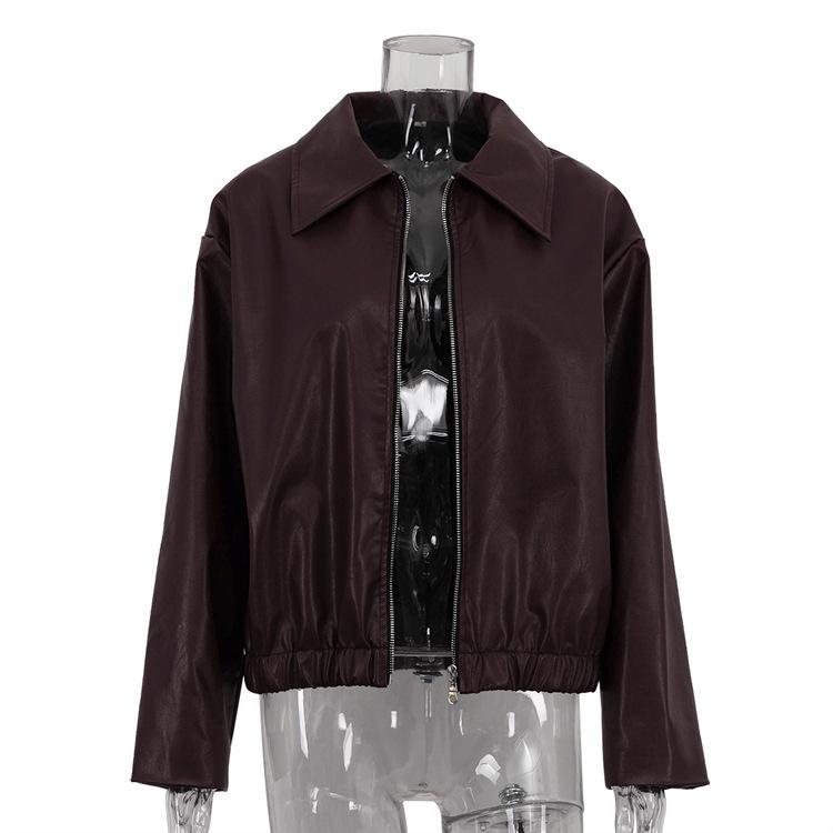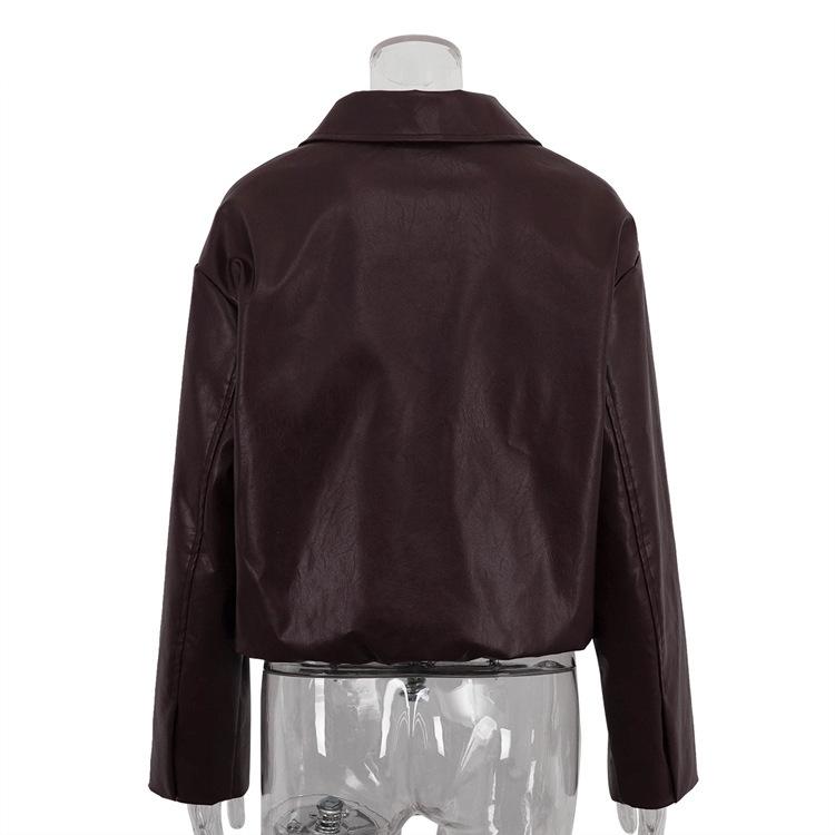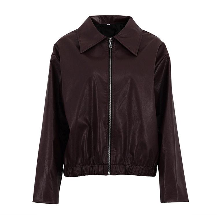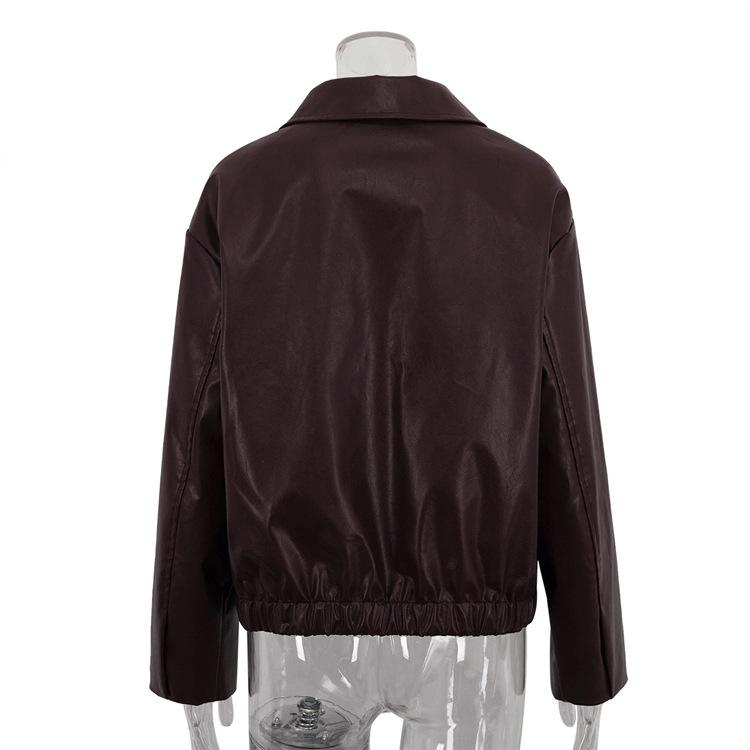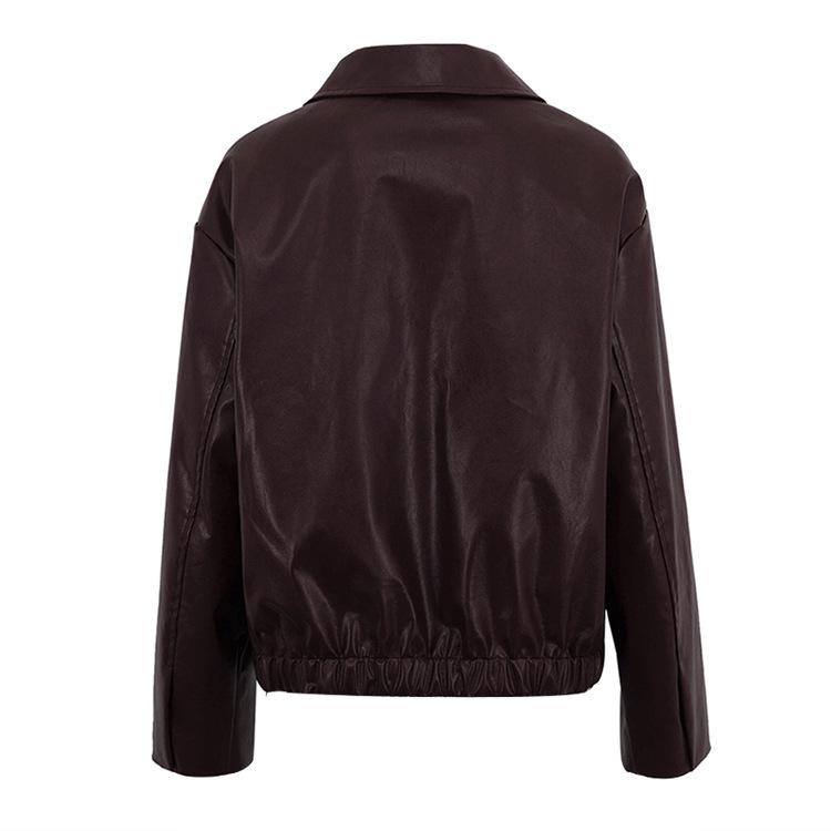 2025 Otoño/Invierno Europeo y Americano Nueva Chaqueta de Cuero de Motocicleta Moda de Alta Gama Ropa de Mujer Transfronteriza Abrigo Holgado