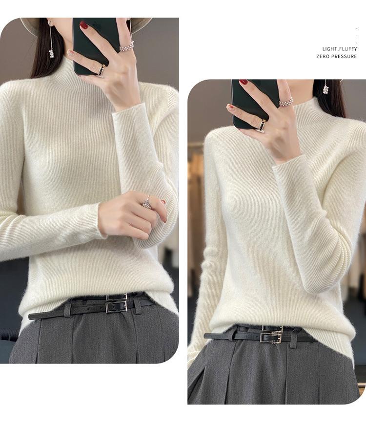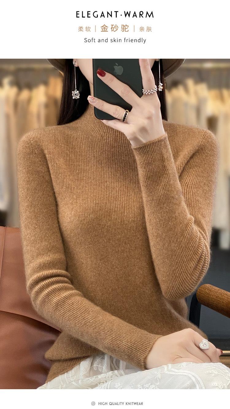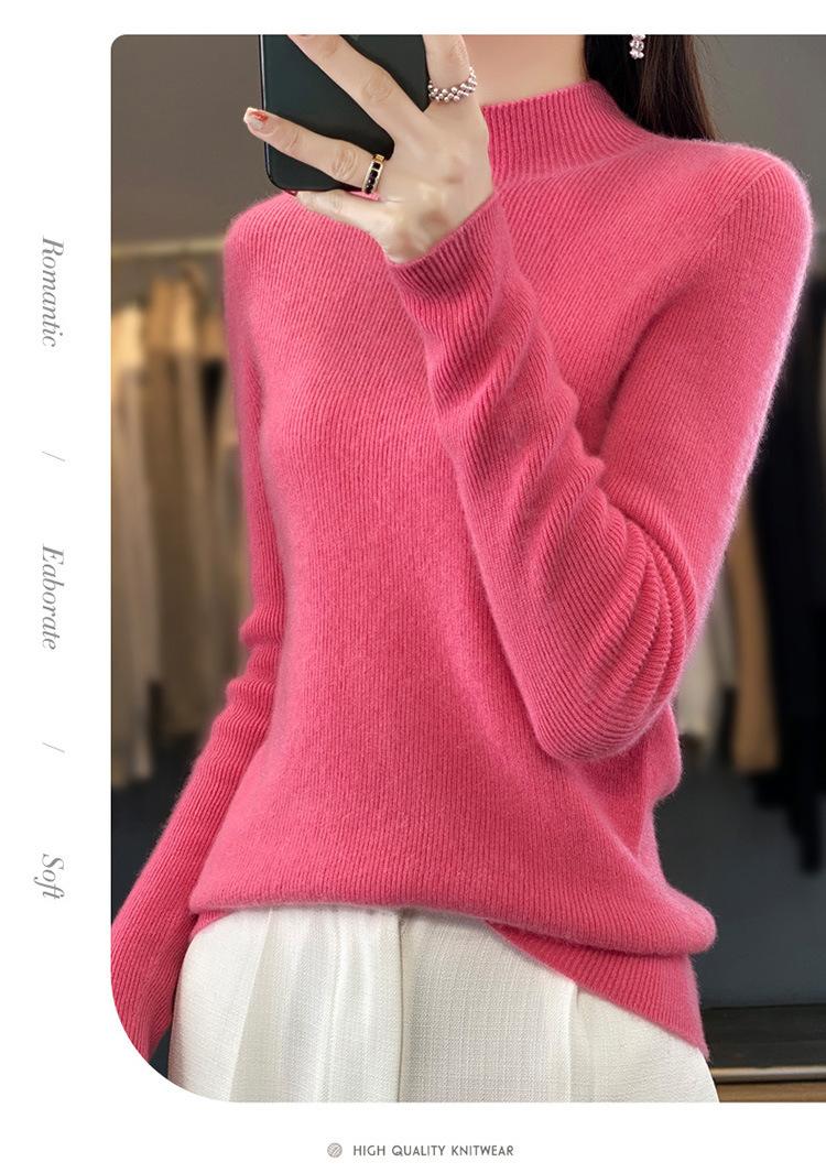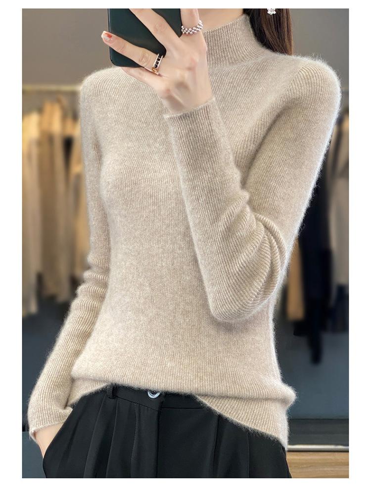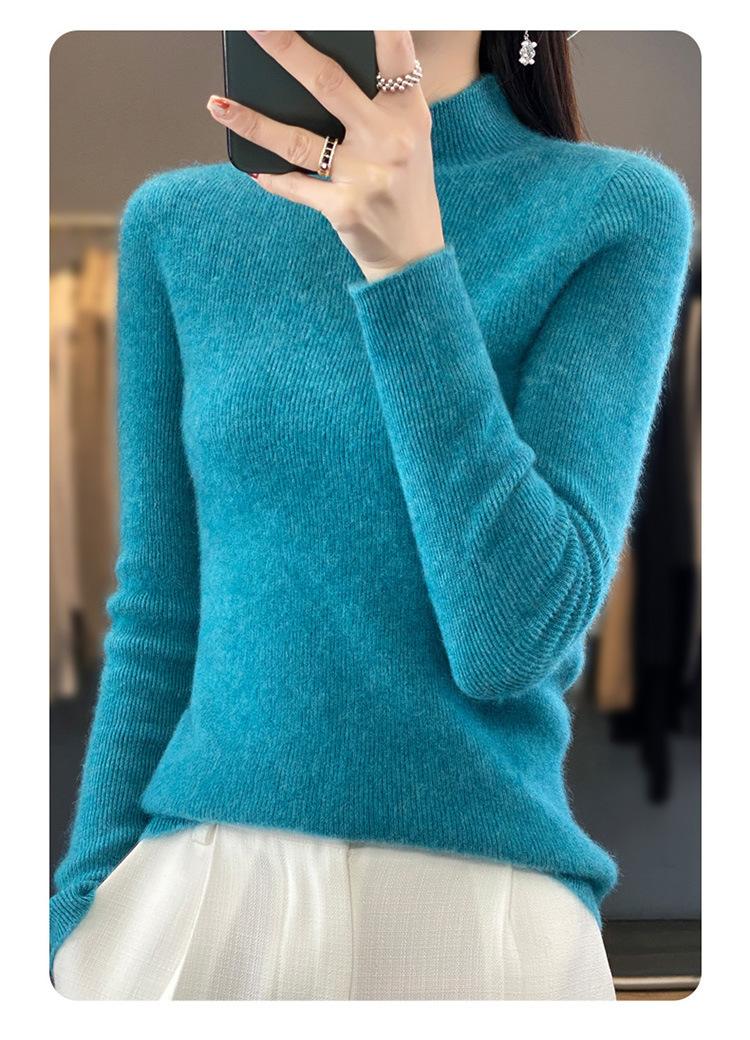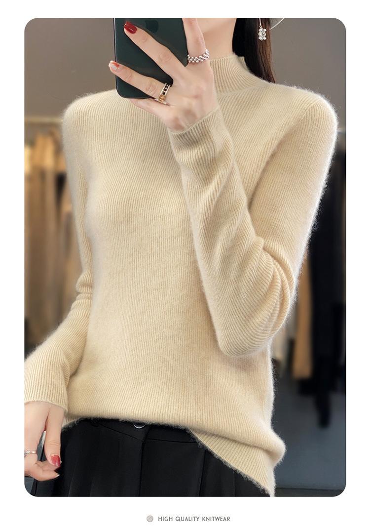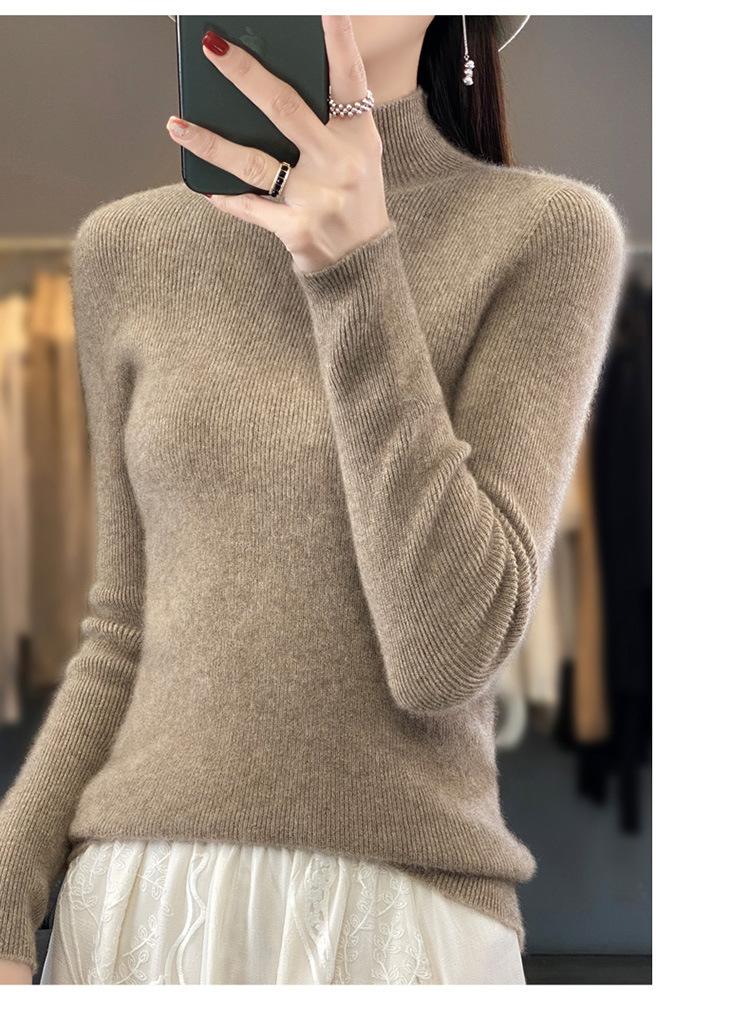 Suéter de punto de cuello semi alto Andy Velvet de una línea transfronterizo listo para usar para mujer Otoño e Invierno 2025 Nuevo estilo Camiseta base Suéter Top para mujer
