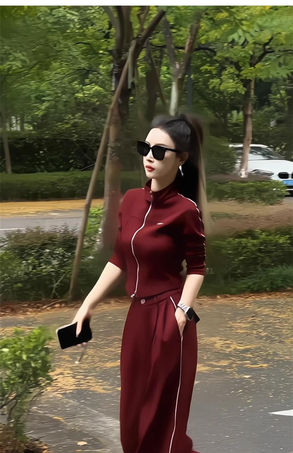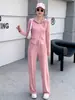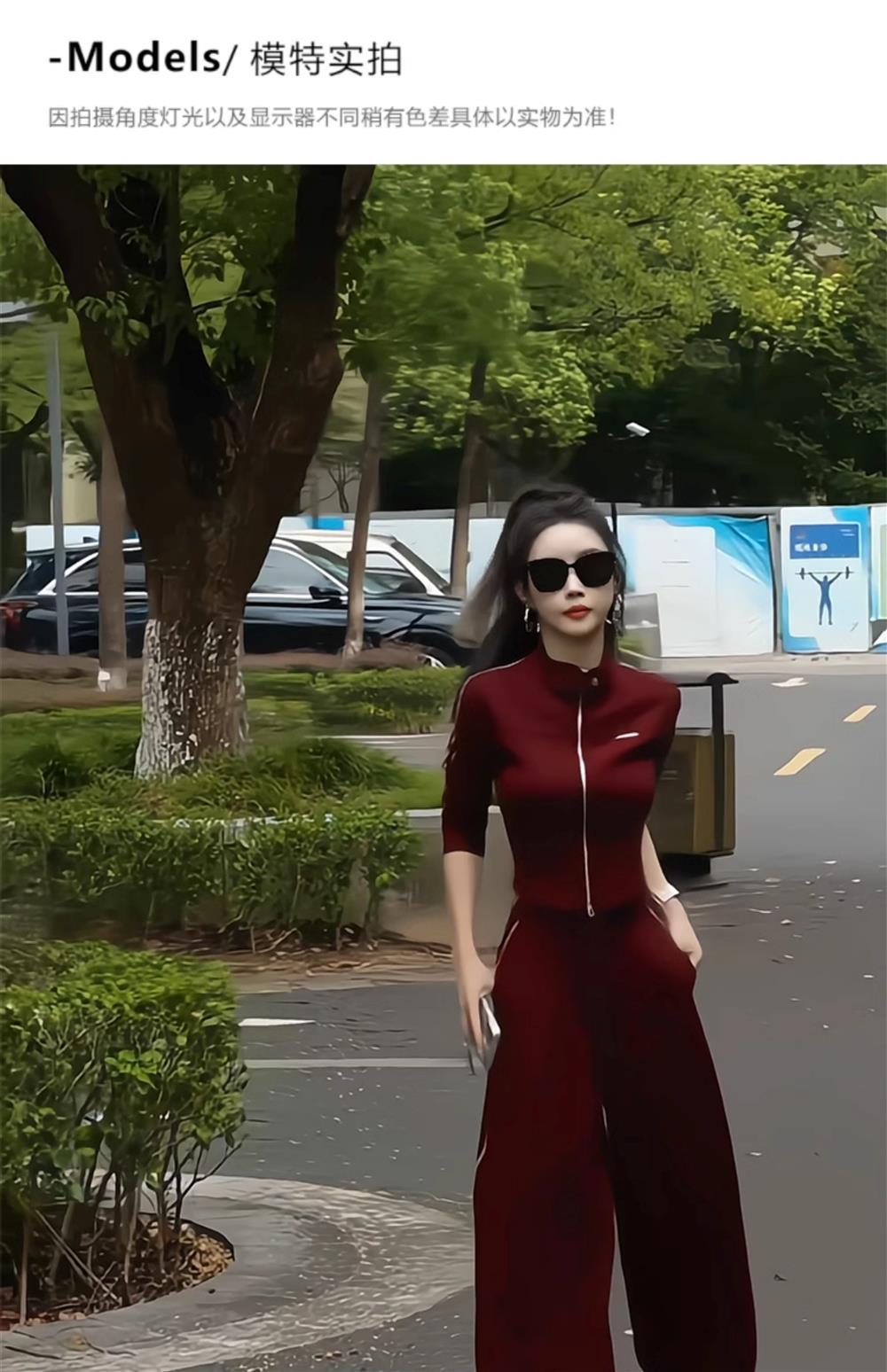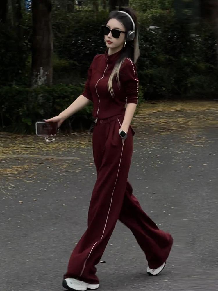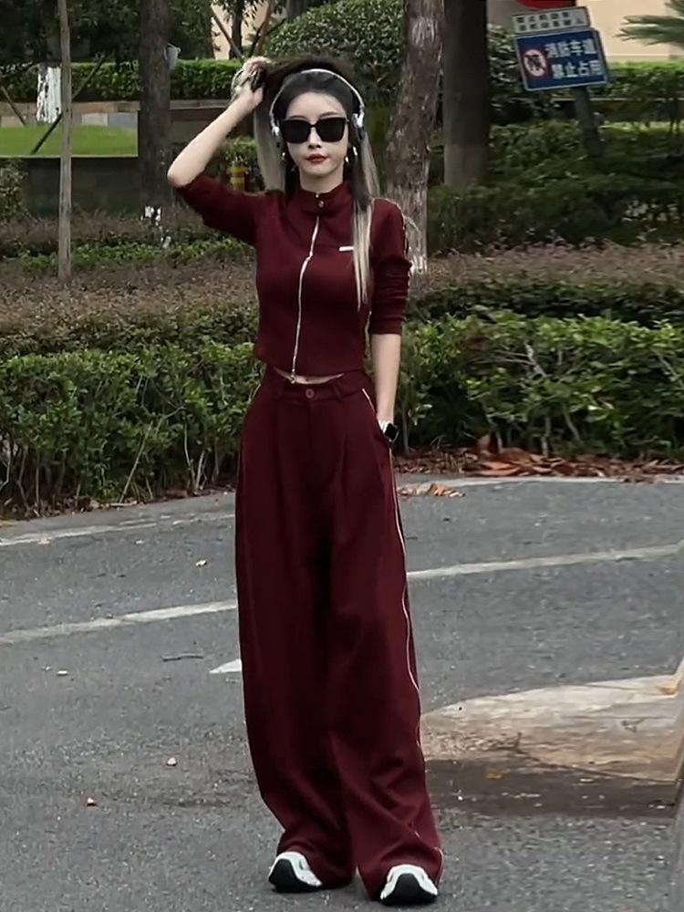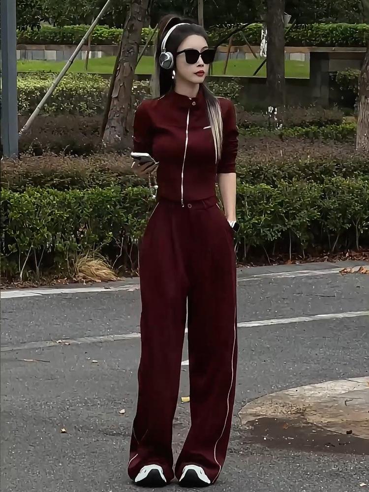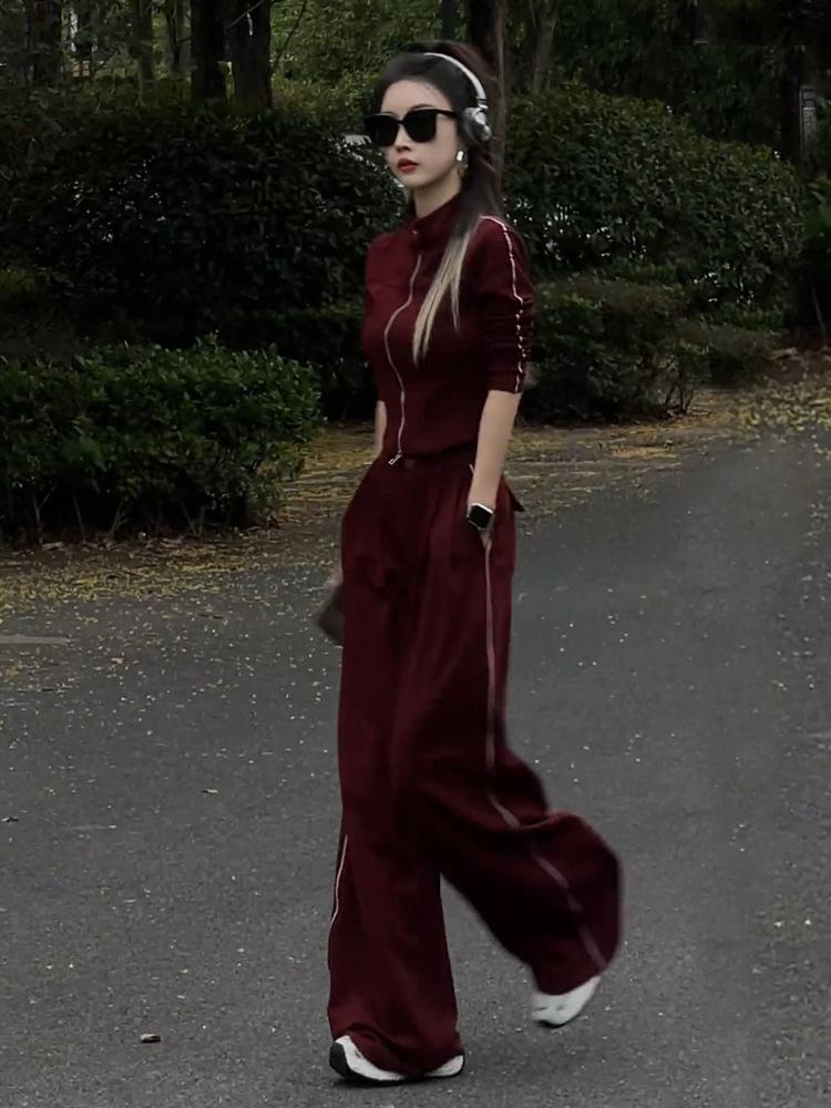 Conjunto de Ropa Deportiva de Marca de Alta Gama para Primavera y Otoño para Mujer 2025 Nueva Moda Pantalones de Pierna Ancha Dos Piezas Ropa Deportiva Casual