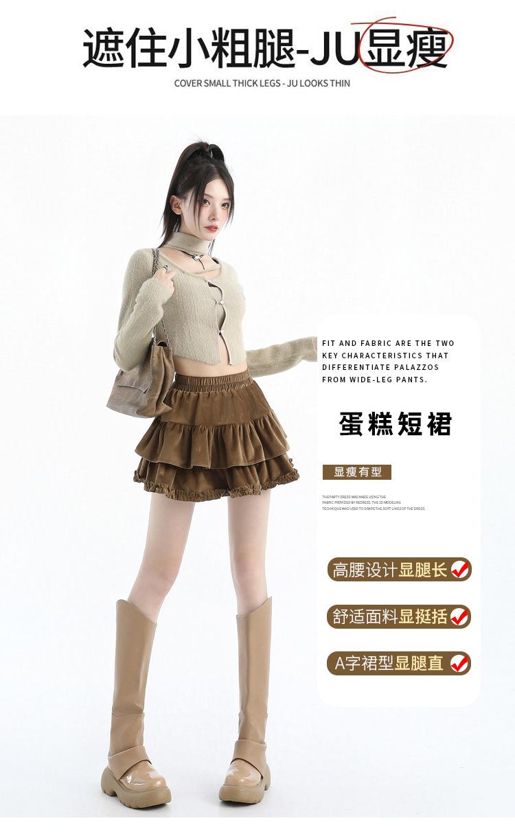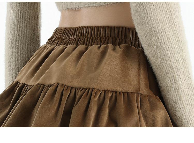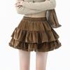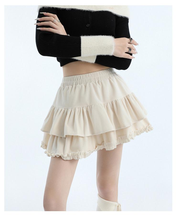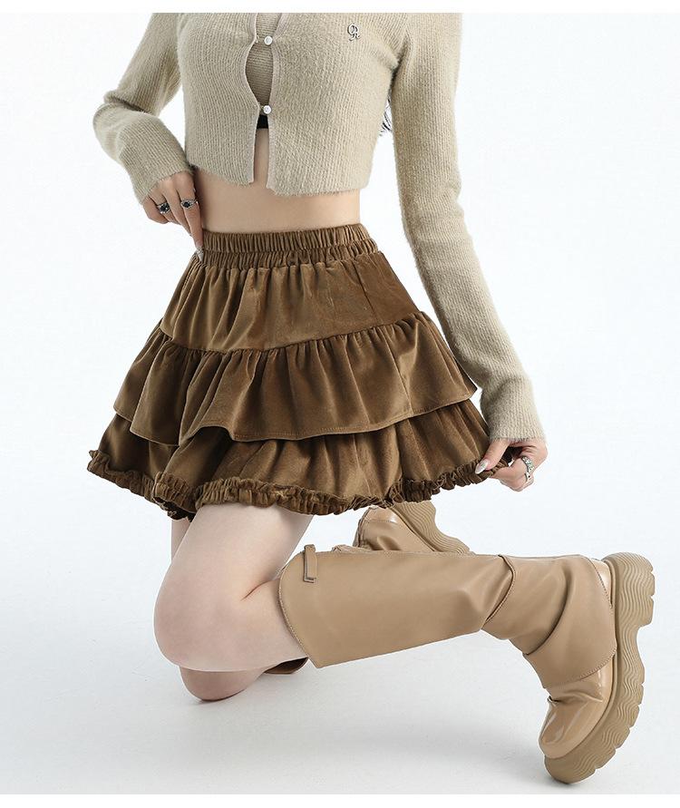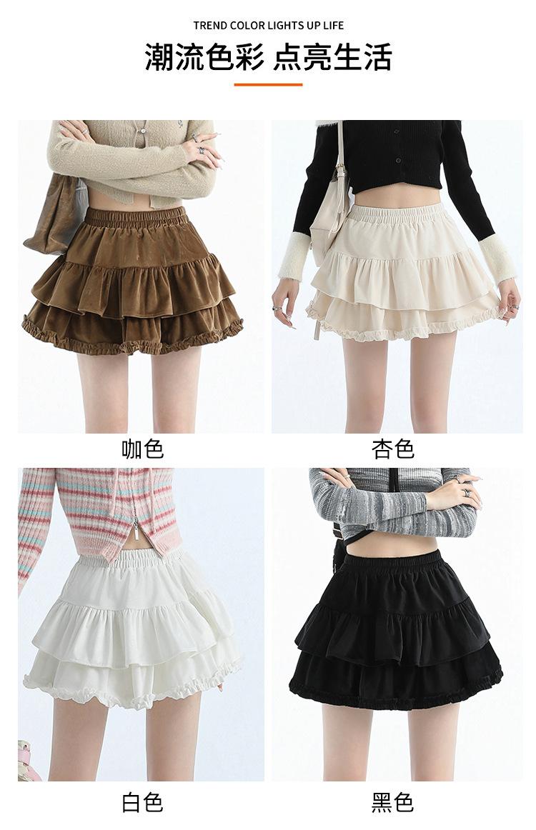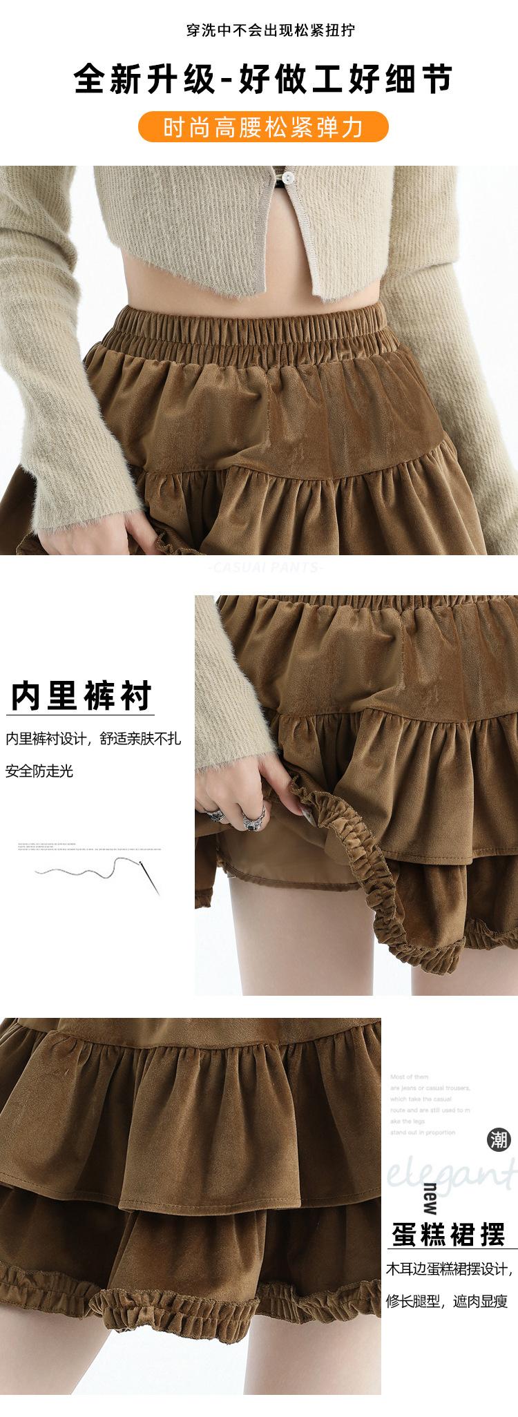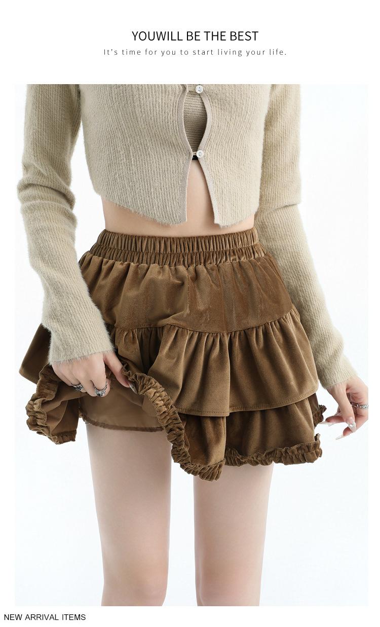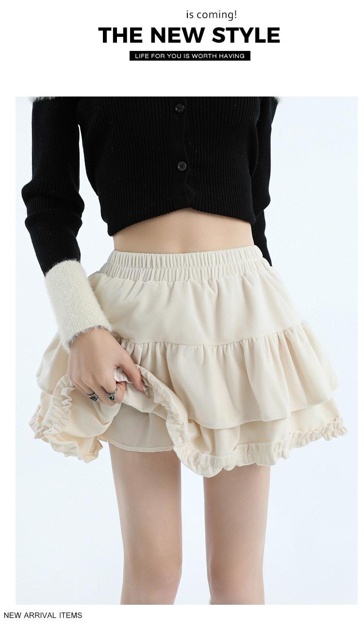 Foto real en stock Falda de pastel falda corta media falda otoño e invierno para mujer cintura alta línea A abullonada culottes falda pequeña color albaricoque