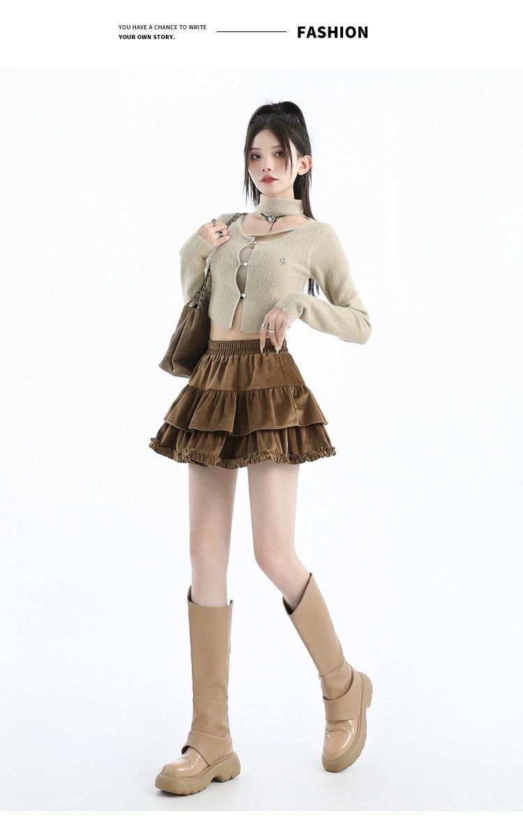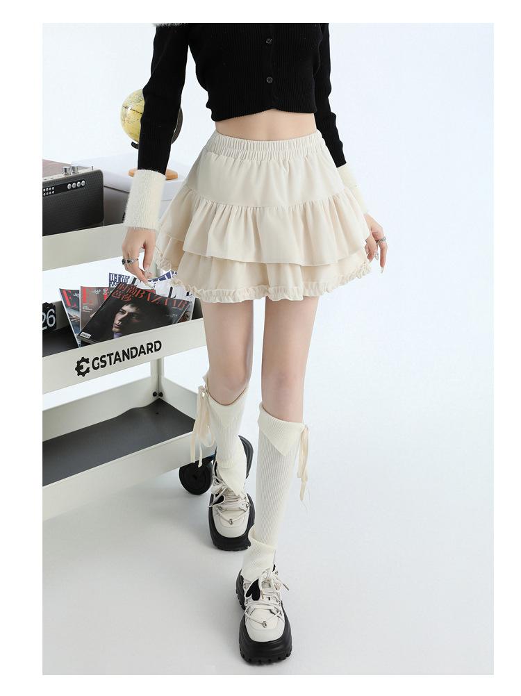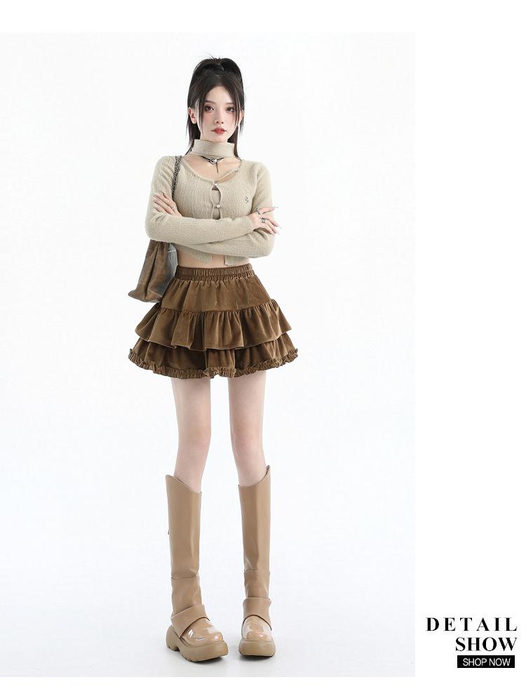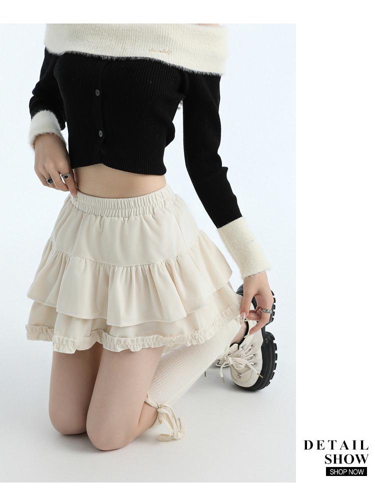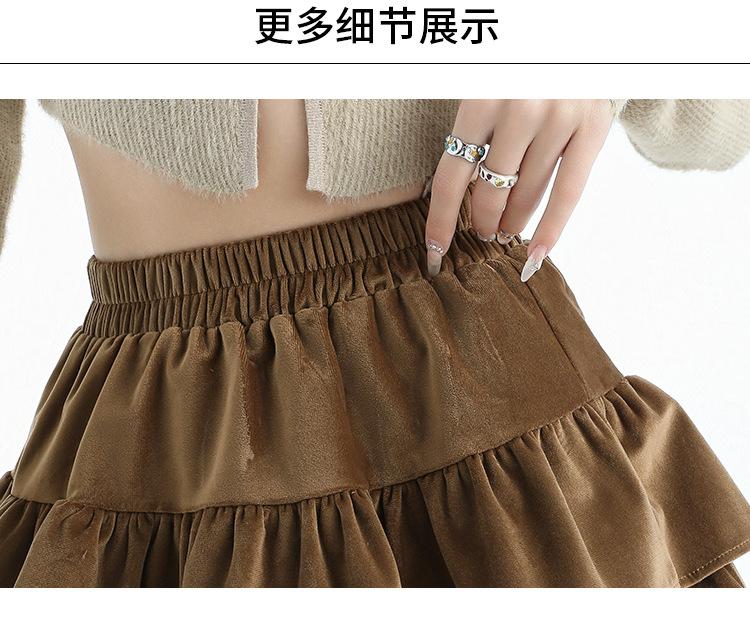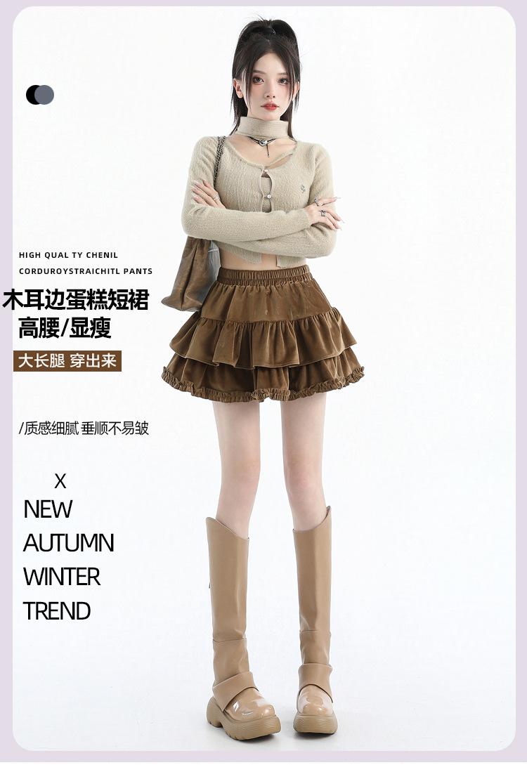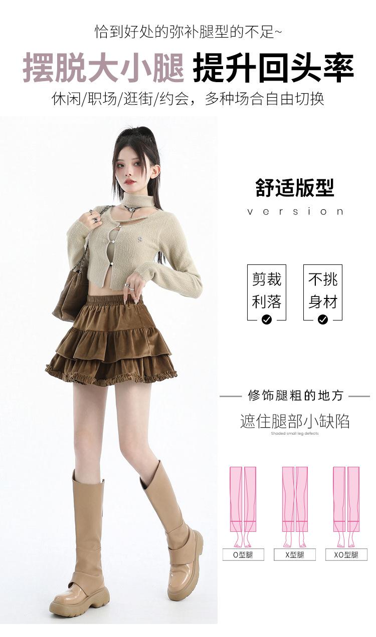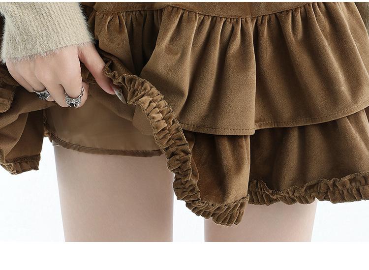 Foto real en stock Falda de pastel falda corta media falda otoño e invierno para mujer cintura alta línea A abullonada culottes falda pequeña color albaricoque