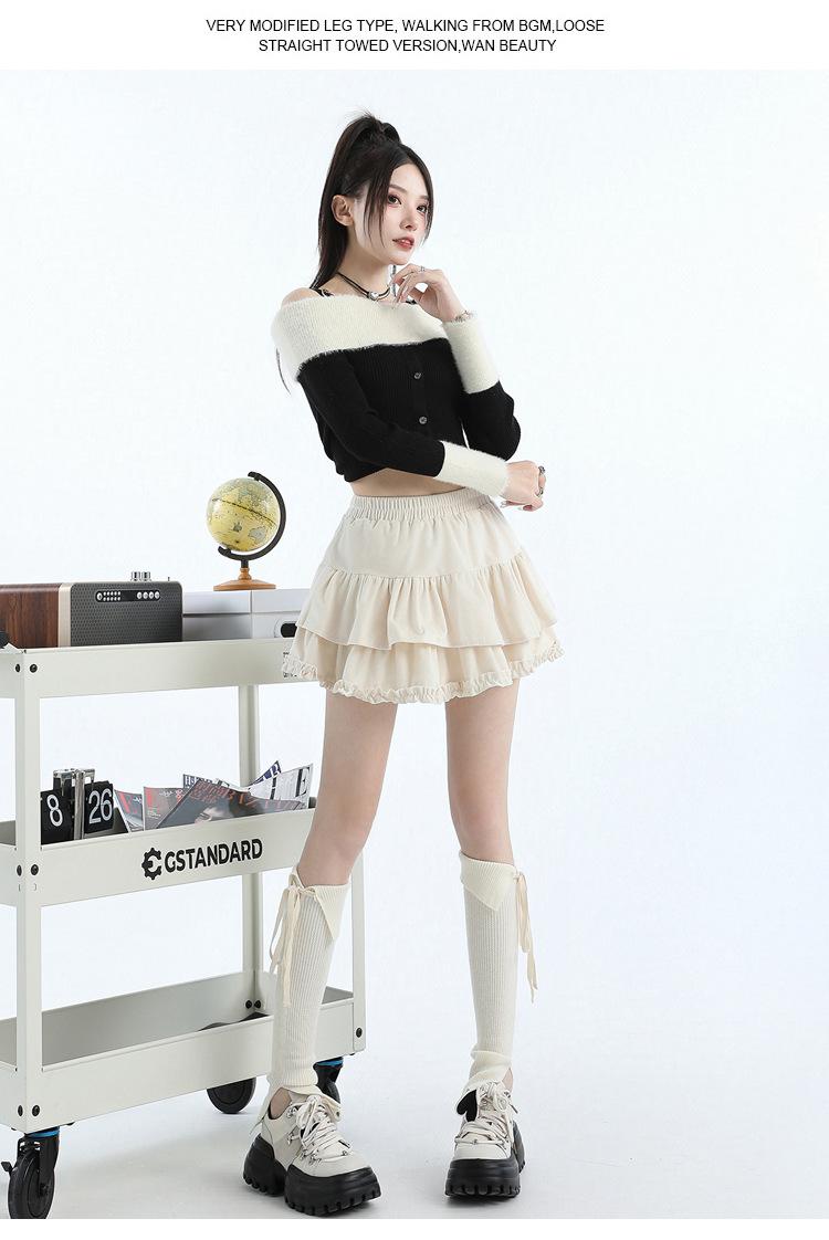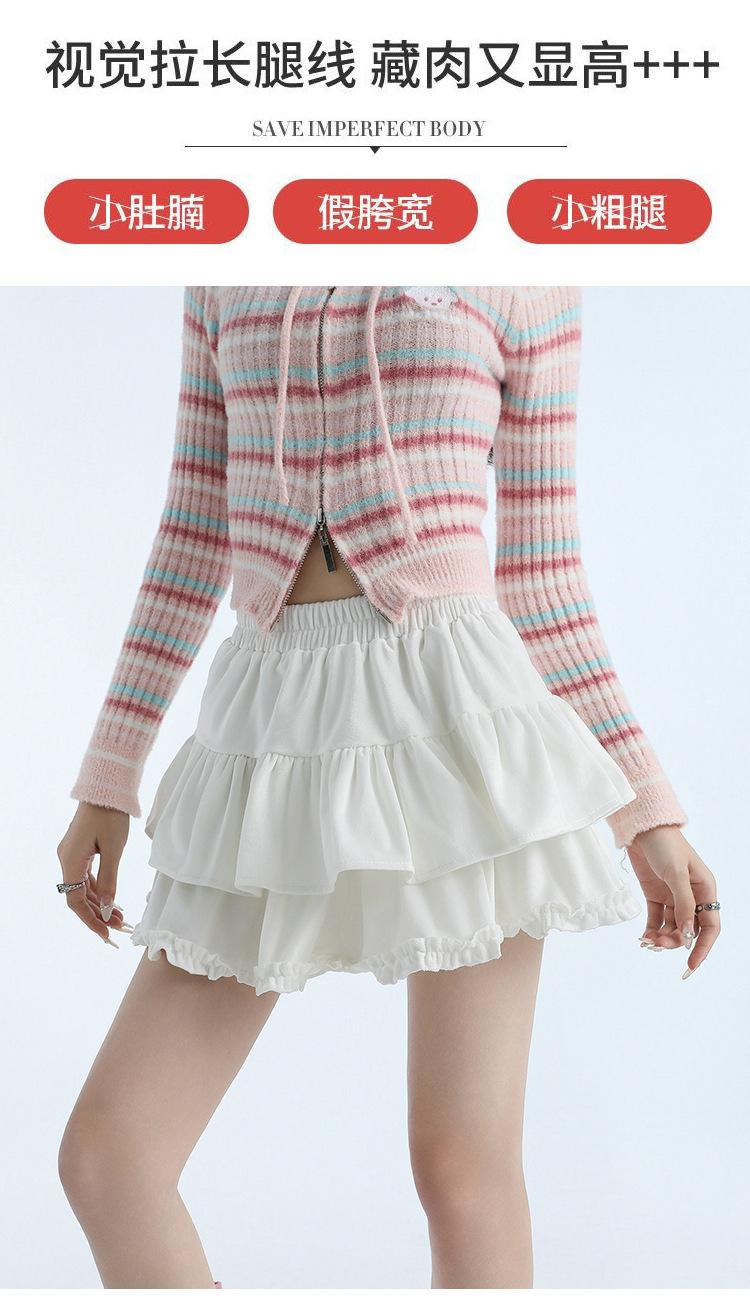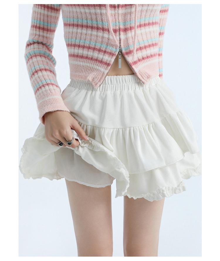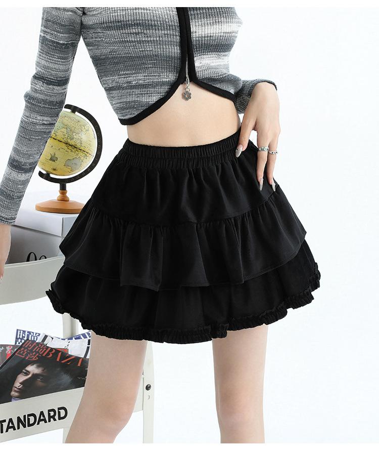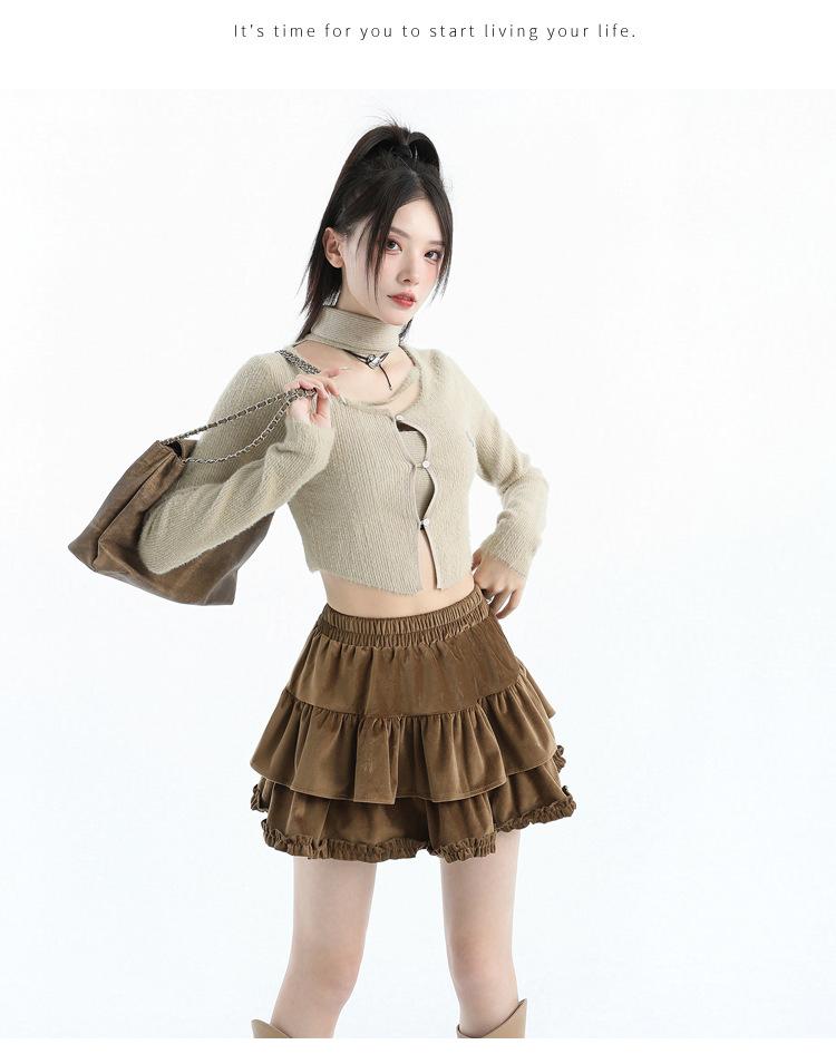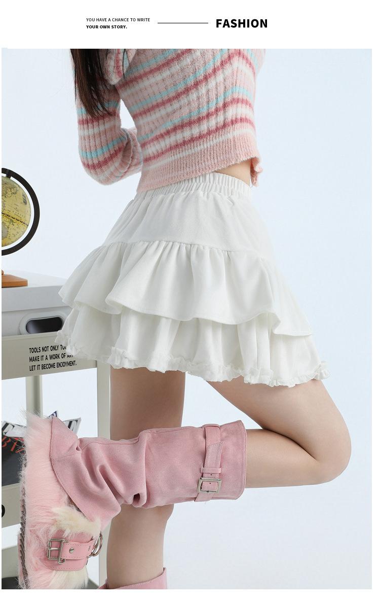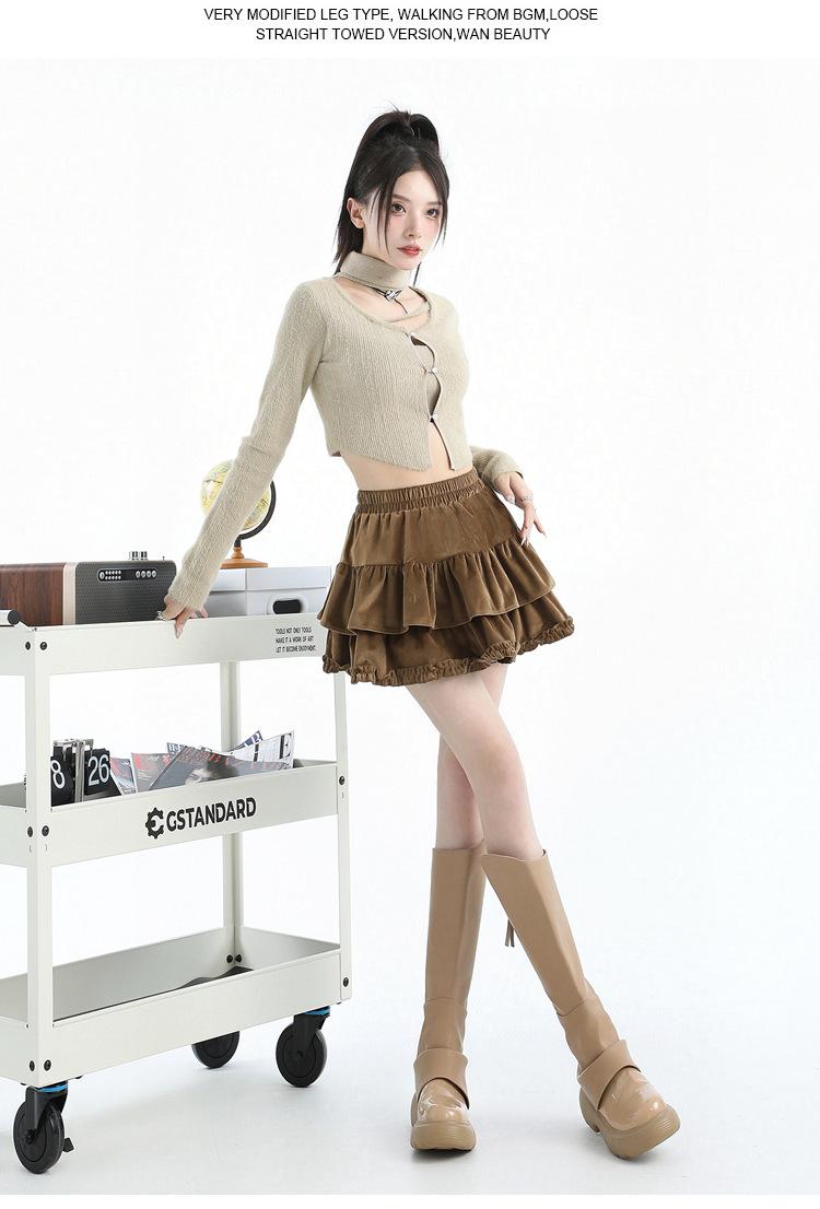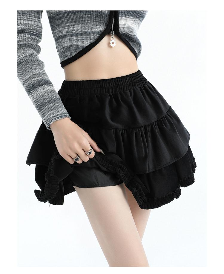 Foto real en stock Falda de pastel falda corta media falda otoño e invierno para mujer cintura alta línea A abullonada culottes falda pequeña color albaricoque