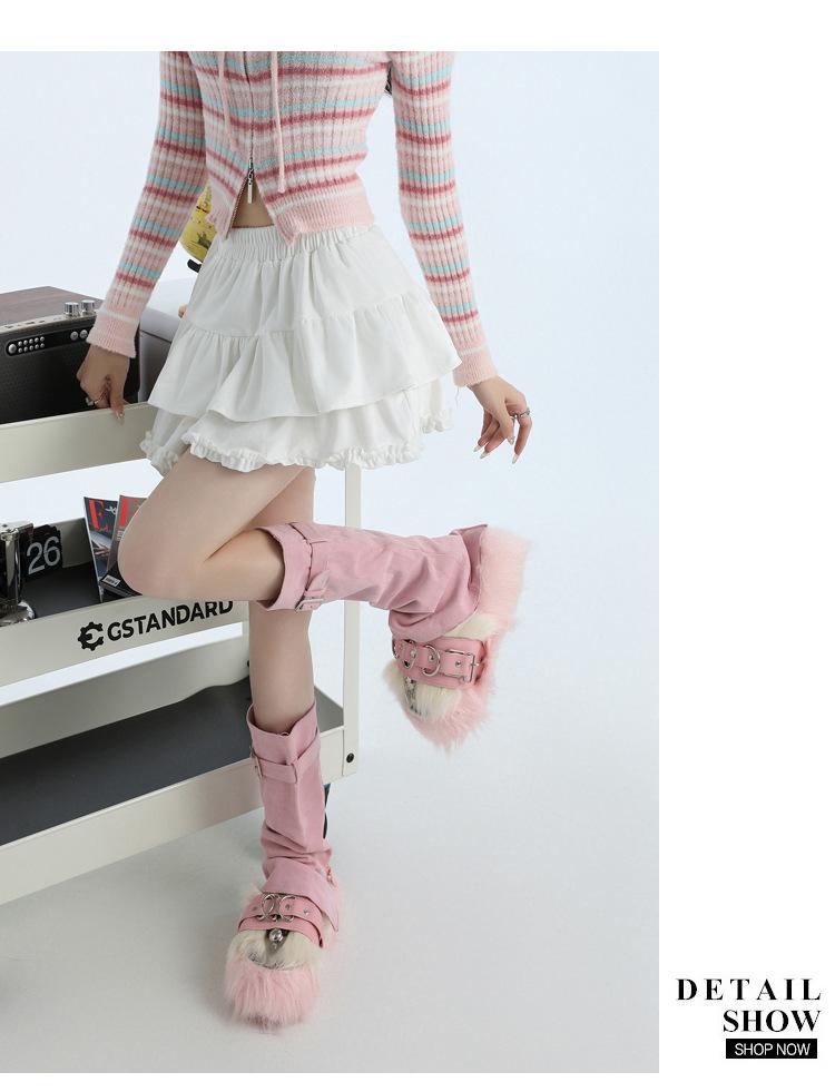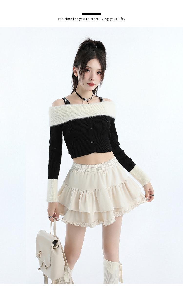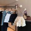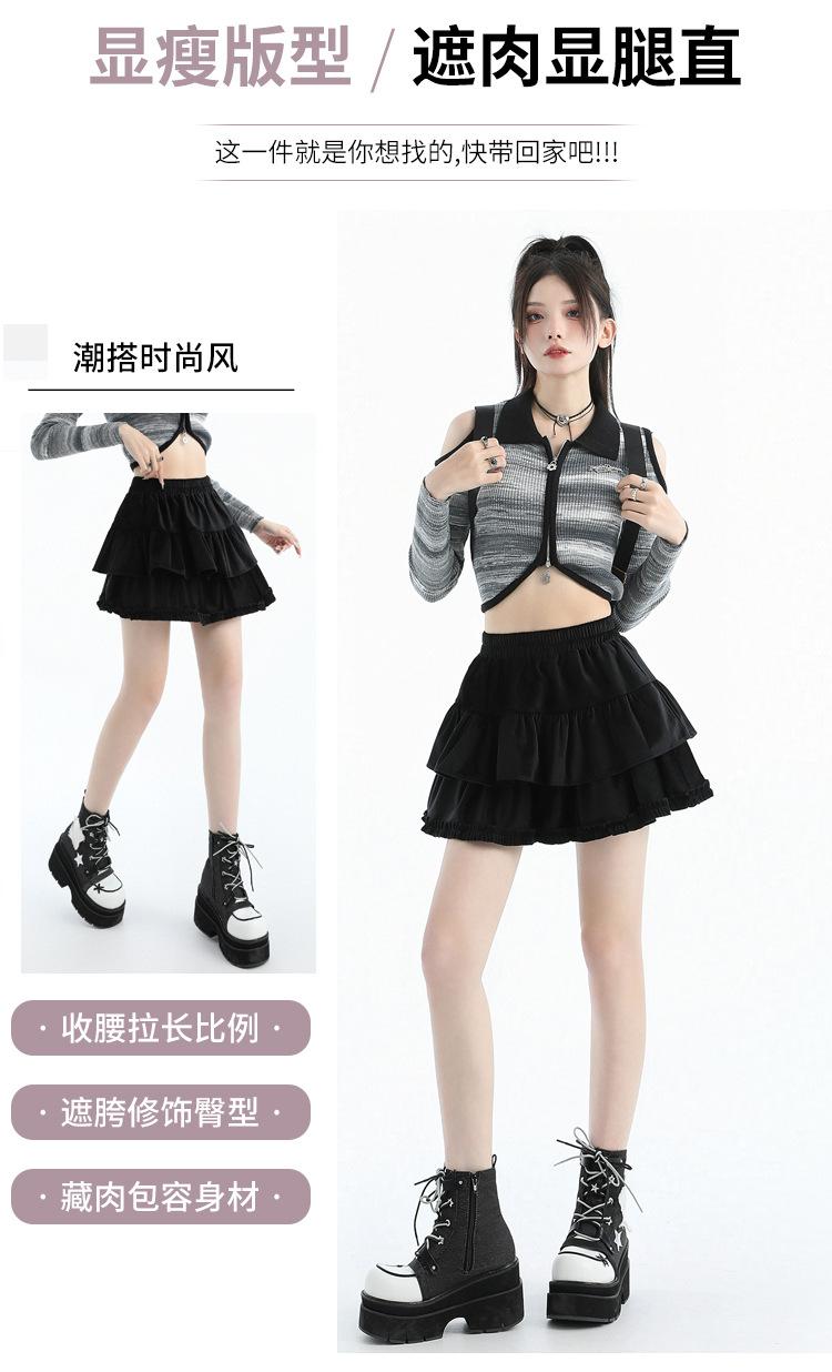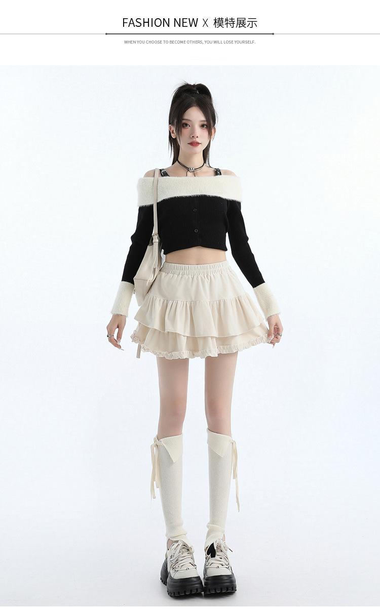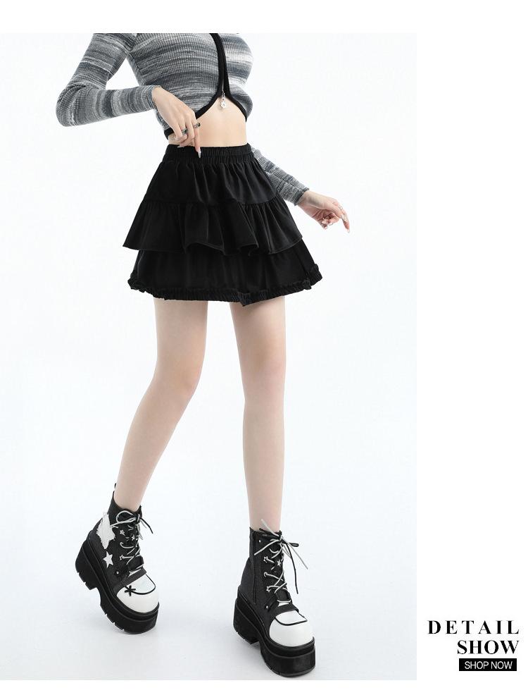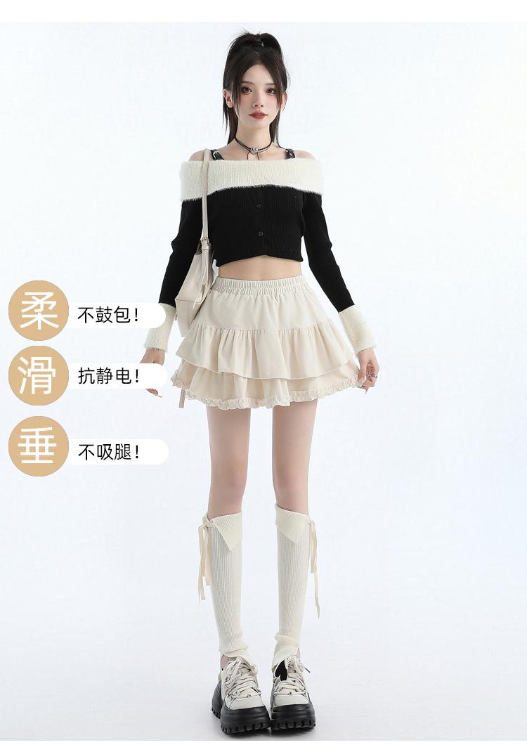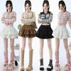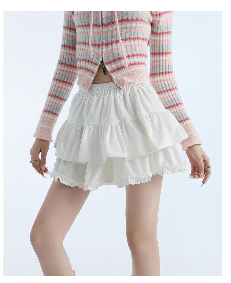 Foto real en stock Falda de pastel falda corta media falda otoño e invierno para mujer cintura alta línea A abullonada culottes falda pequeña color albaricoque
