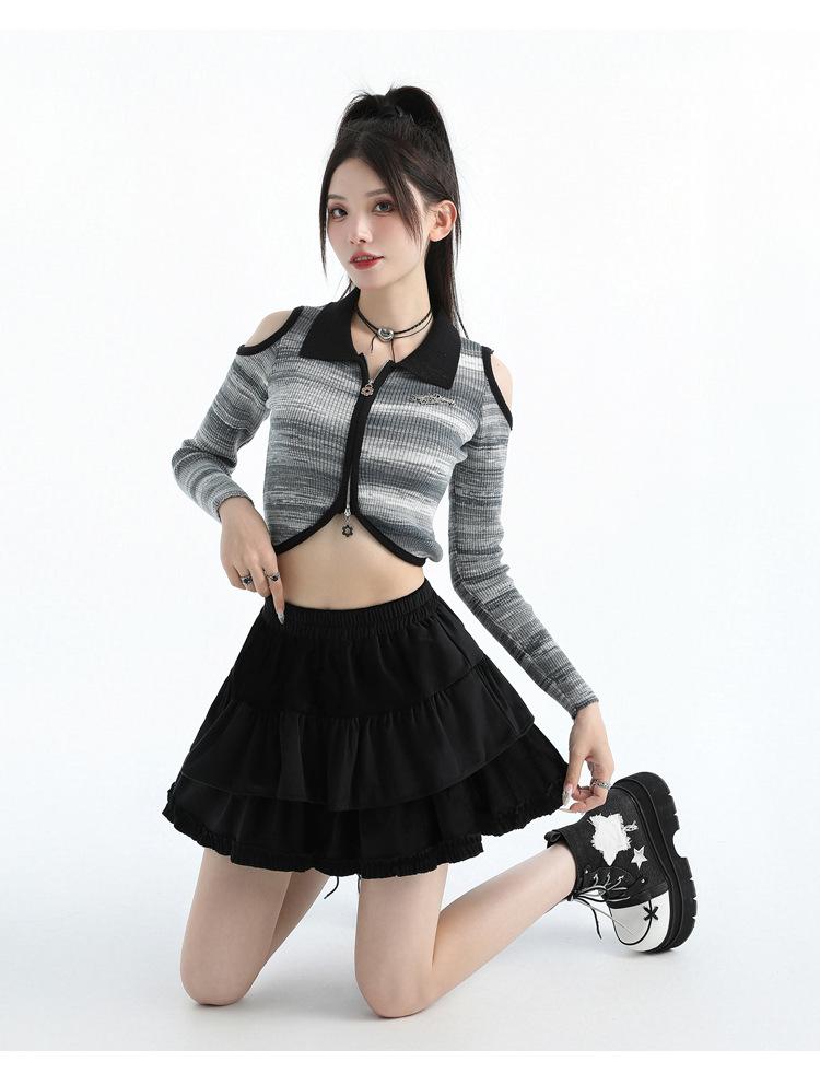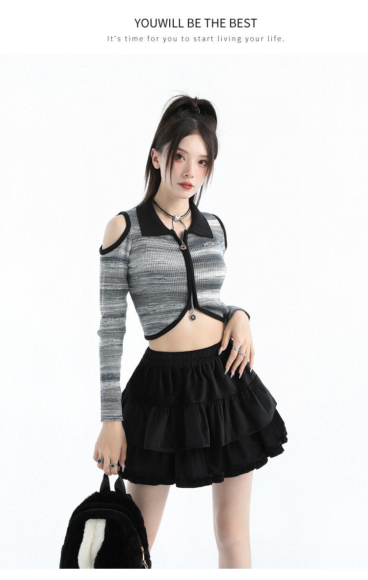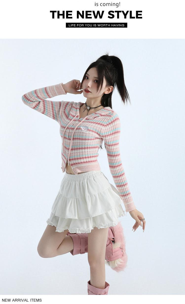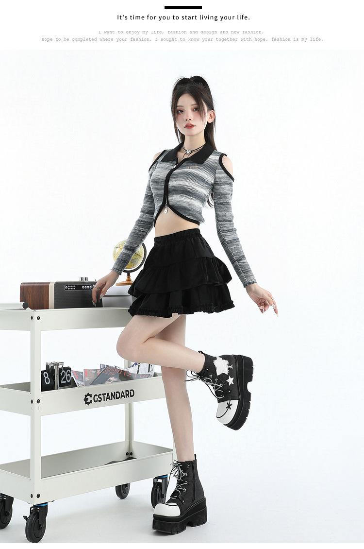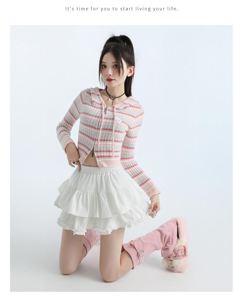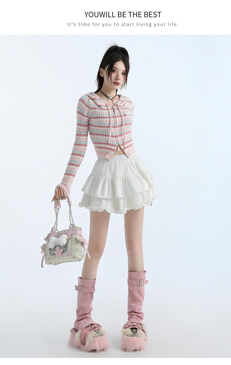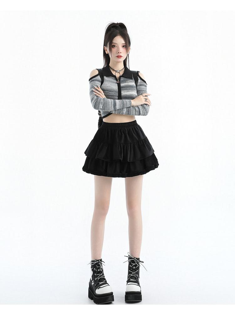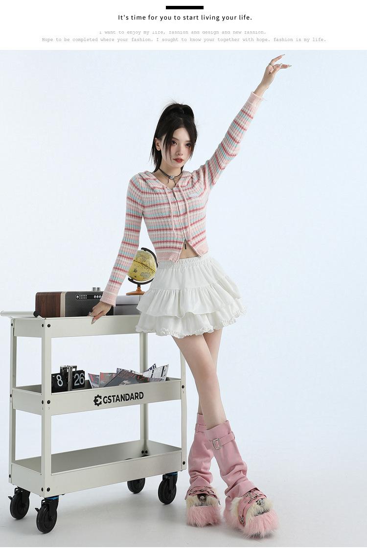 Foto real en stock Falda de pastel falda corta media falda otoño e invierno para mujer cintura alta línea A abullonada culottes falda pequeña color albaricoque