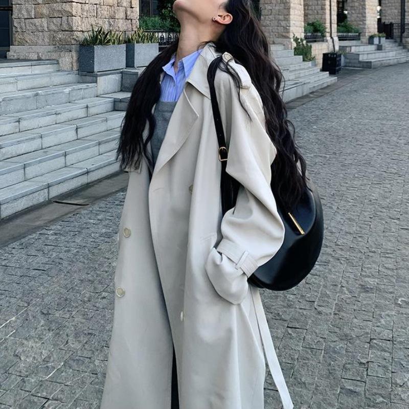 Moda 2025 Nuevo Abrigo Gabardina Chaqueta Mujer Primavera Otoño Estilo Coreano Temperamento High-End Suelto Versátil Largo Medio