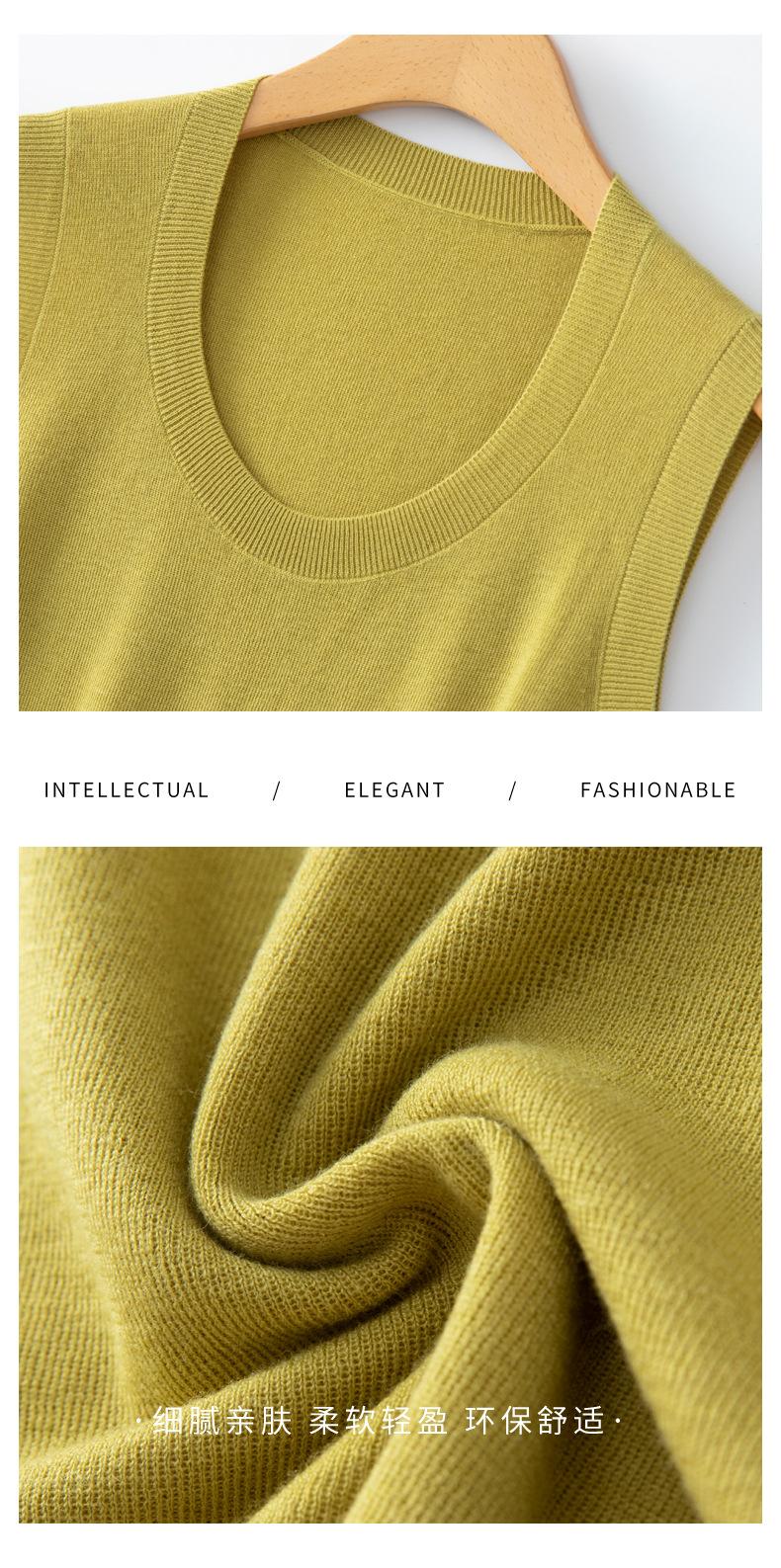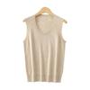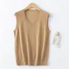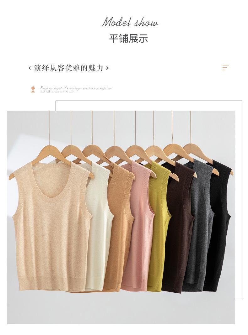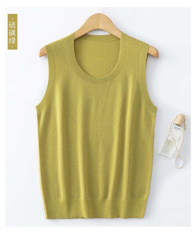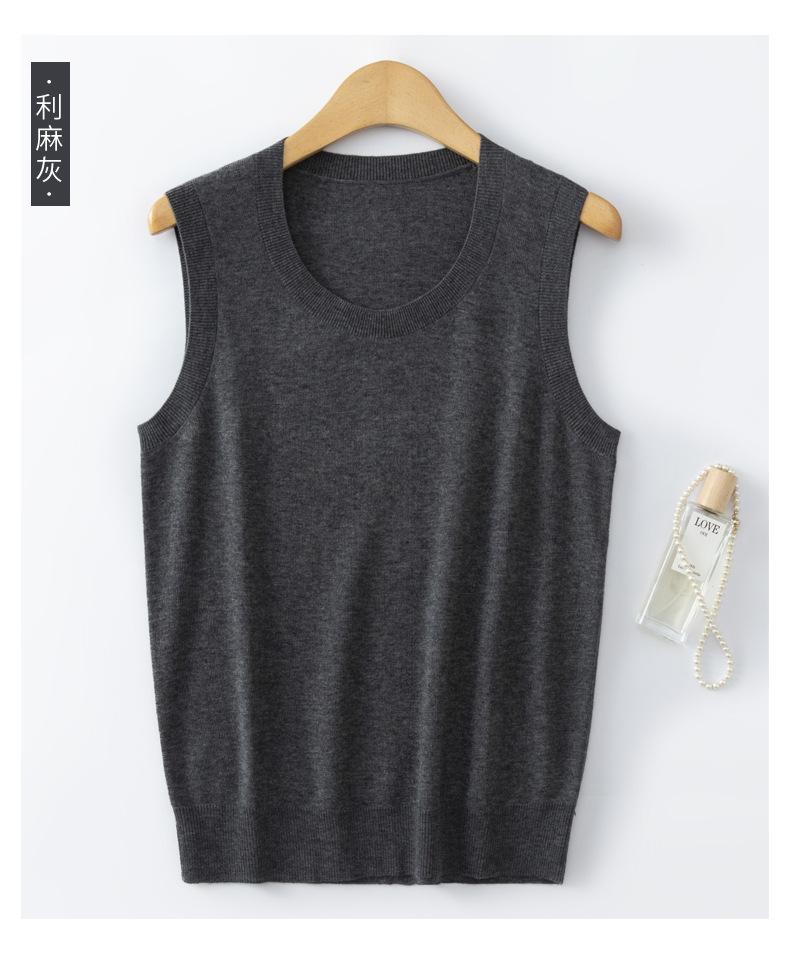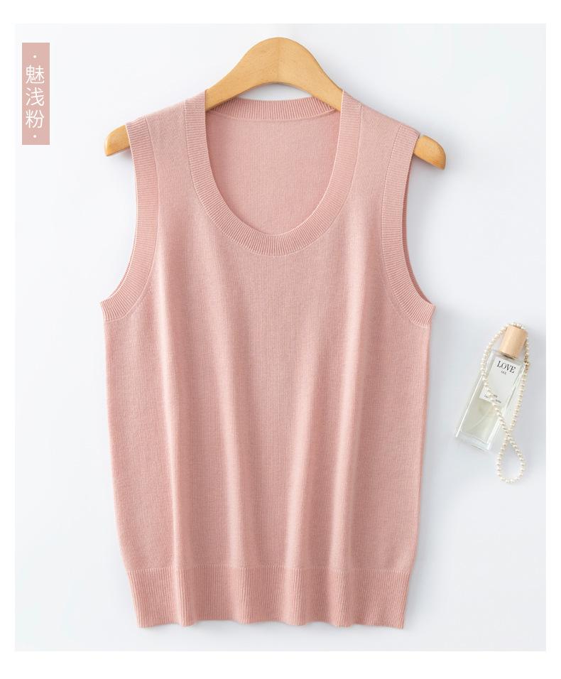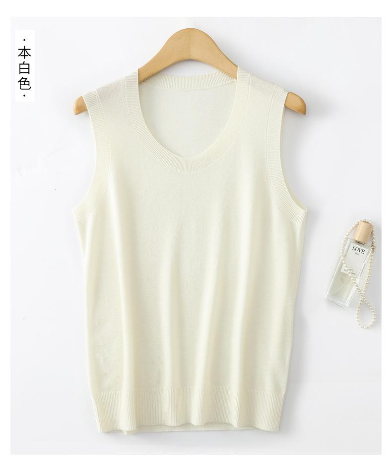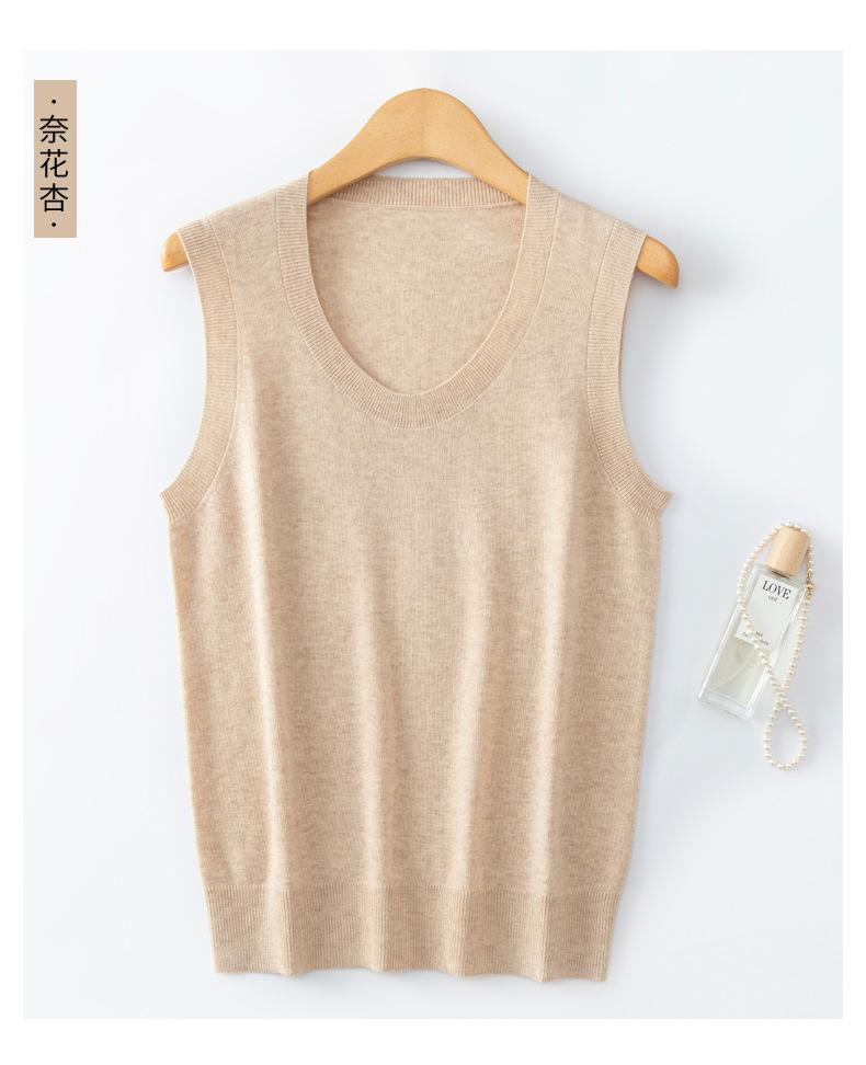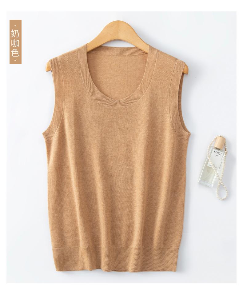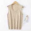 Chaleco de punto de lana peinada con cuello en U grande, color sólido, sin mangas, suelto, base de camisa, 25 años, primavera y verano