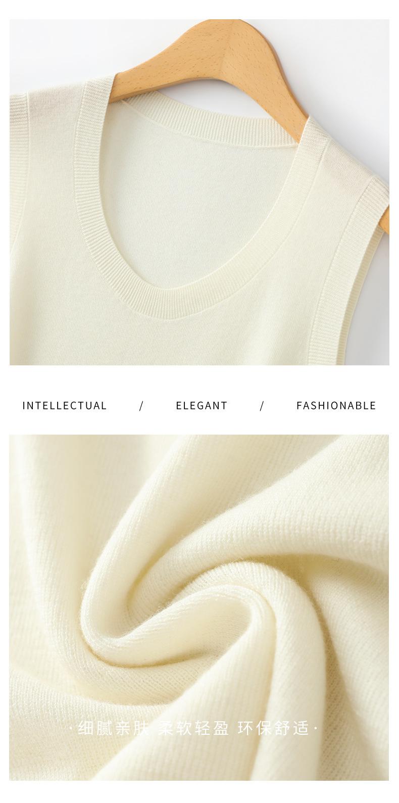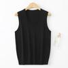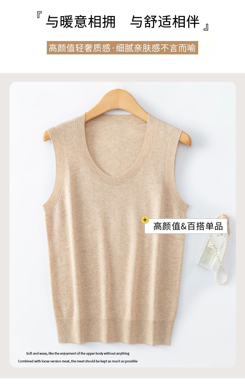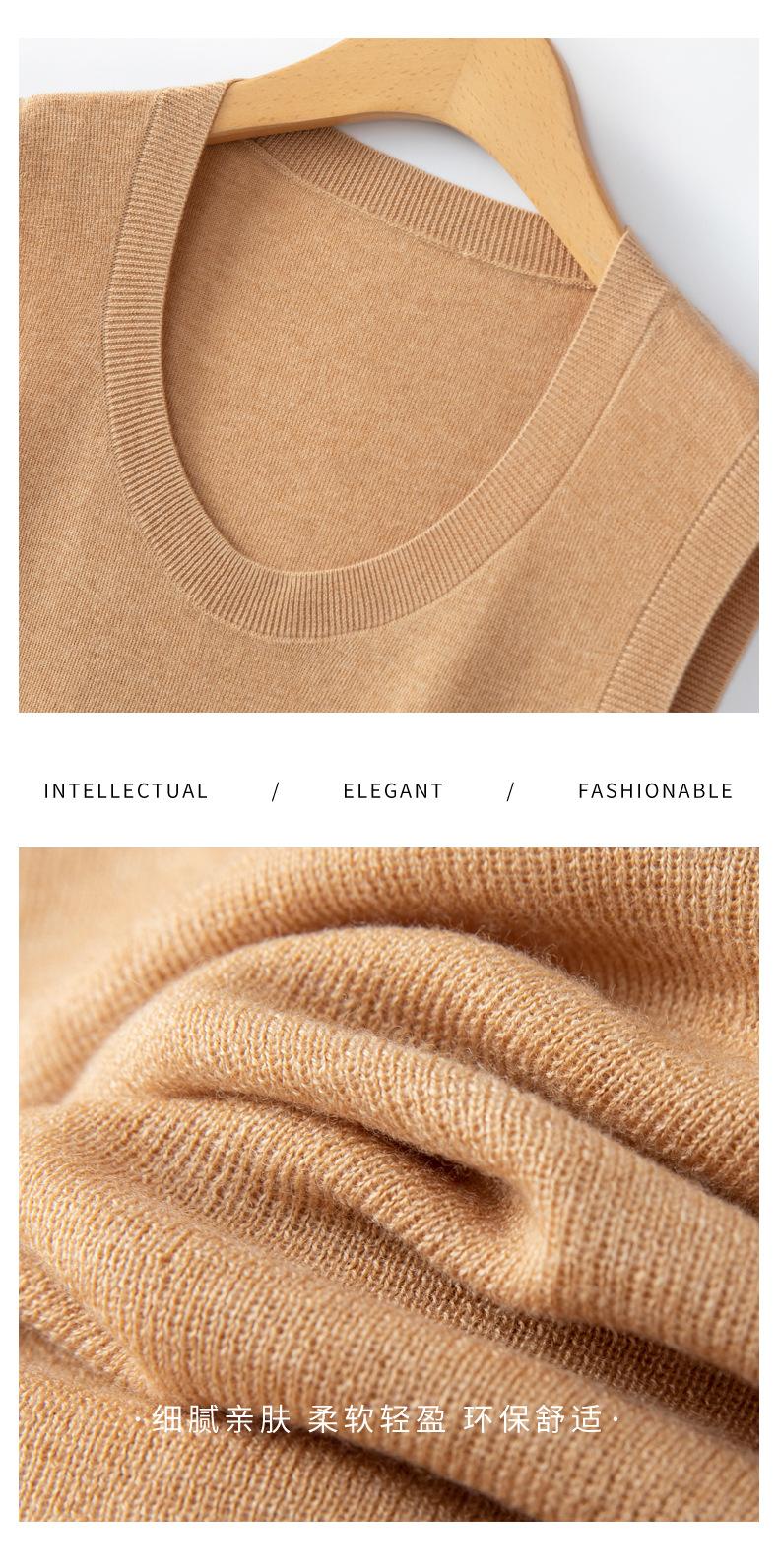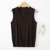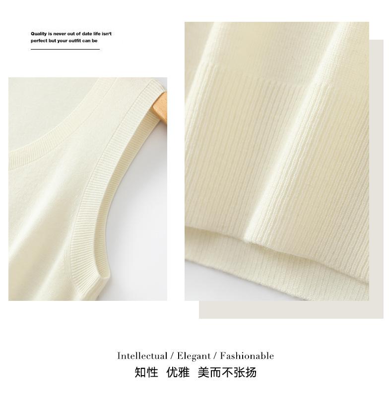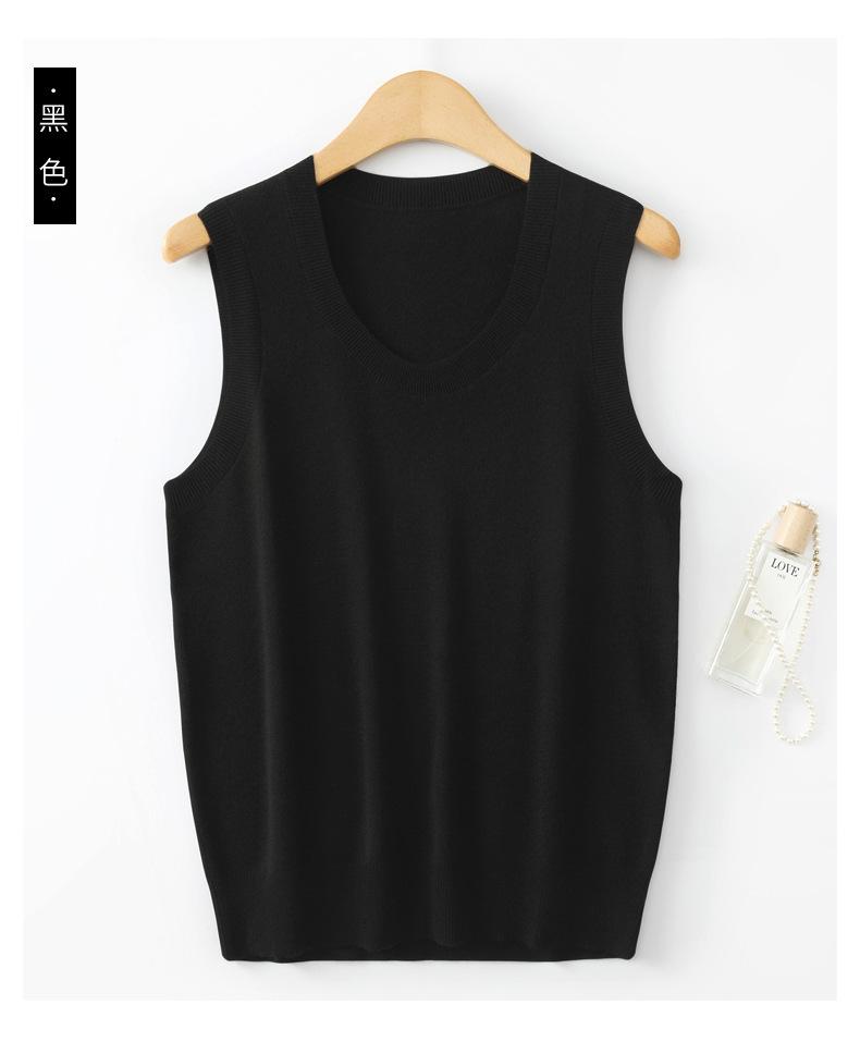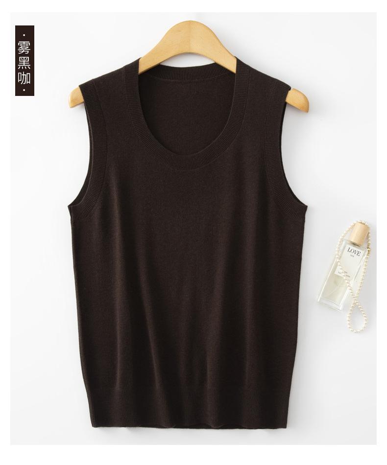 Chaleco de punto de lana peinada con cuello en U grande, color sólido, sin mangas, suelto, base de camisa, 25 años, primavera y verano