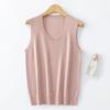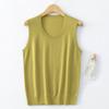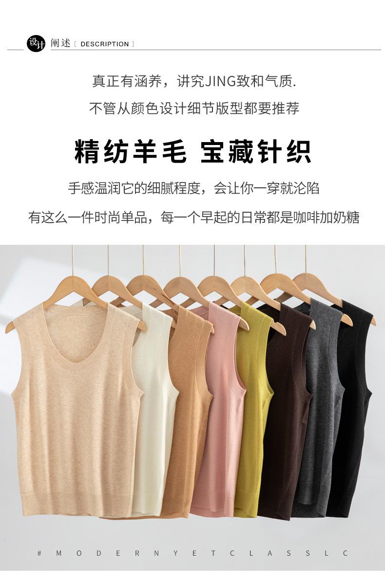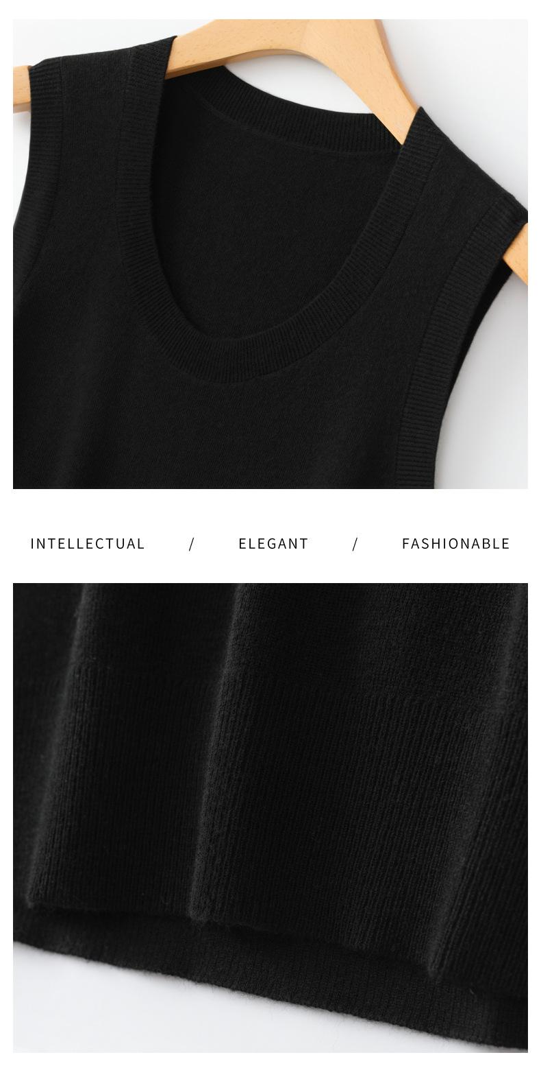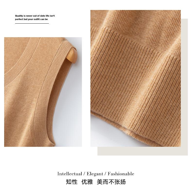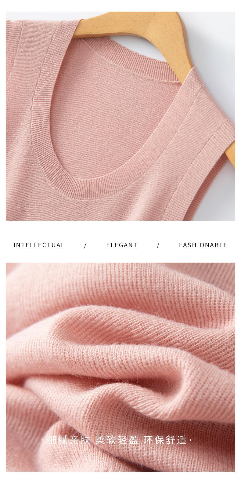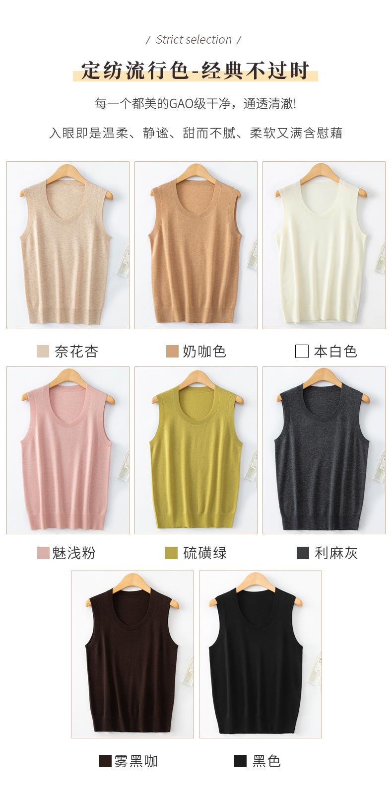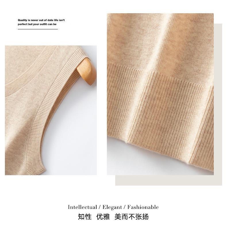 Chaleco de punto de lana peinada con cuello en U grande, color sólido, sin mangas, suelto, base de camisa, 25 años, primavera y verano
