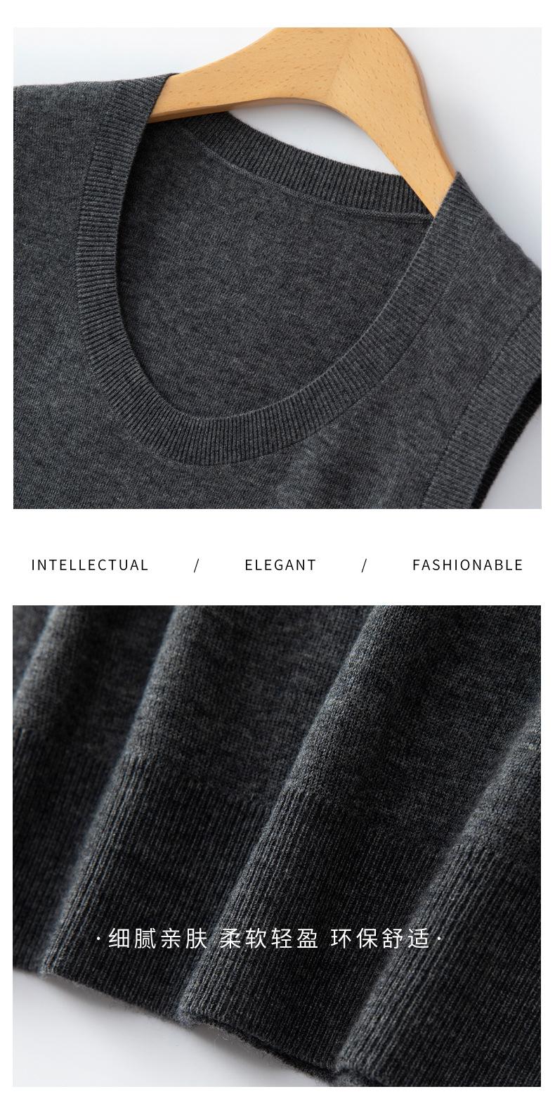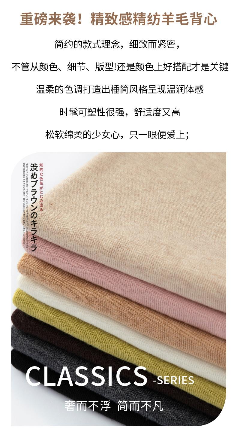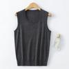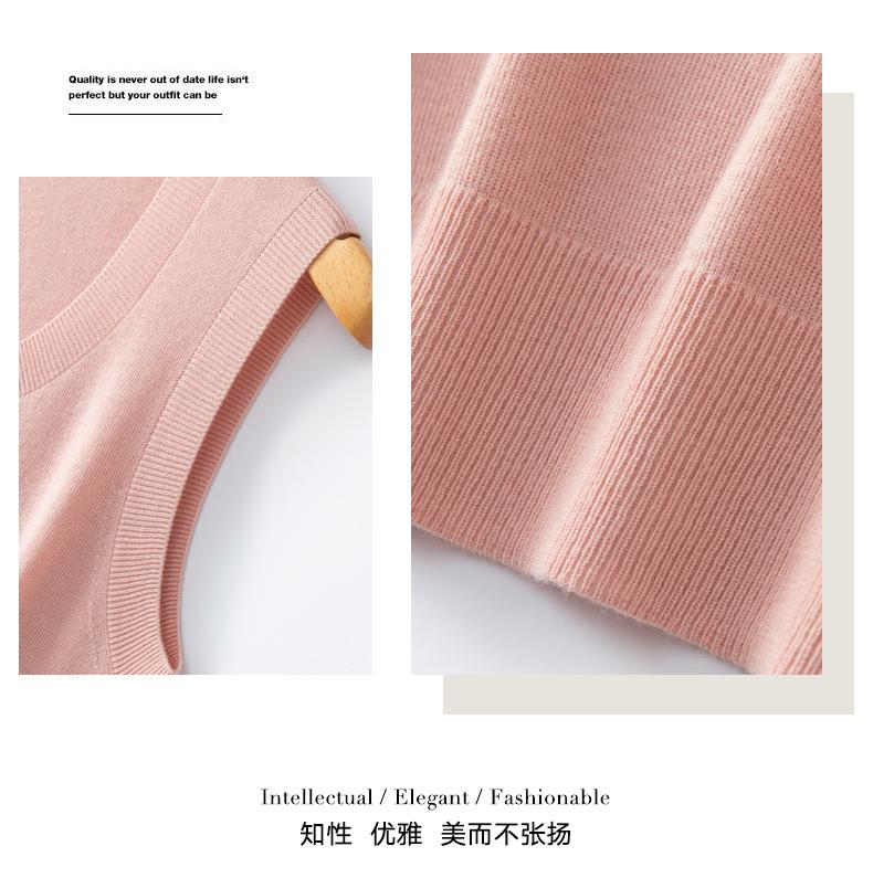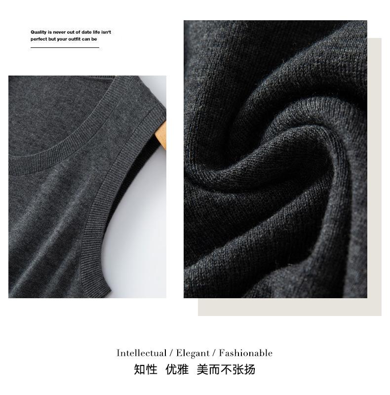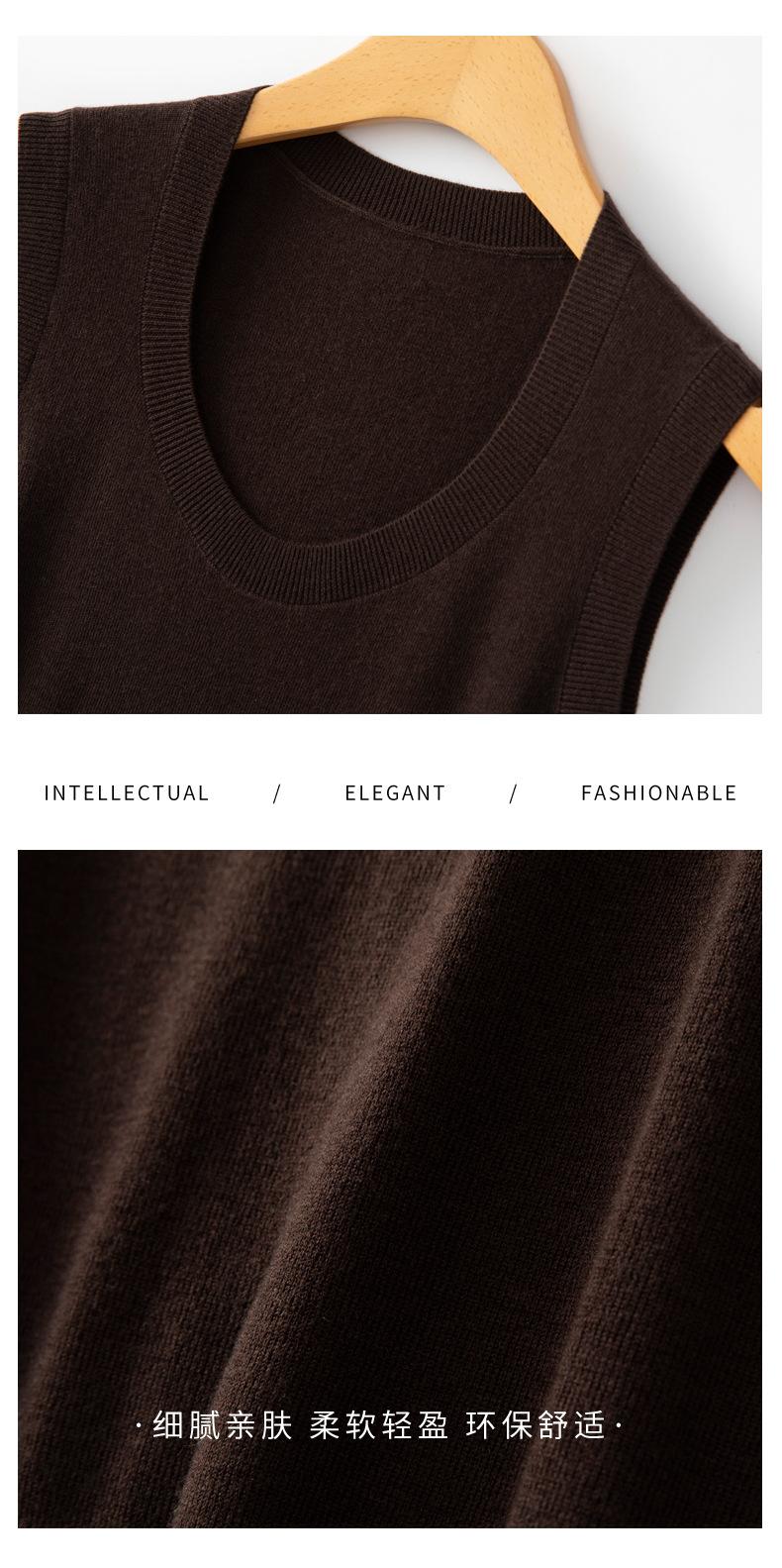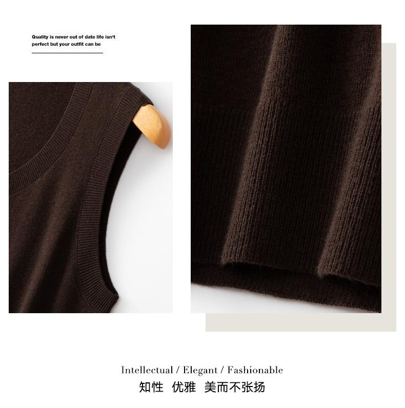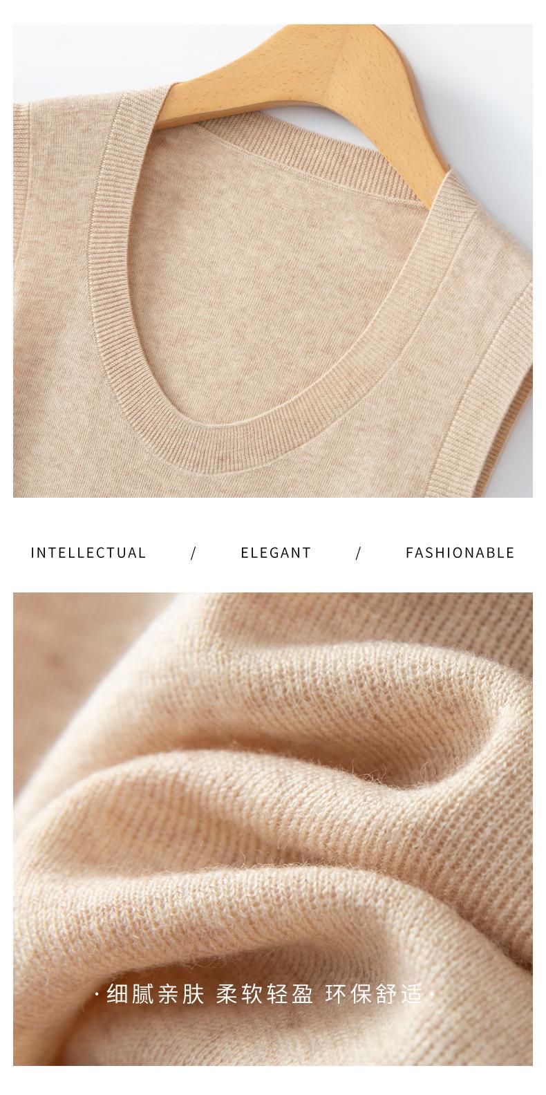 Chaleco de punto de lana peinada con cuello en U grande, color sólido, sin mangas, suelto, base de camisa, 25 años, primavera y verano