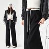 Pantalones casuales de algodón suave de 280 g, cintura alta, para otoño/invierno, deportivos, elásticos, pantalones de sudor para mujer, adelgazantes, pantalones de pierna ancha