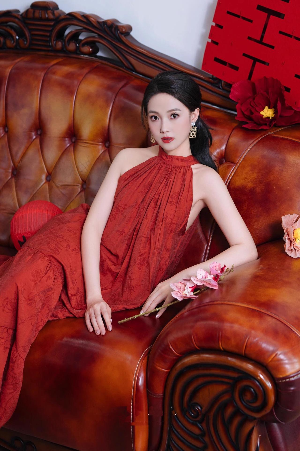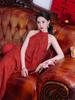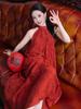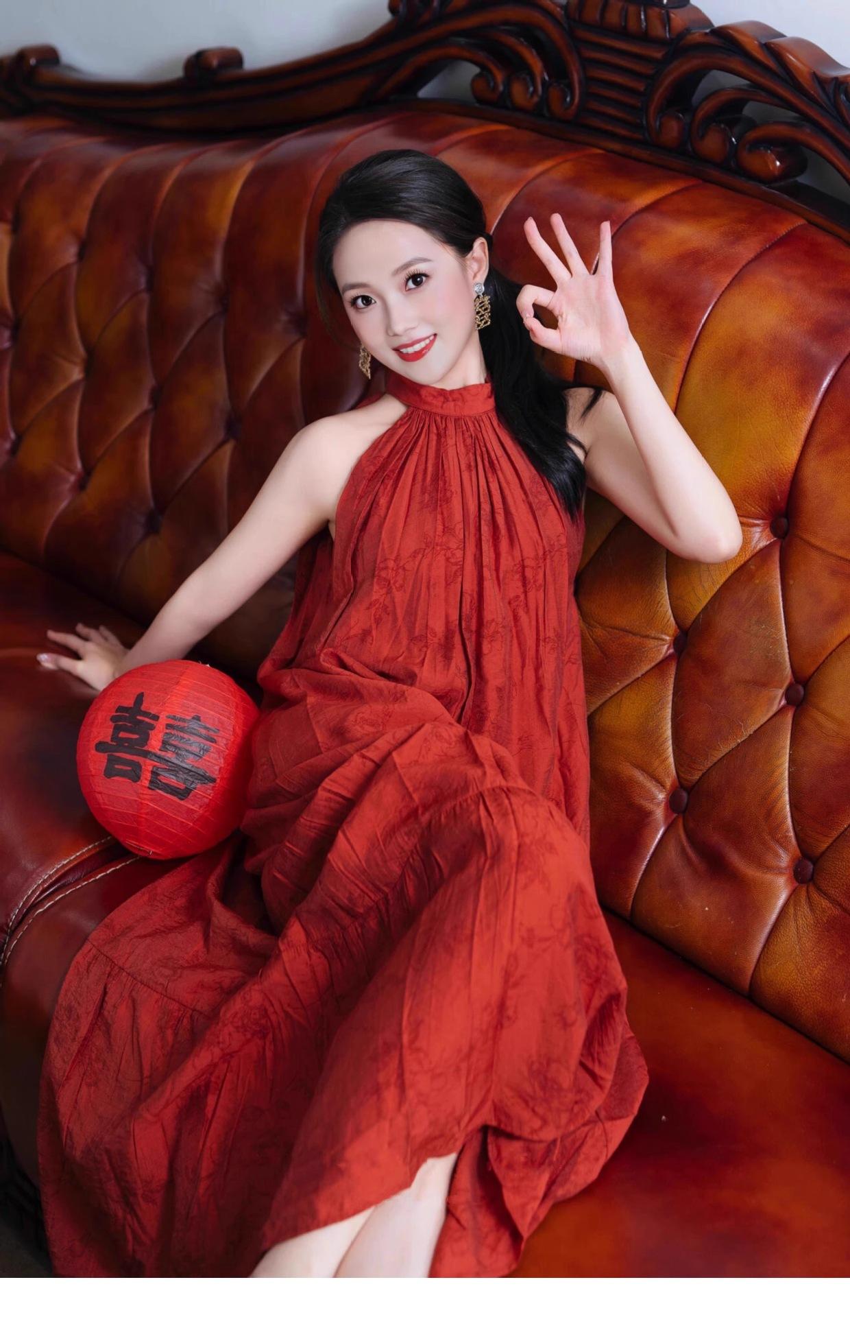 Nuevo Vestido Rojo Jacquard de Estilo Chino Retro Estilo Nacional Halter para Mujer Verano Vacaciones en la Costa Elegante Falda Larga