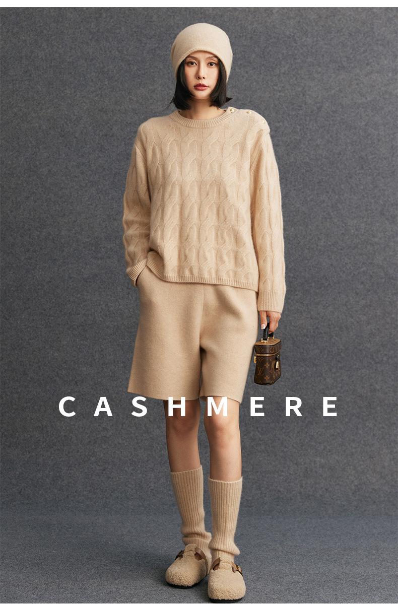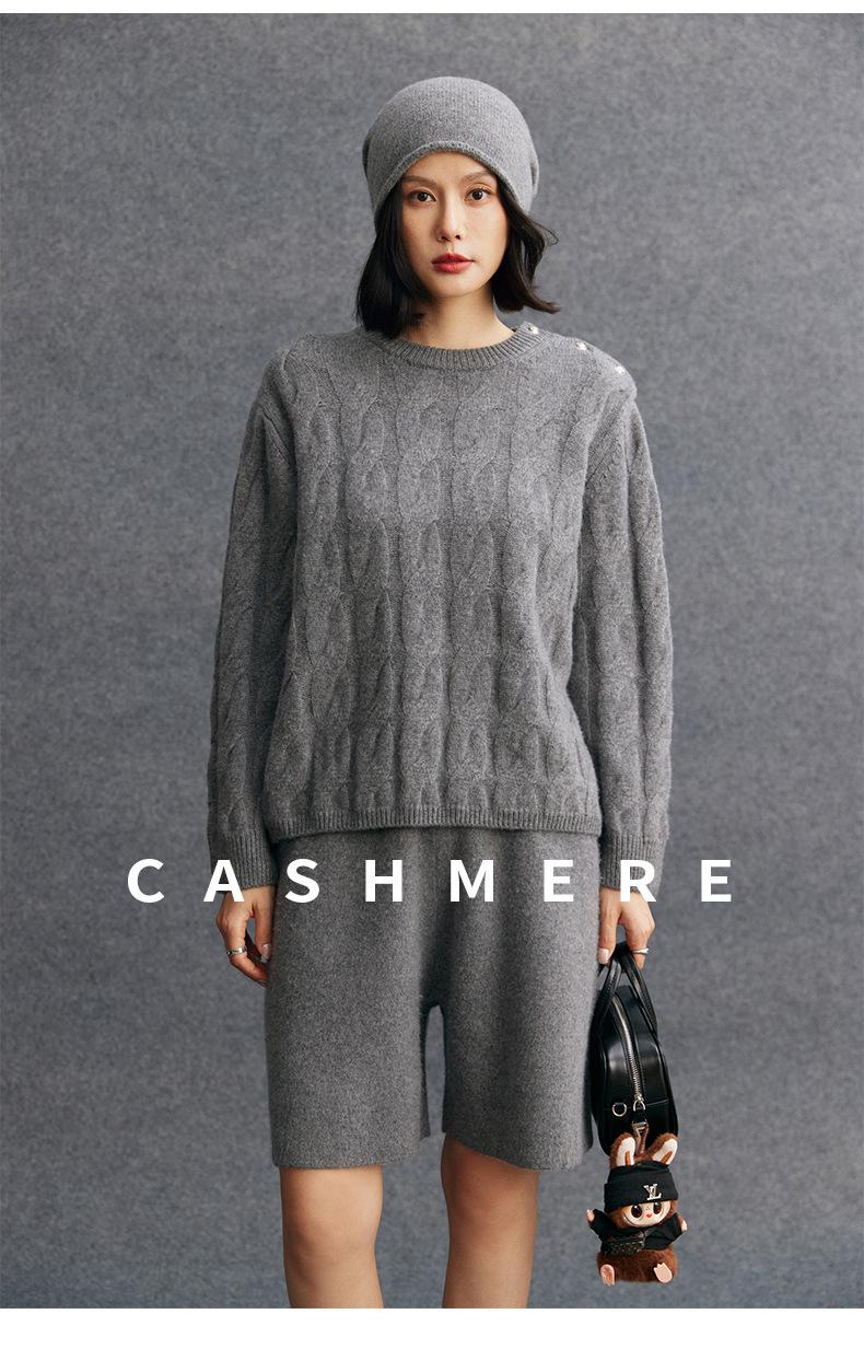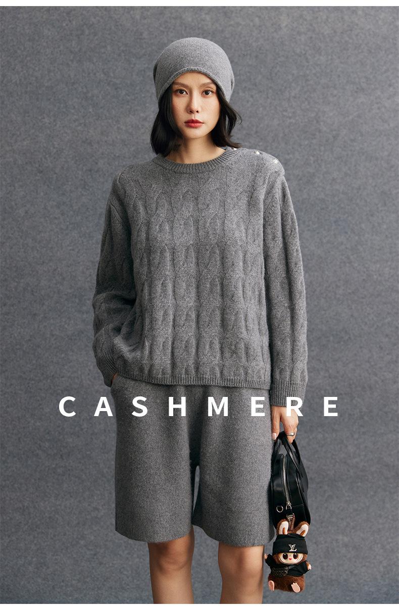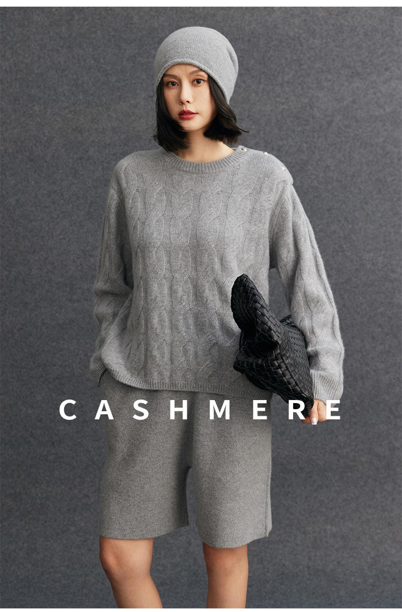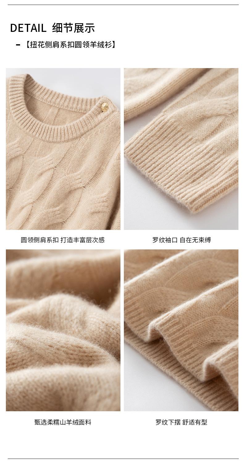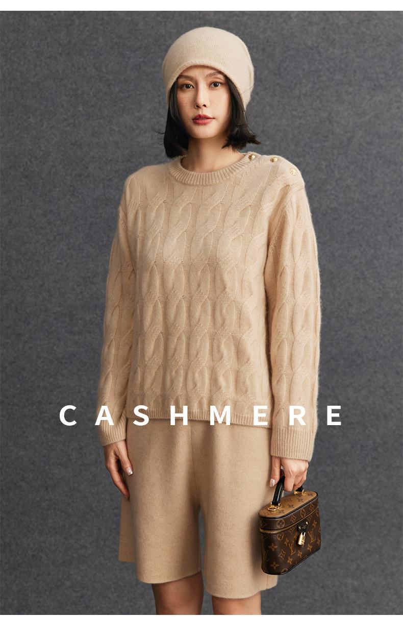 Suéter de Cachemira para Mujer Cuello Redondo Tejido de Cable Suelto Casual Estilo Perezoso Versátil Suéter de Punto Otoño e Invierno Nuevo Suéter de Cachemira Base
