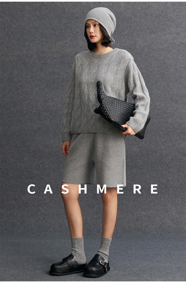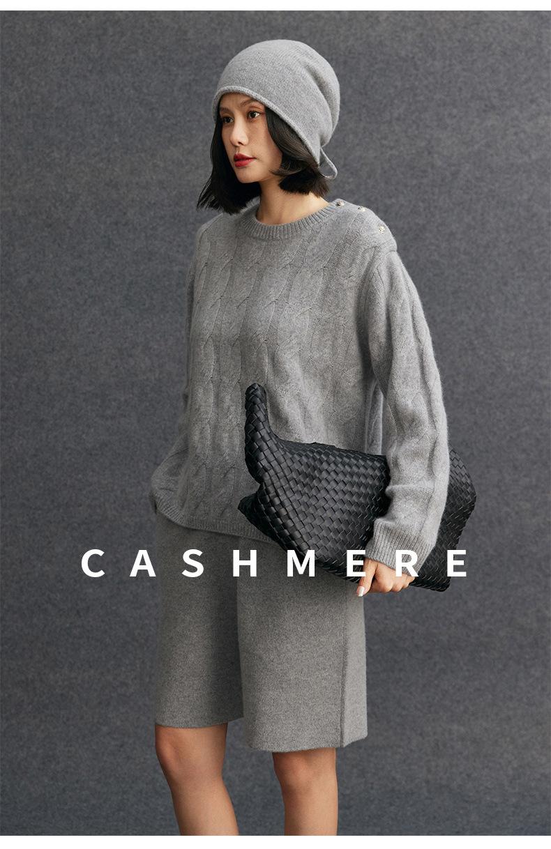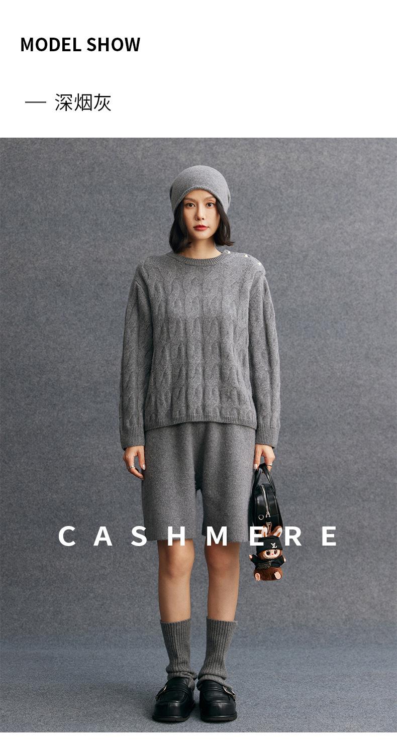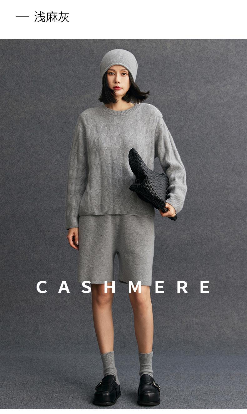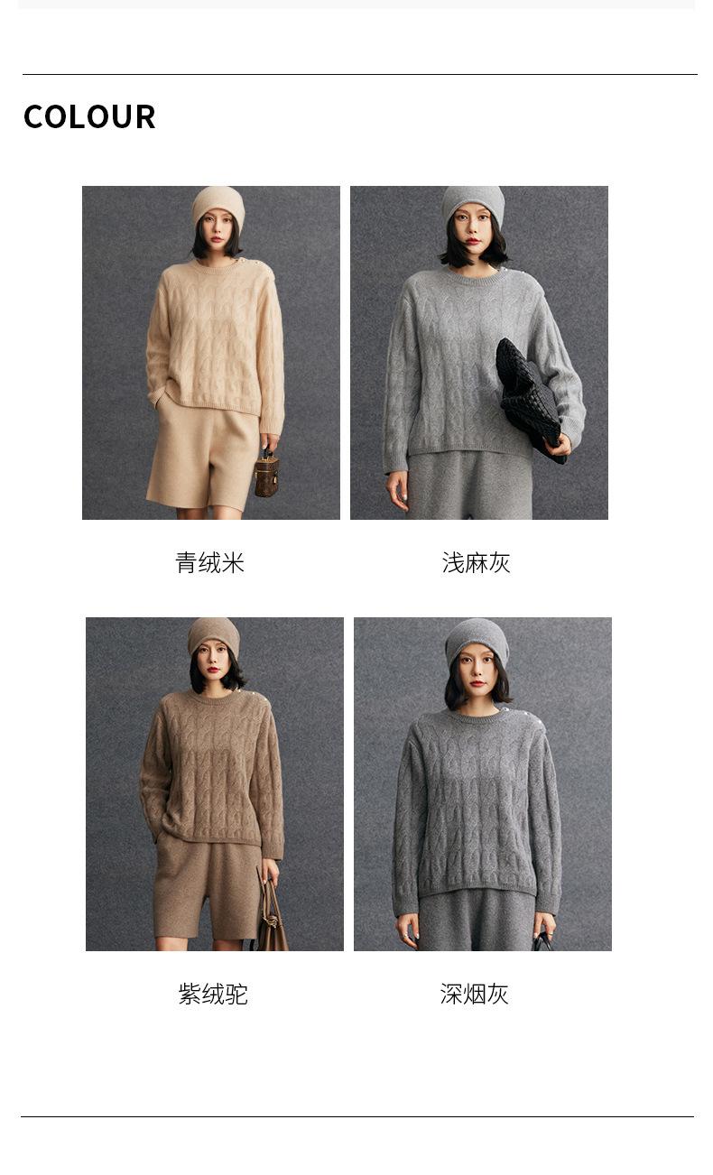 Suéter de Cachemira para Mujer Cuello Redondo Tejido de Cable Suelto Casual Estilo Perezoso Versátil Suéter de Punto Otoño e Invierno Nuevo Suéter de Cachemira Base