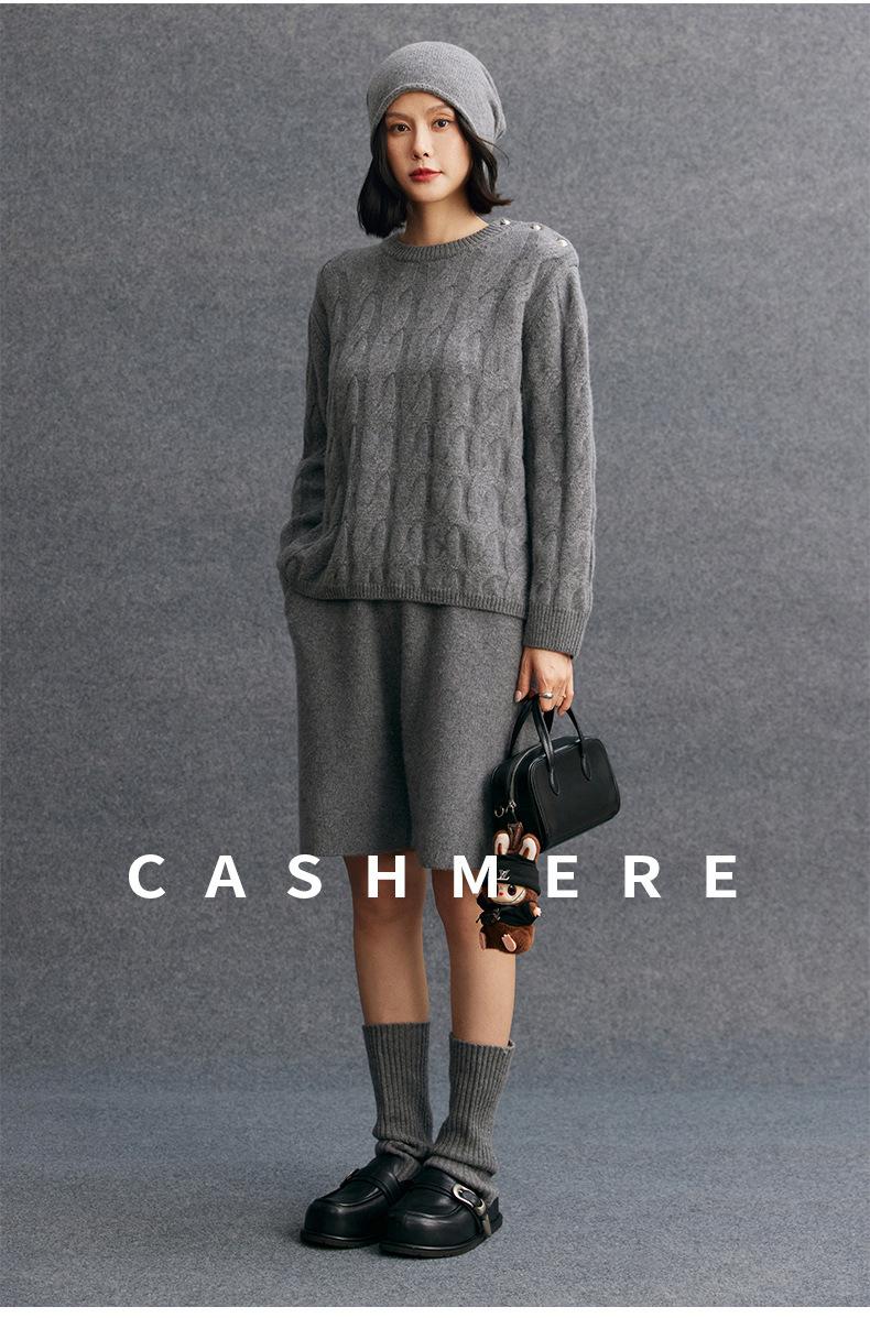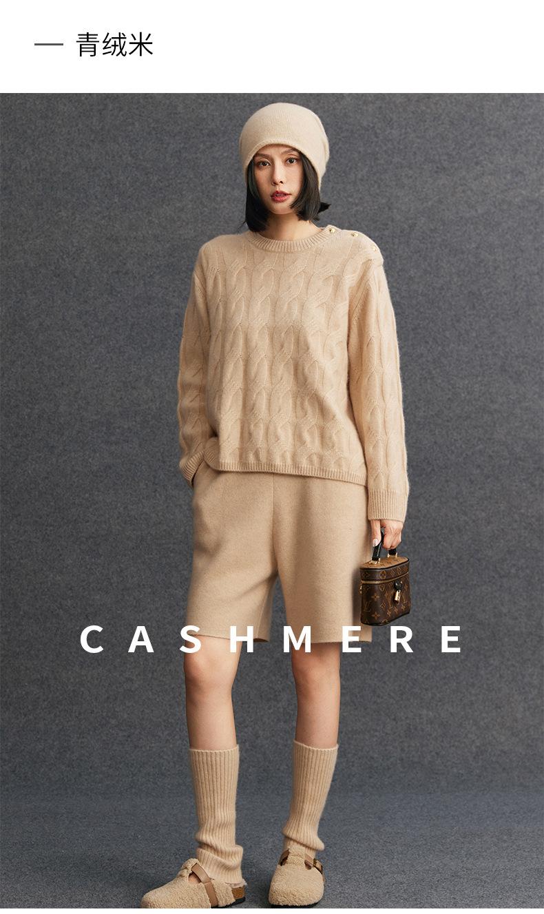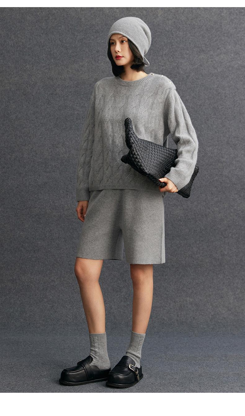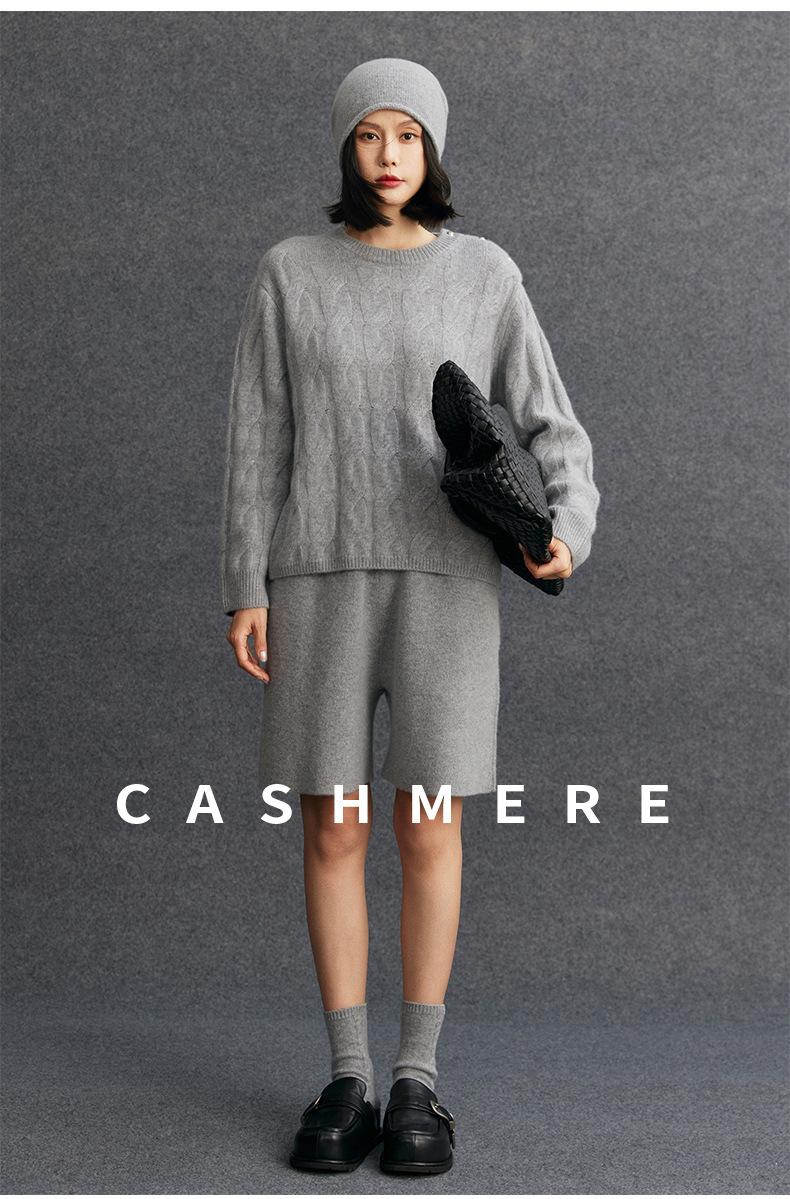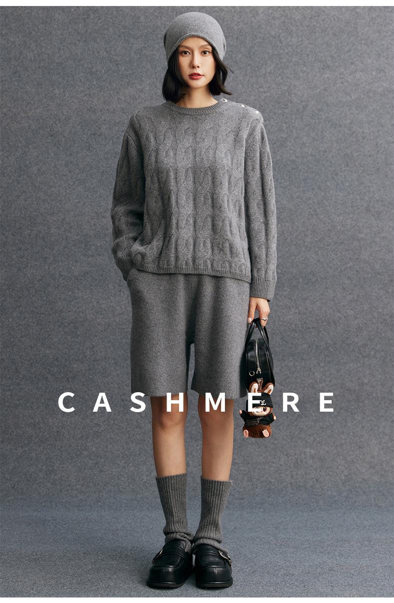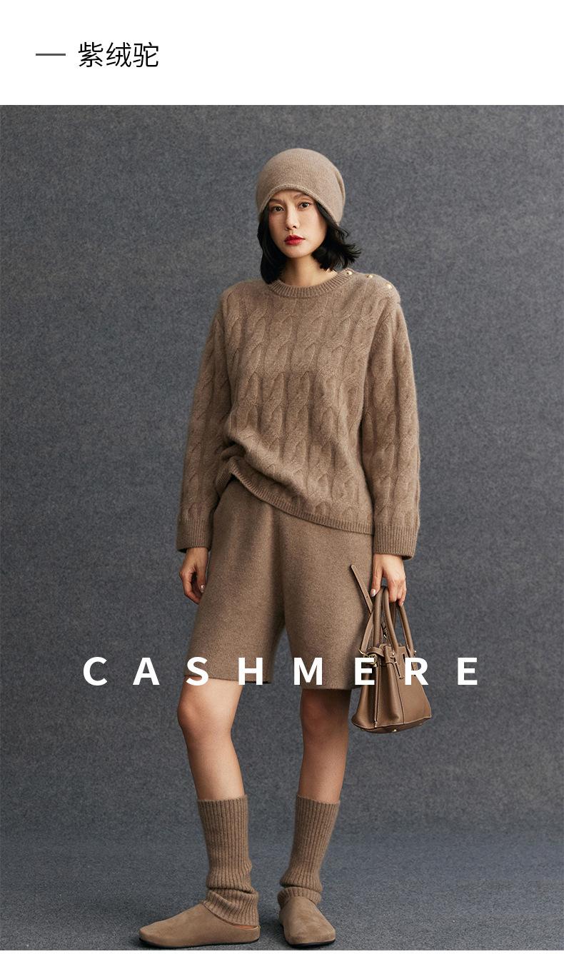 Suéter de Cachemira para Mujer Cuello Redondo Tejido de Cable Suelto Casual Estilo Perezoso Versátil Suéter de Punto Otoño e Invierno Nuevo Suéter de Cachemira Base