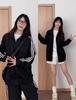 Black stand-up collar short three stripes. [Sweatshirt fabric]