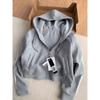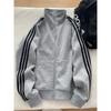 Heather grey stand-up collar short three-stripe 【Sweatshirt fabric】