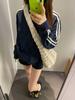 Navy blue hooded short three stripes 【Sweatshirt fabric】