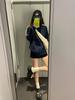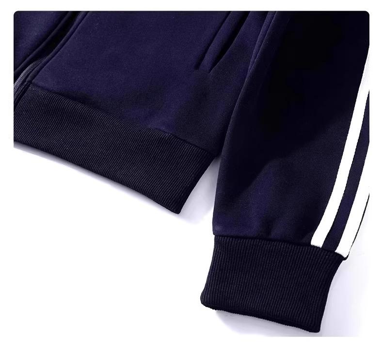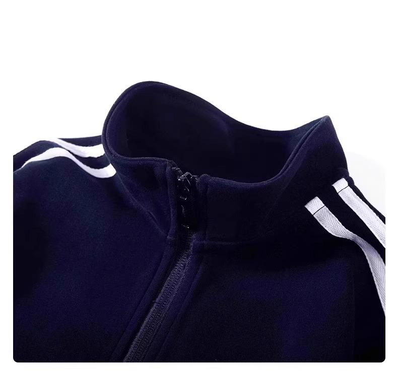 Navy blue stand-up collar short three stripes. 【Sweatshirt fabric】