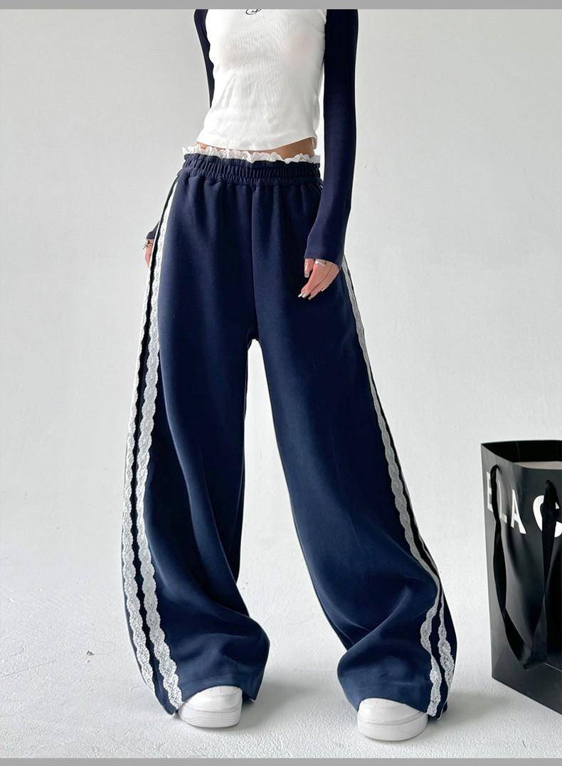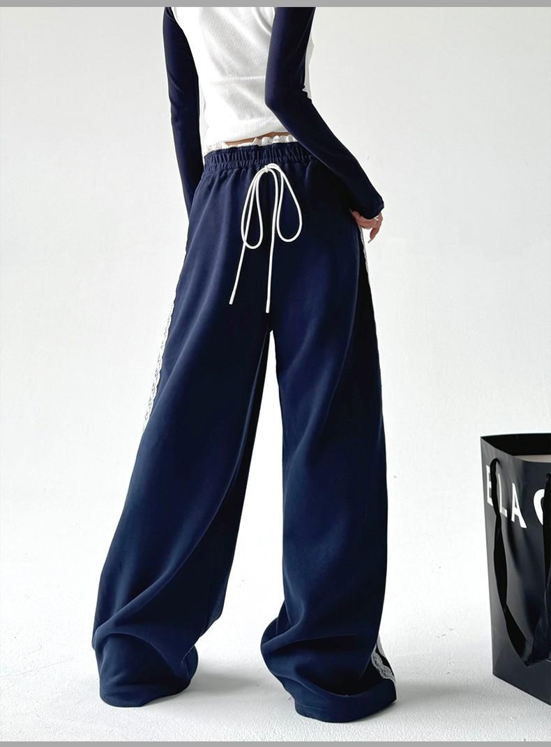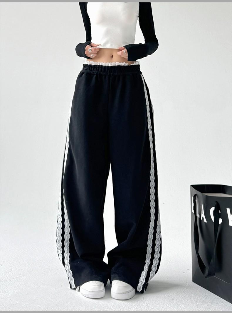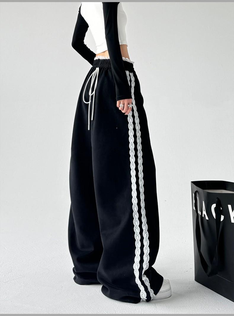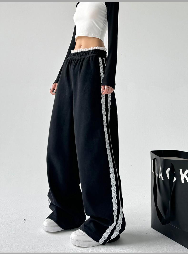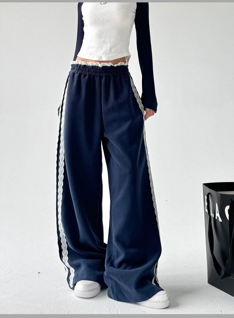 Pantalones de Pierna Ancha con Encaje Diseñado para Mujer Primavera y Otoño 2025 Nuevo Estilo Pantalones Casuales Rectos Drapeados Pantalones para Mujer con Aspecto Adelgazante