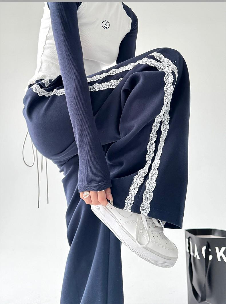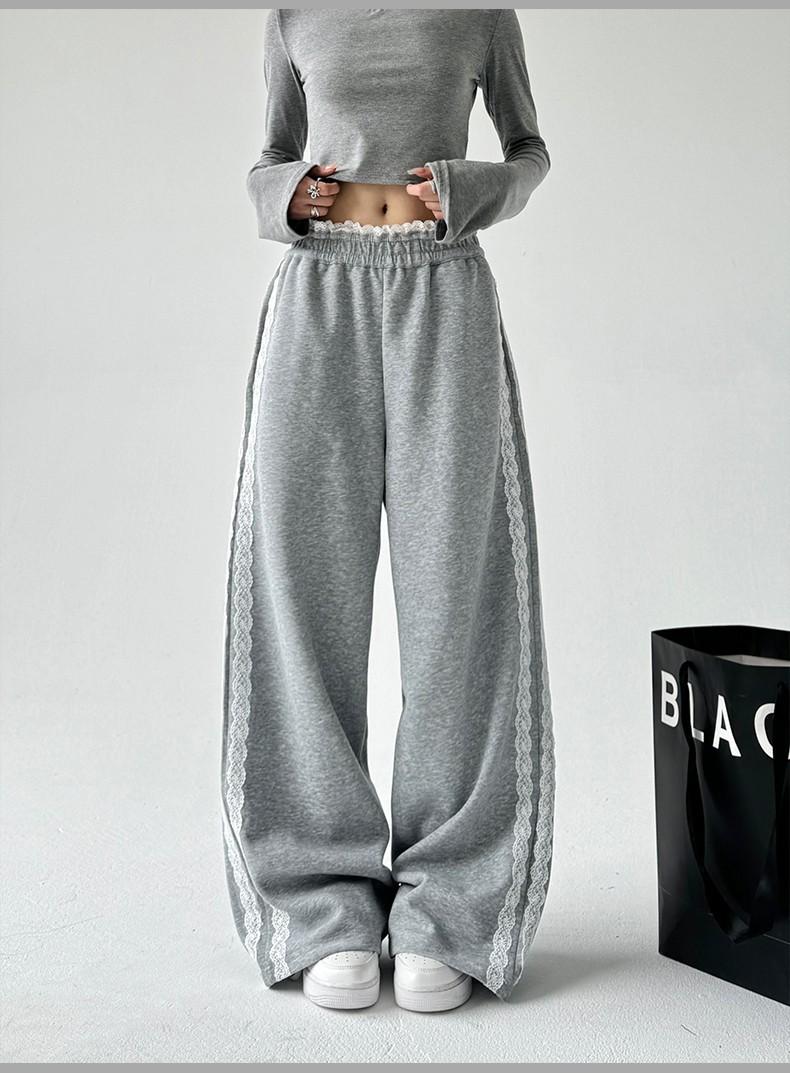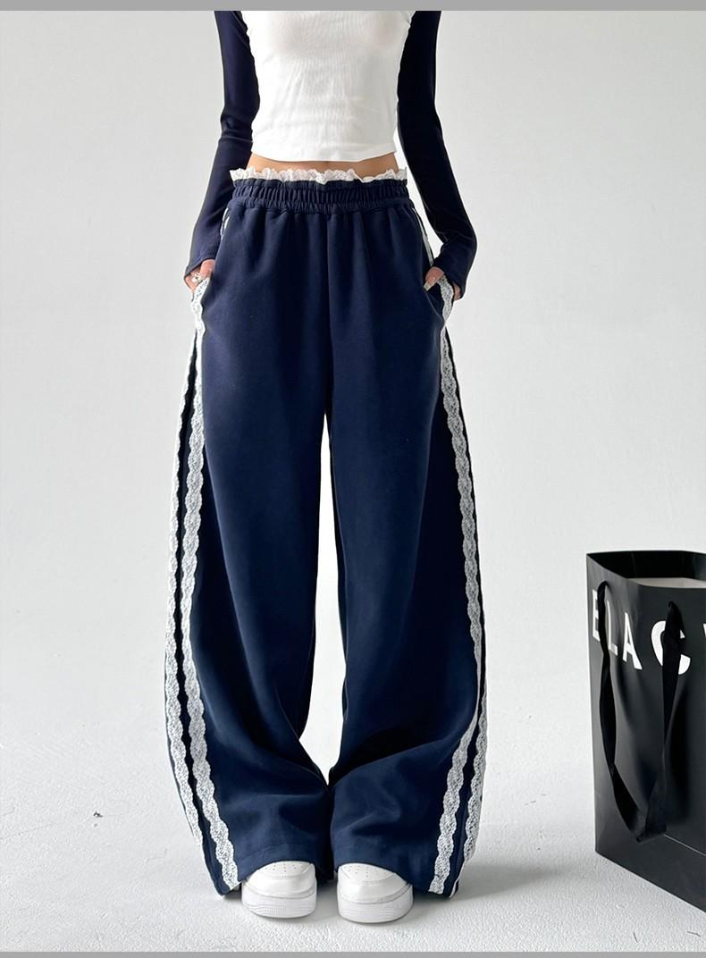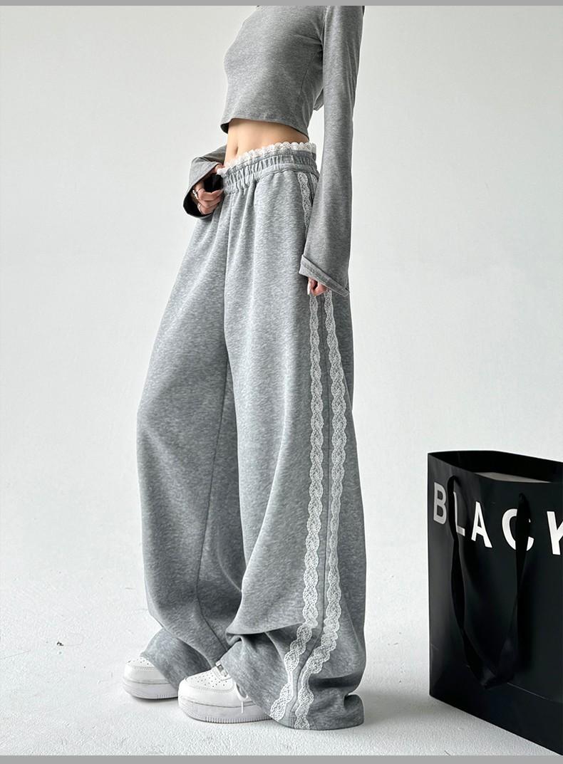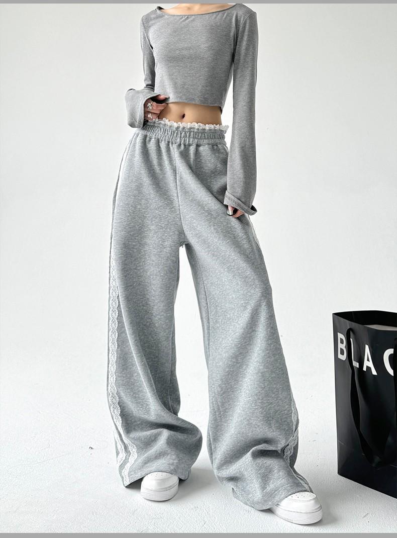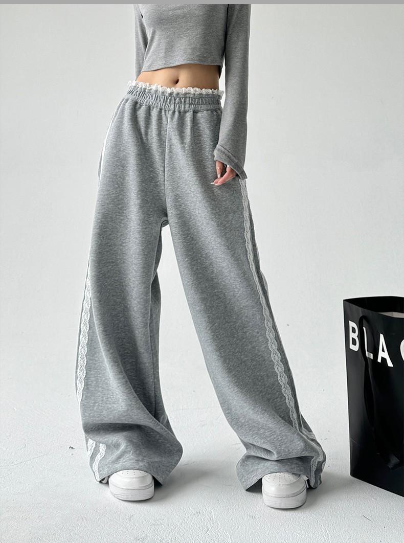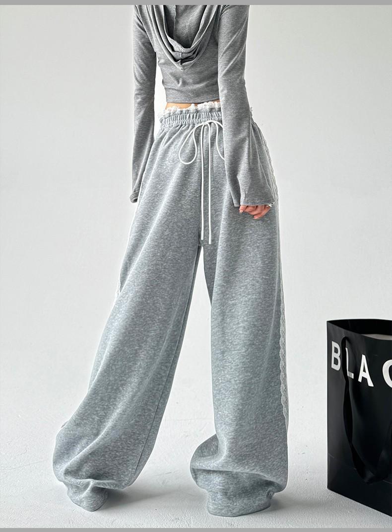 Pantalones de Pierna Ancha con Encaje Diseñado para Mujer Primavera y Otoño 2025 Nuevo Estilo Pantalones Casuales Rectos Drapeados Pantalones para Mujer con Aspecto Adelgazante