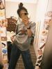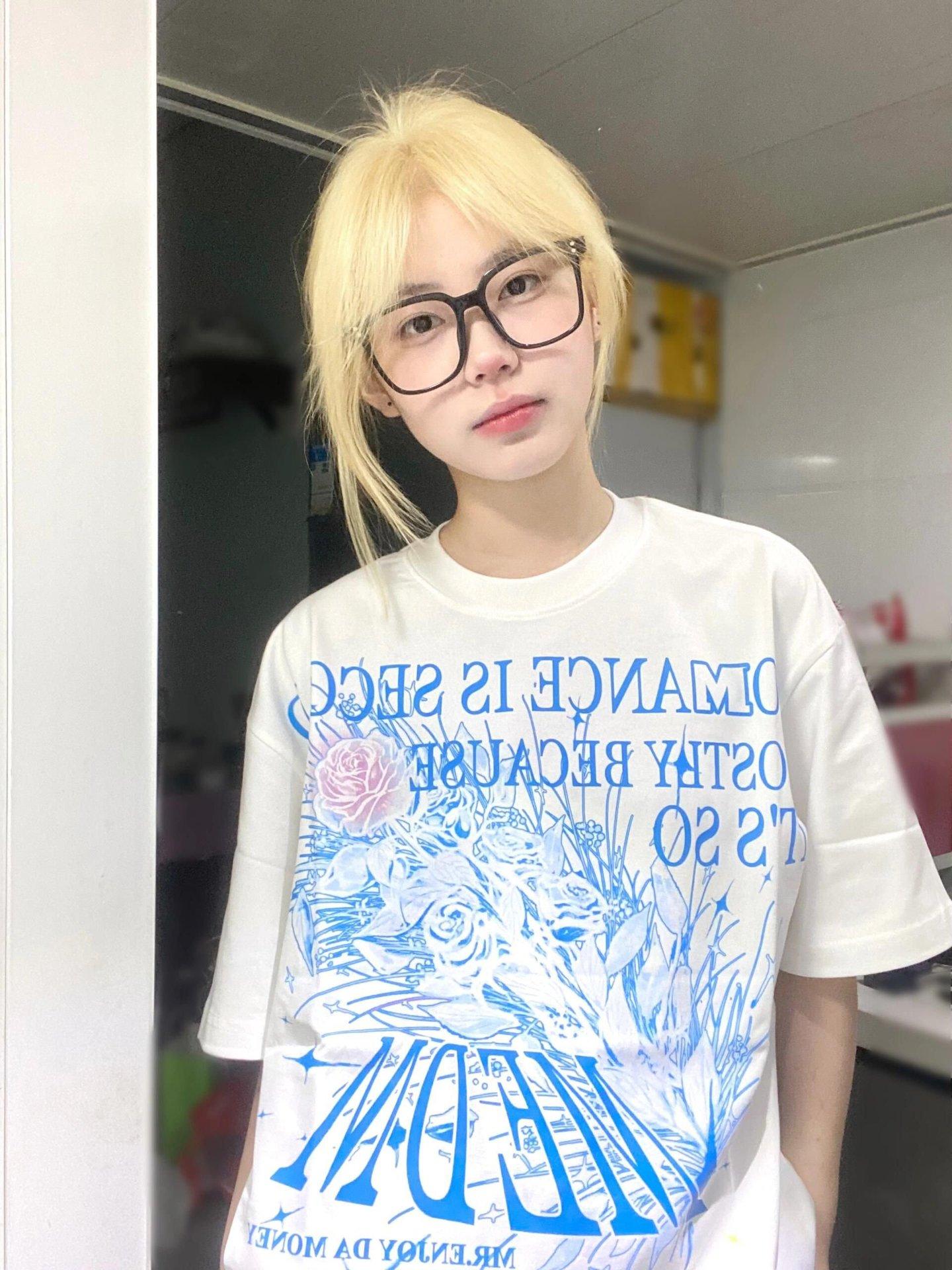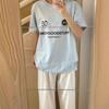Playera de Algodón Puro de Manga Corta para Mujer Talla Grande Jersey Estampado Manga Media Coreana Casual Dulce Fresca Top