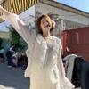 Z Transfronterizo Primavera 2025 Nuevo Abrigo Holgado para Mujer con Dulce Encaje y Cuello Polo Bordado Calado de Trabajo Pesado Camisa