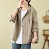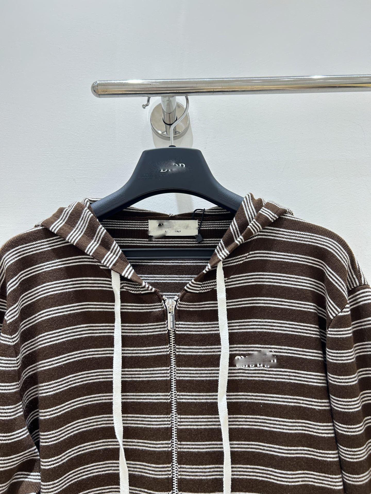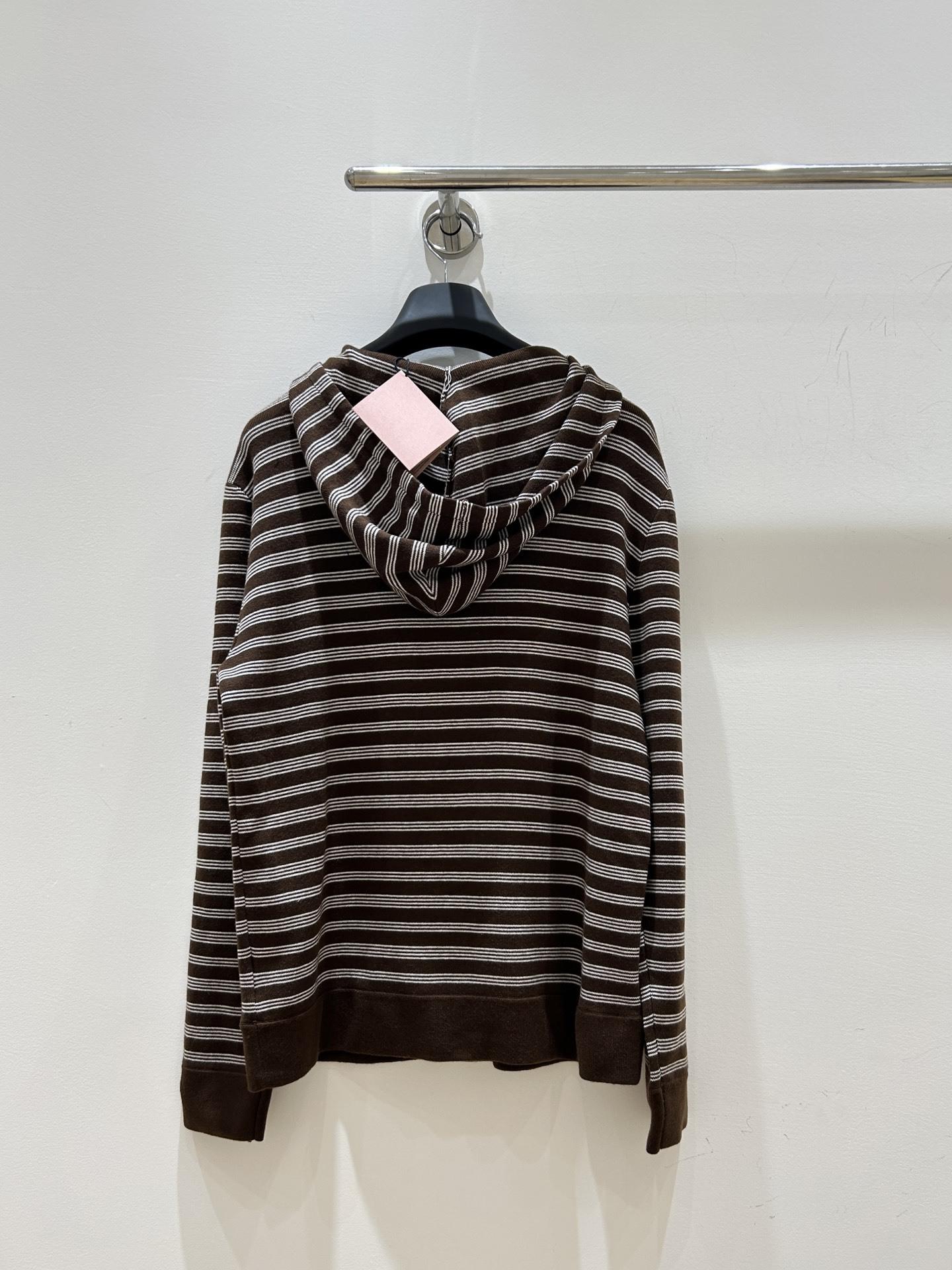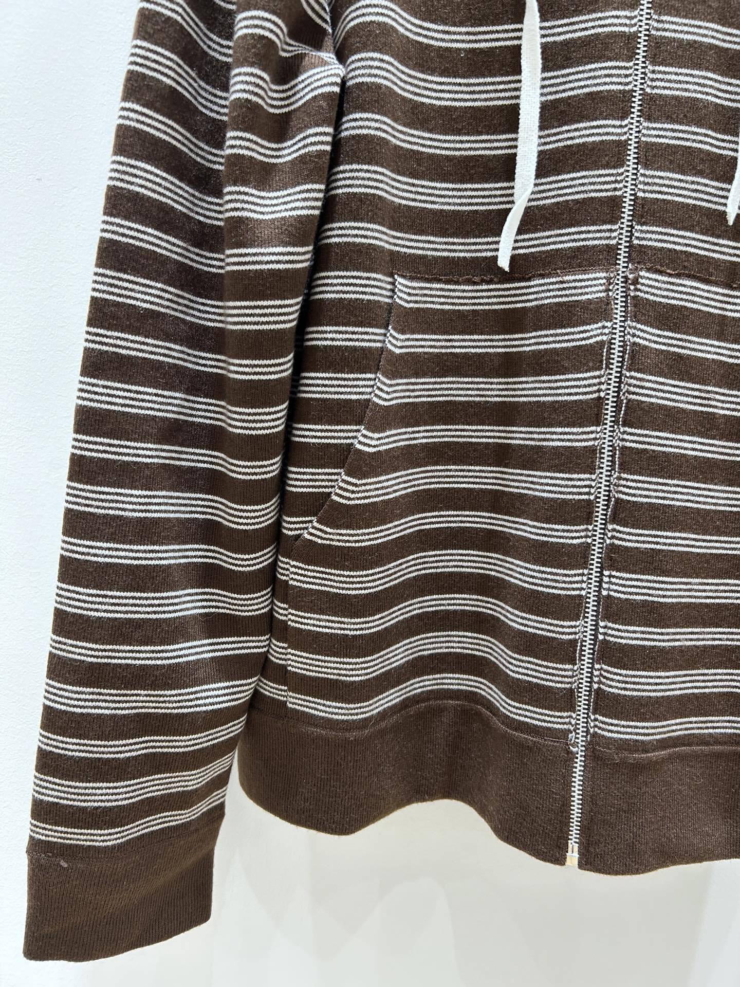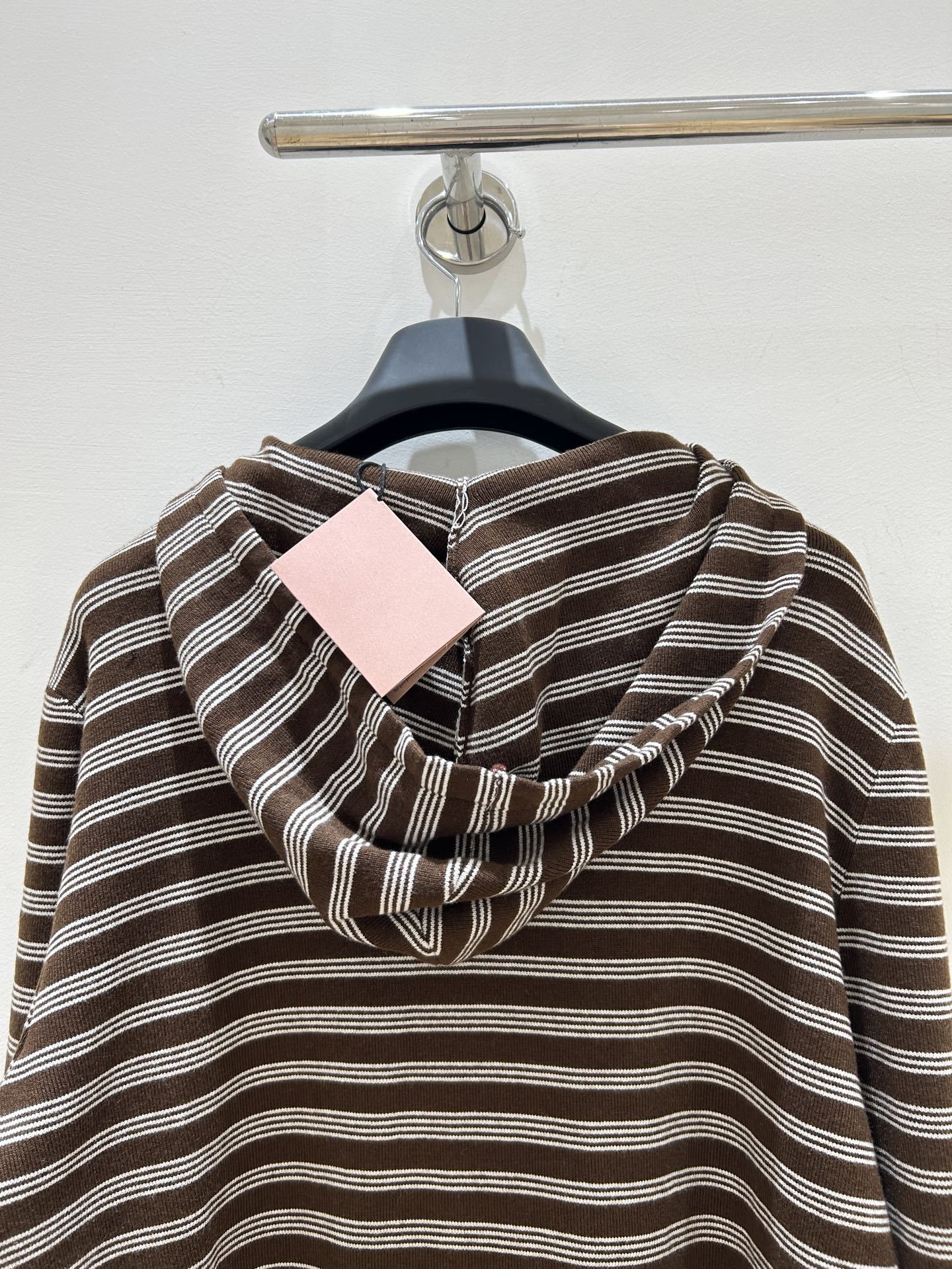 Chamarra con Capucha Rayada Retro Americana para Mujer Otoño Invierno 2025 Nuevo Cárdigan Holgado Casual Perezoso Estilo Universitario con Cierre