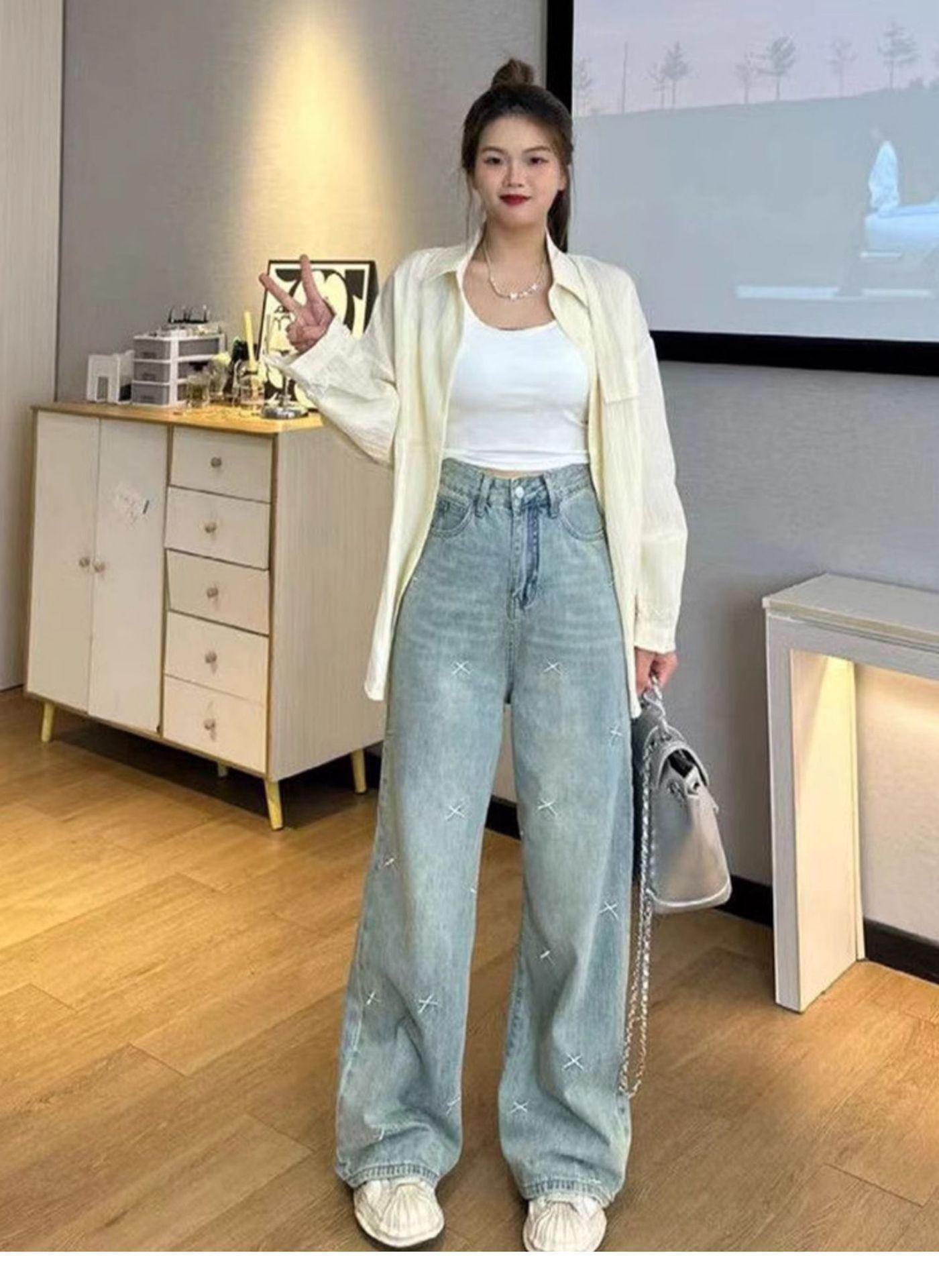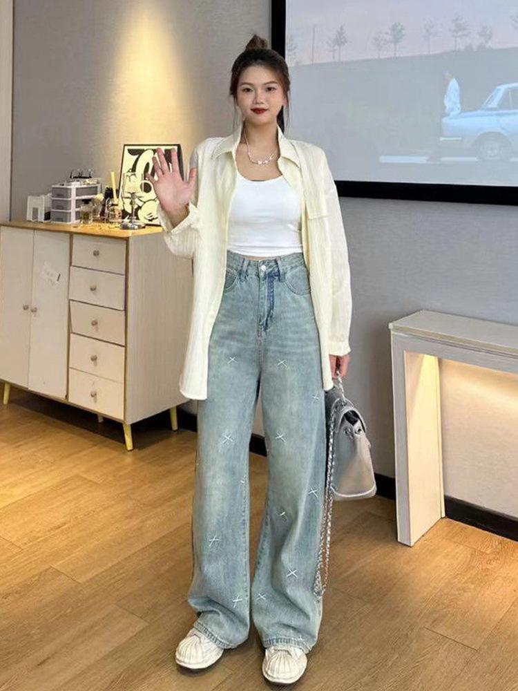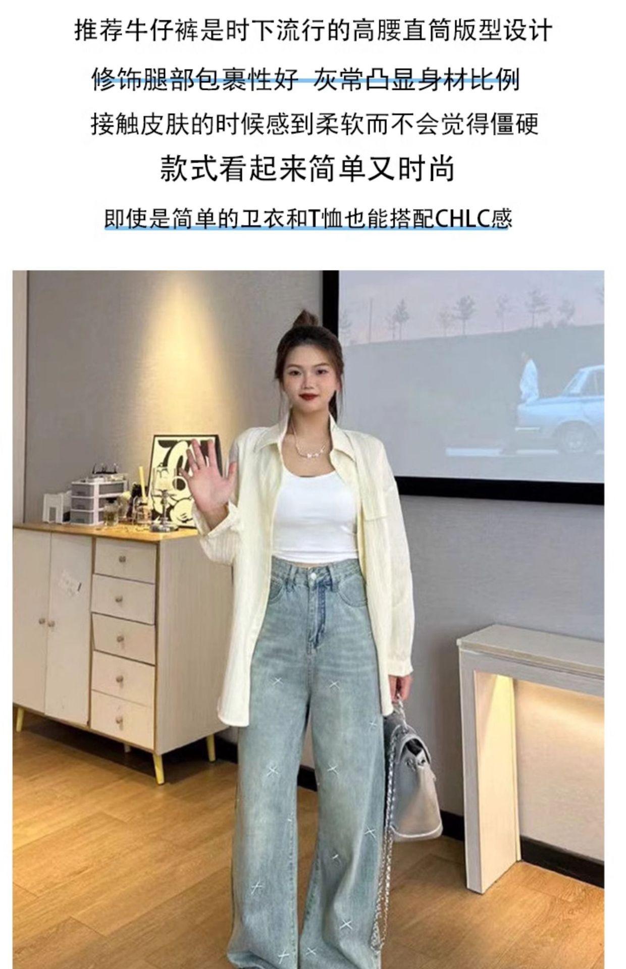 Jeans de Diseño para Mujer de Talla Grande Nueva Primavera y Otoño Pantalones Rectos Slim para Mujeres Curvilíneas Retro Pierna Ancha Pantalones Largos