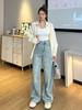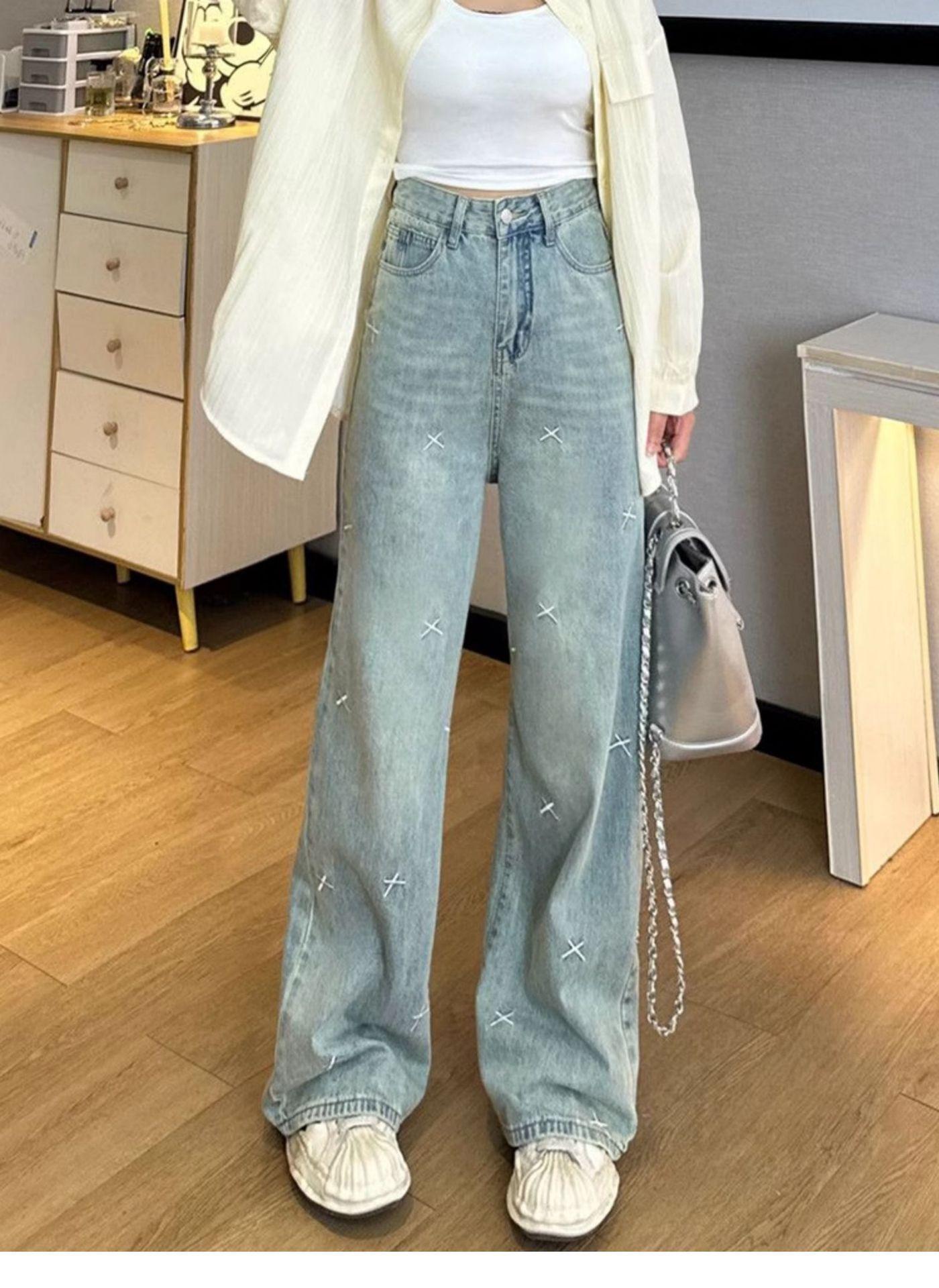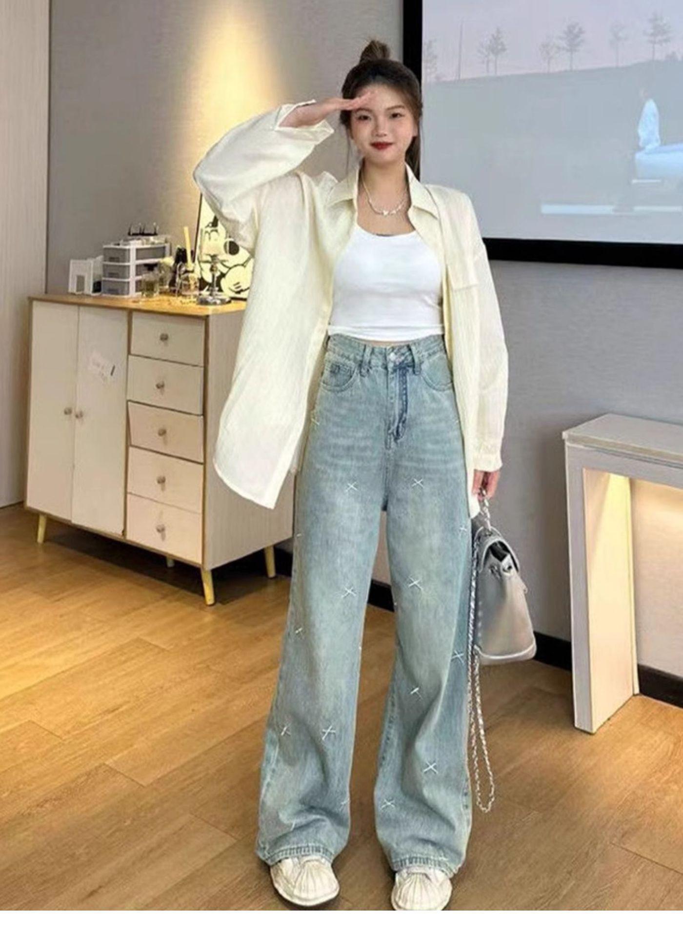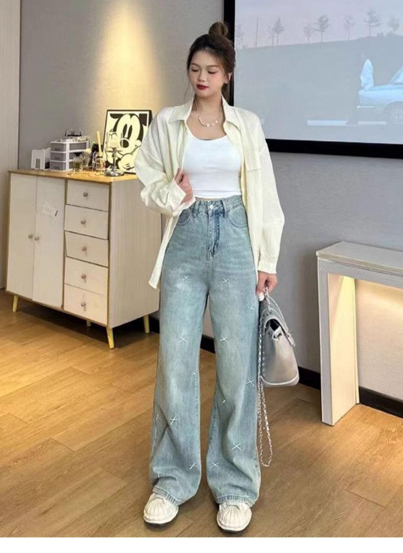 Jeans de Diseño para Mujer de Talla Grande Nueva Primavera y Otoño Pantalones Rectos Slim para Mujeres Curvilíneas Retro Pierna Ancha Pantalones Largos