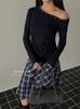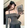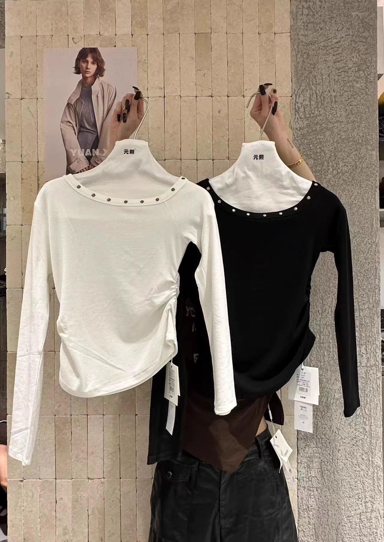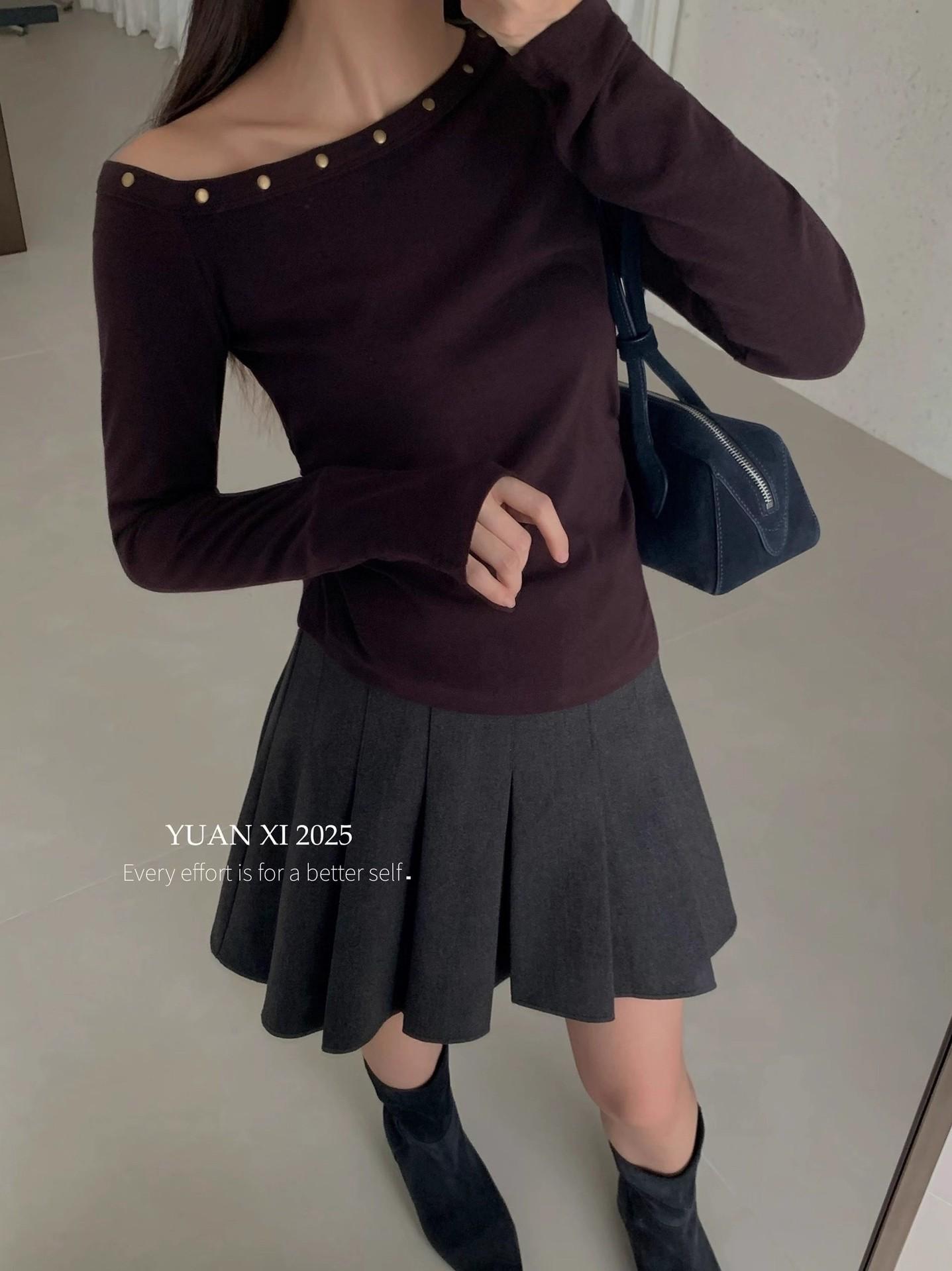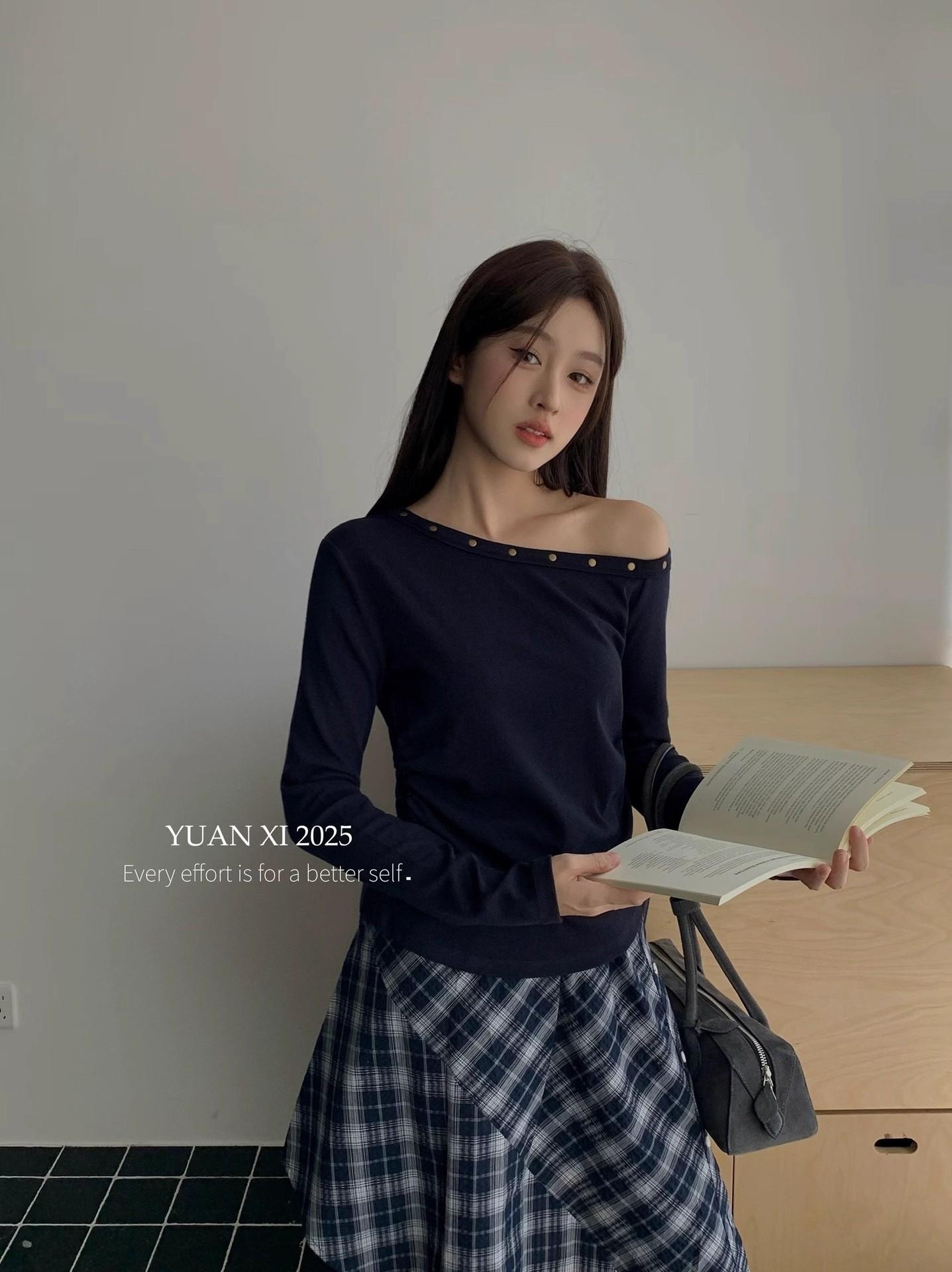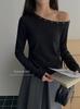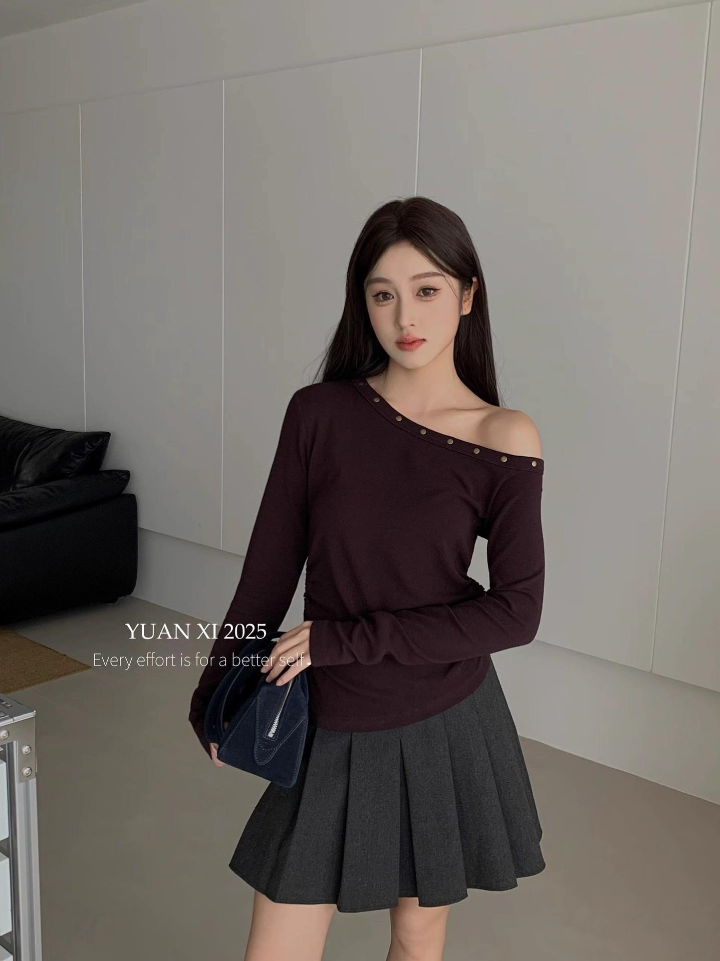 Otoño 2025 Nueva Personalidad Tendencia Estilo Coreano Remache Temperamento Camiseta de un Hombro Mujer Slim Versátil Adelgazante Top