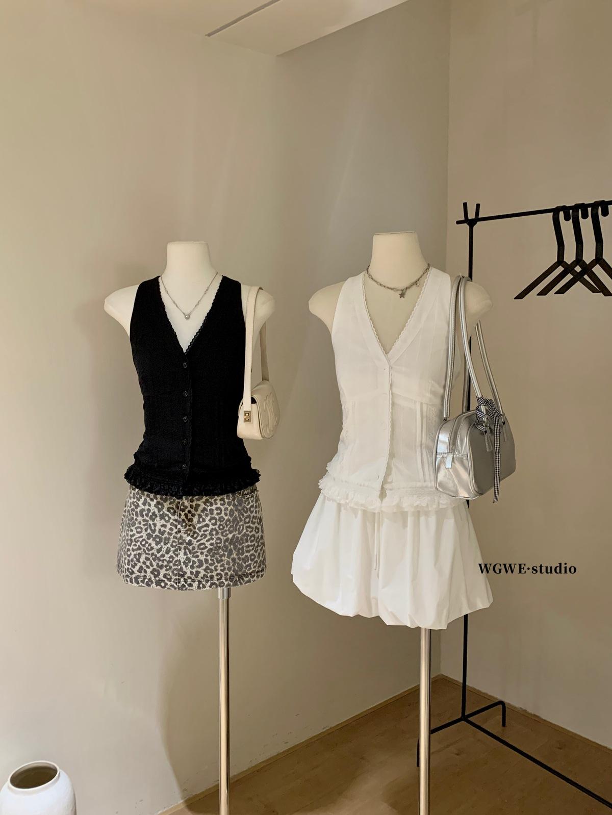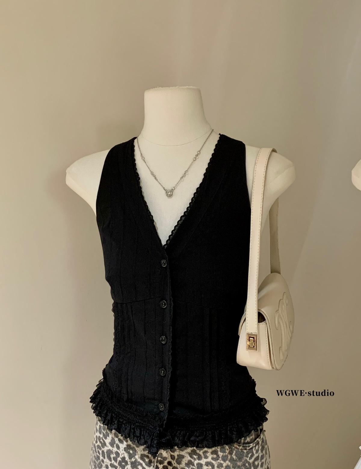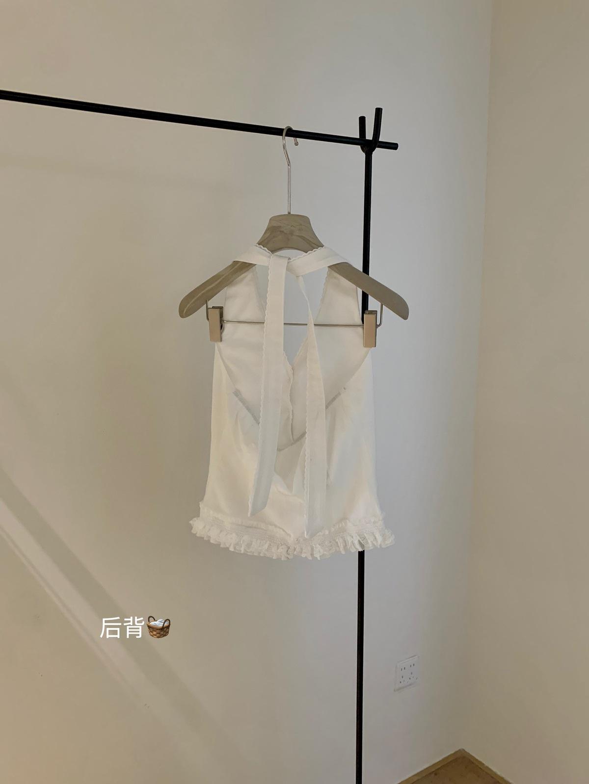 Liquidación sin devoluciones ni cambios encaje patchwork sin espalda cuello halter chaleco diseño de verano ajuste ceñido y temperamento adelgazante top camisola mujer