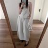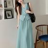 Verano Nuevo Estilo Estilo Francés Chaleco Alto Falda Midi Traje de Dos Piezas Falda para Mujer